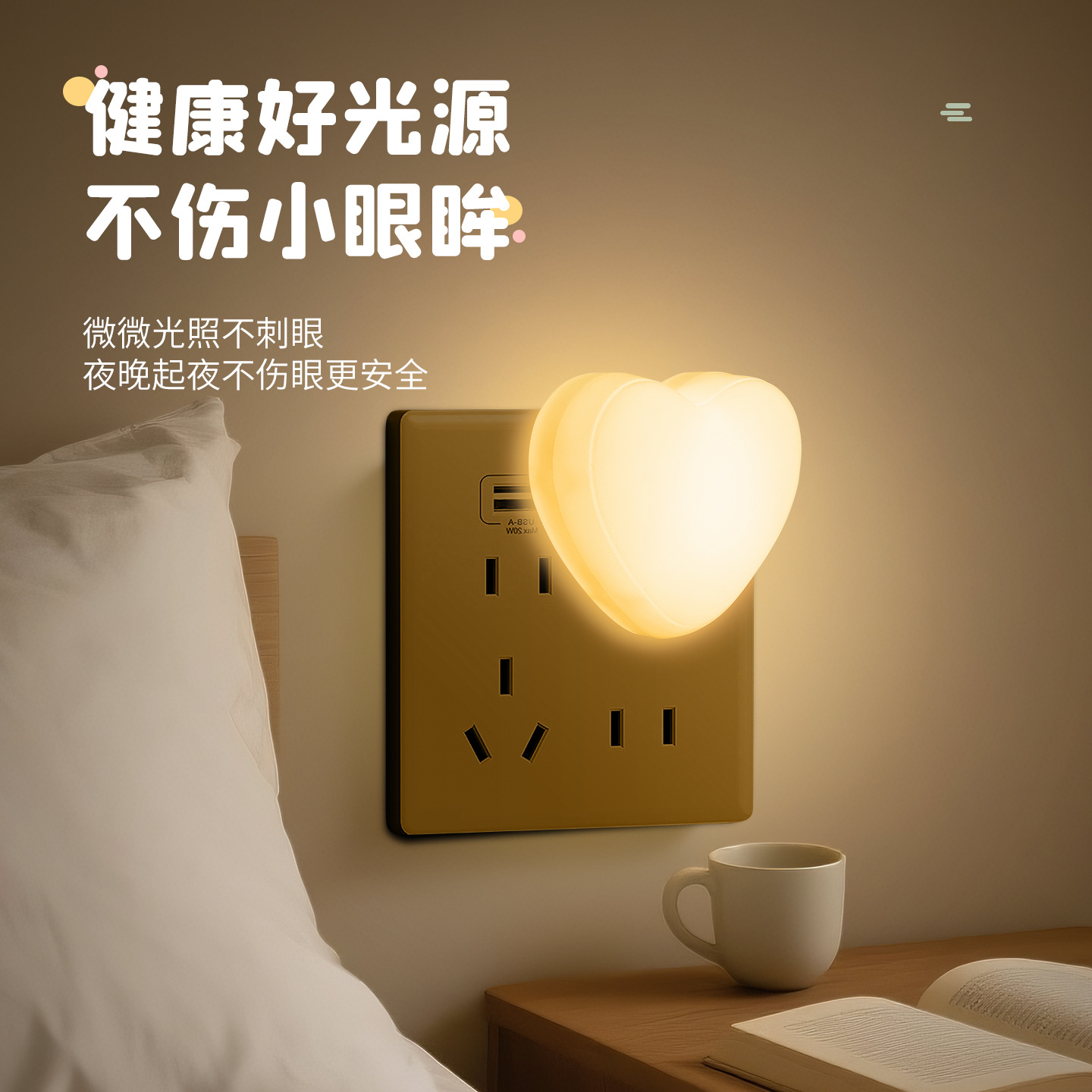 USB 하트 모양 야간등 LED 미니 학생 침대 옆 분위기등 화이트 웜 블루 핑크 퍼플 라이트 휴대용 해외 무역