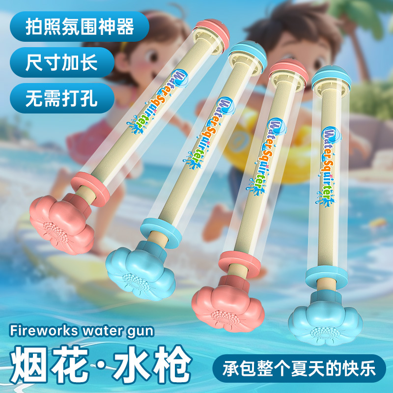 烟花水枪抽拉式大容量儿童水枪泼水节漂流大人拍照道具氛围感玩具抖音网红烟花水枪抽拉式儿童玩具喷水枪夏季沙滩打水仗户外水炮枪