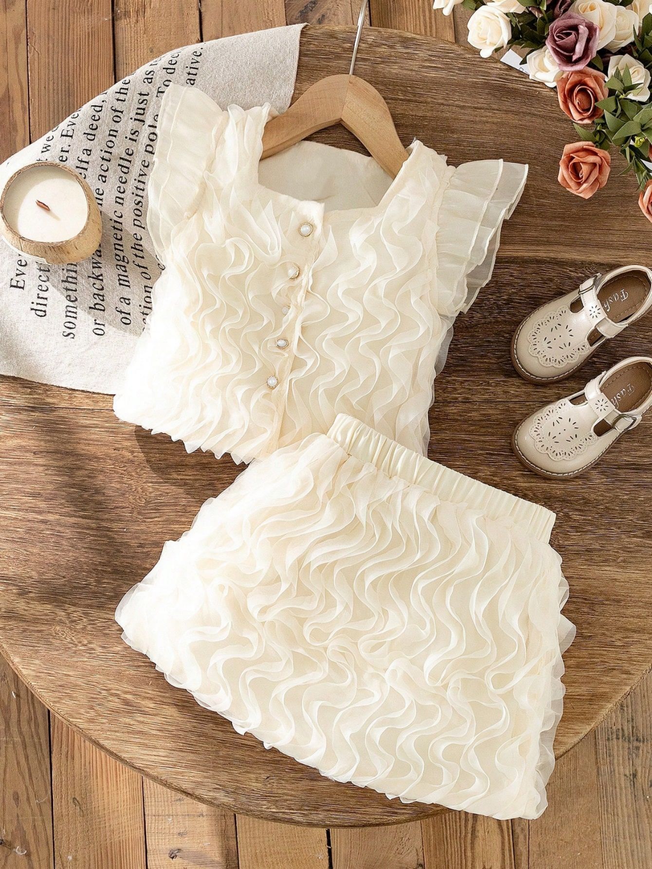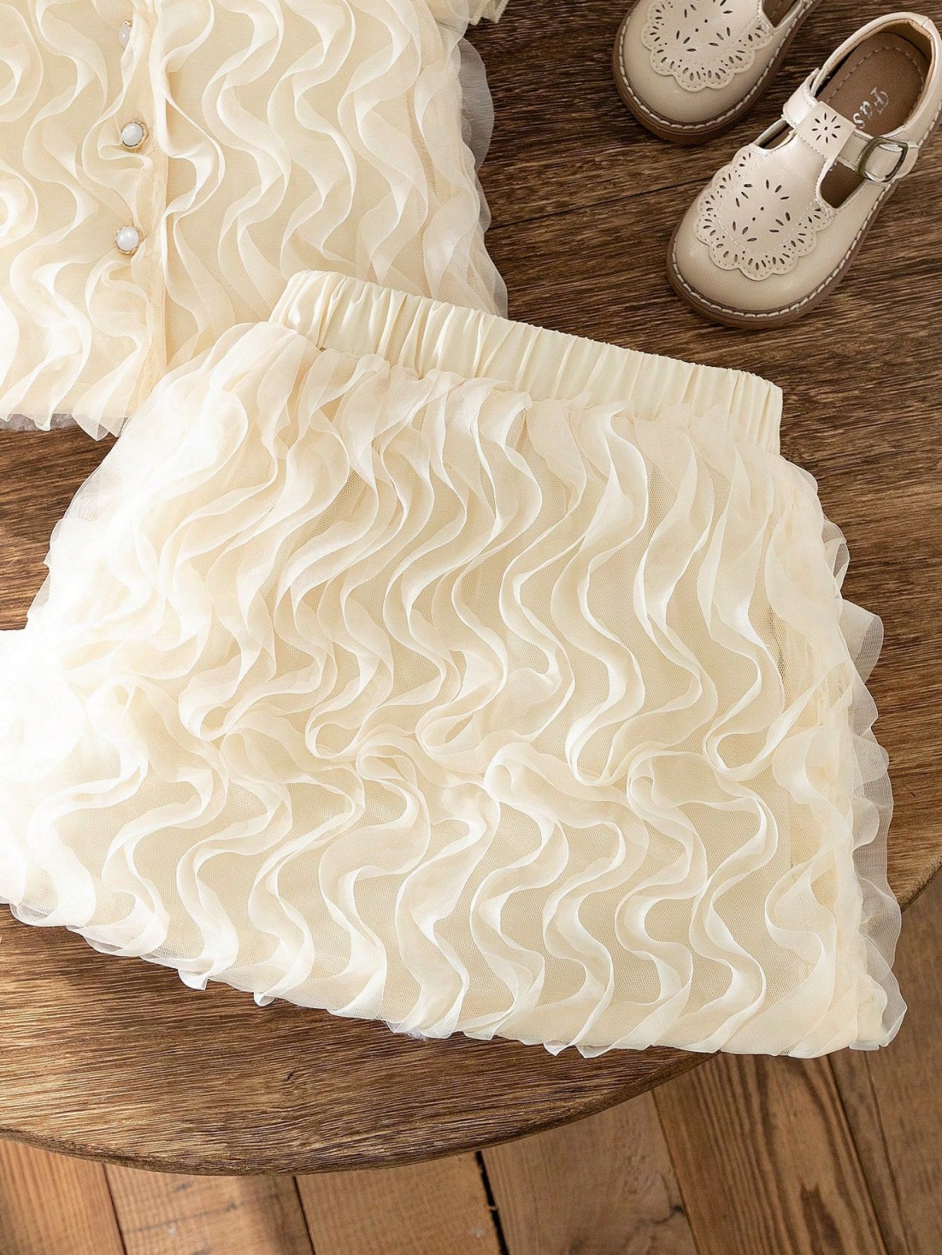 2025 여름 새로운 국경 전자 상거래 3 차원 메쉬 웨이브 스티칭 상단 원피스 2 피스 세트