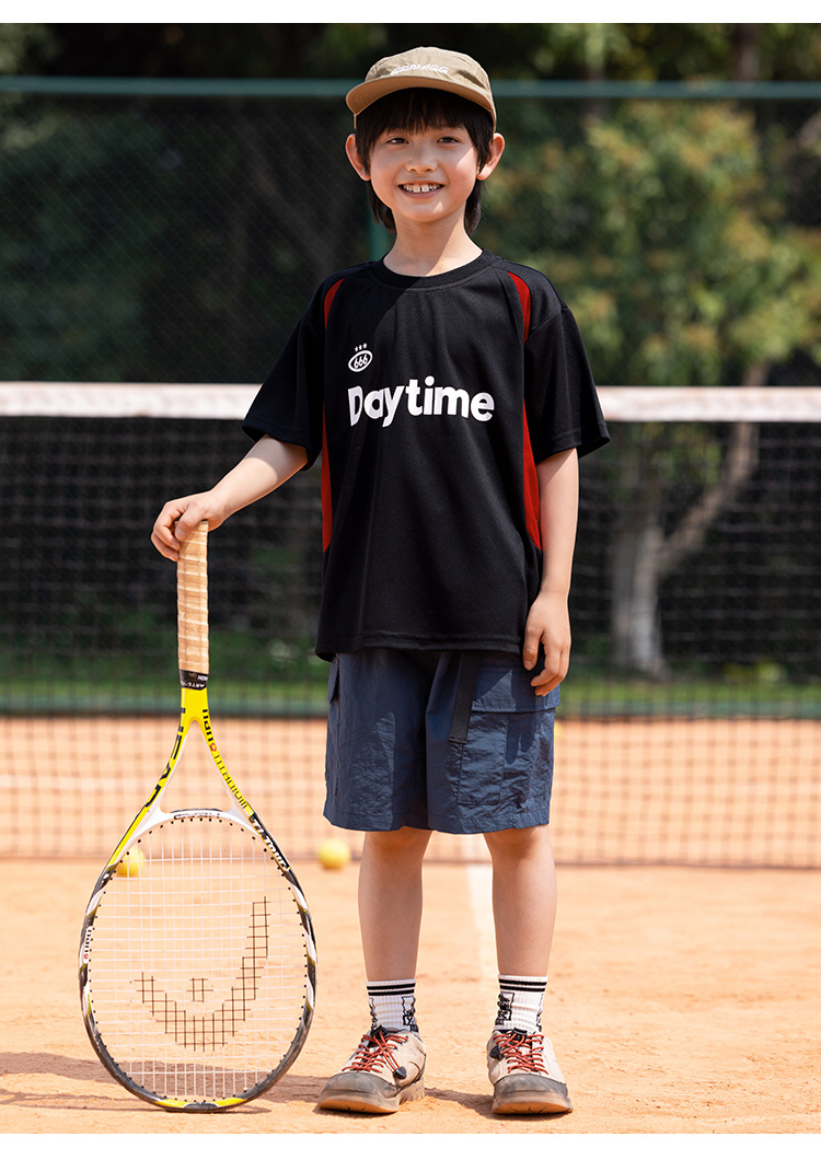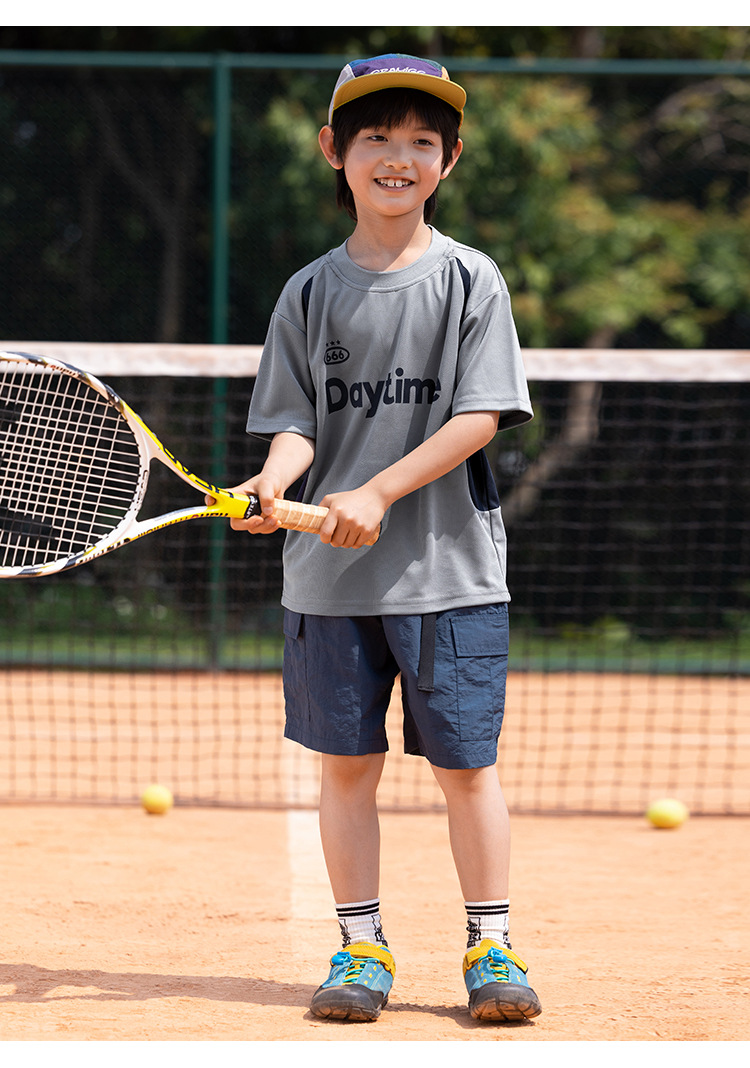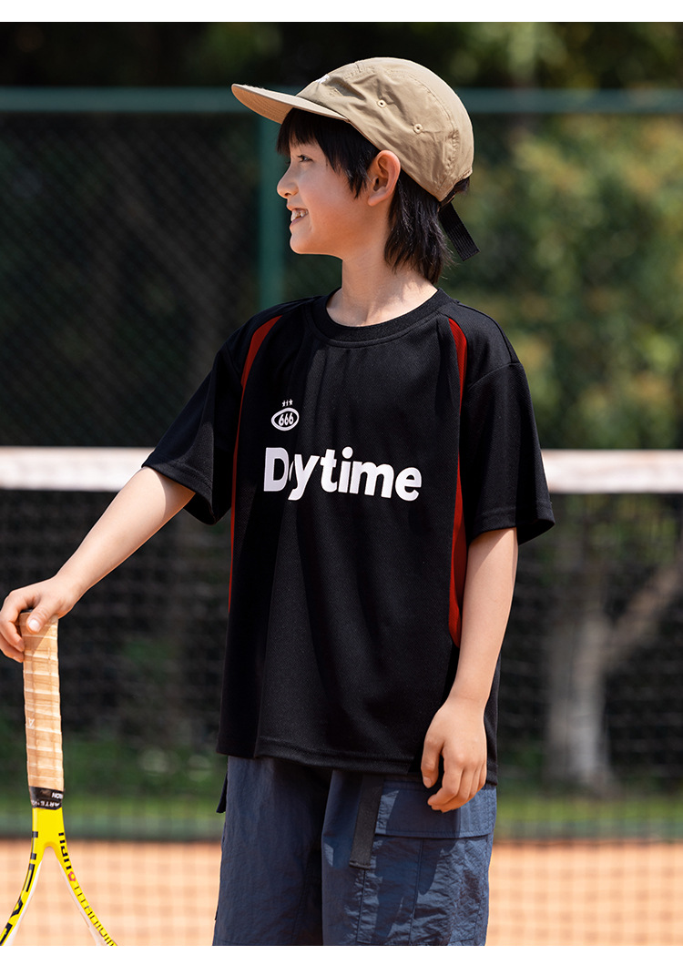 EK 아동복 느슨한 티셔츠 통기성 컬러 블록 반팔 스포츠 탑