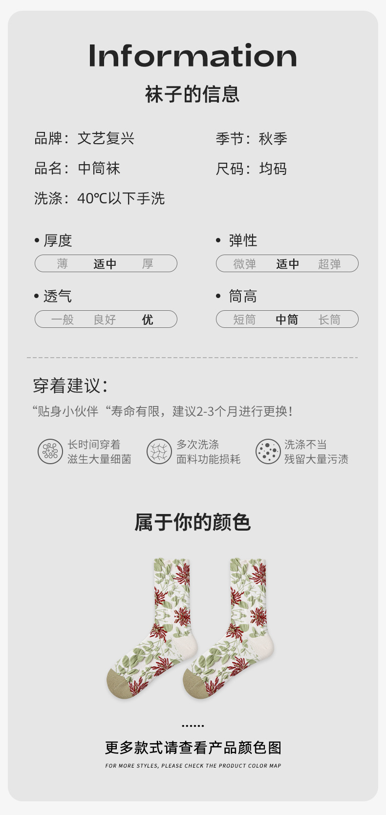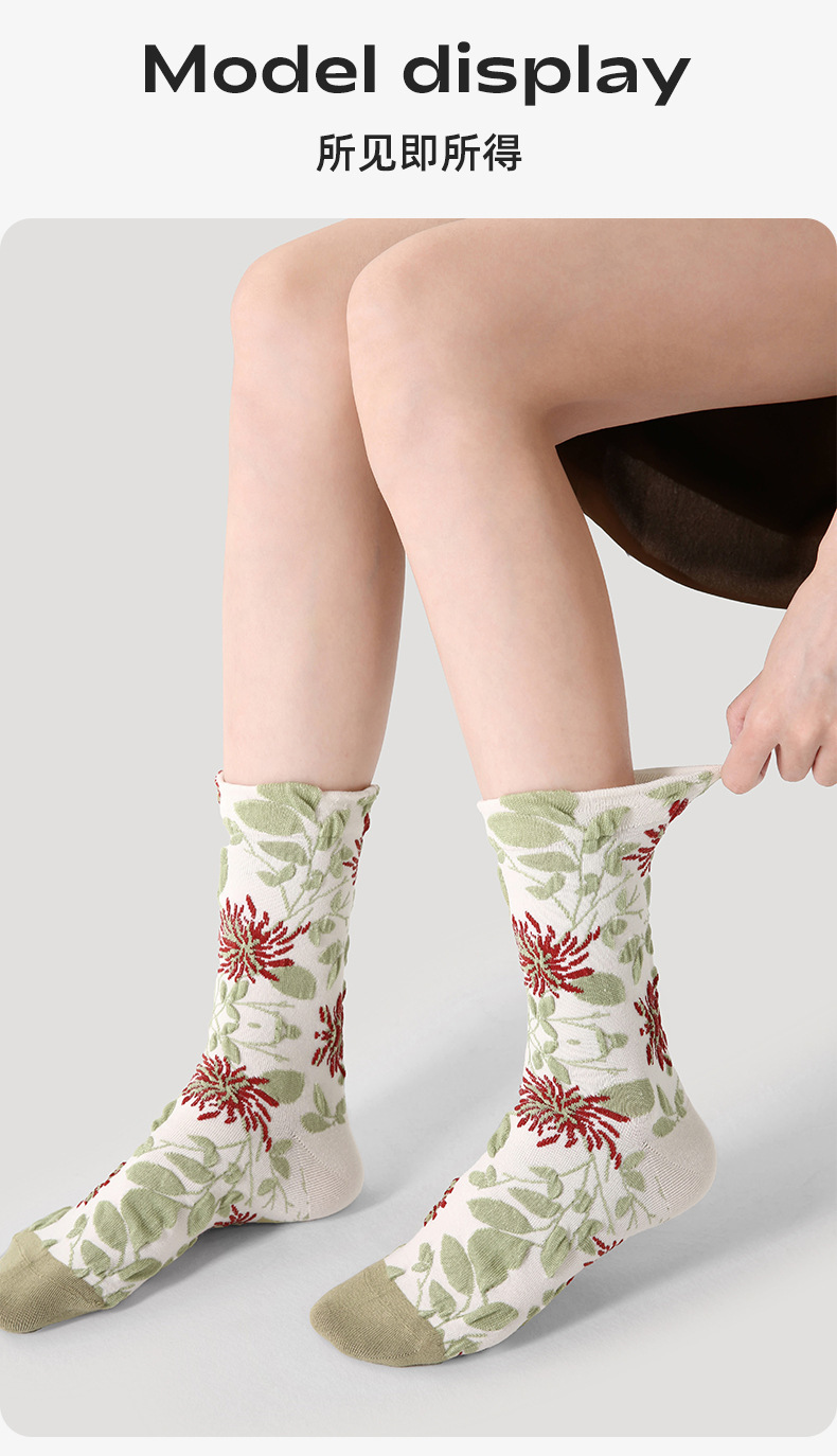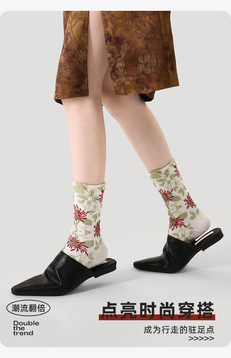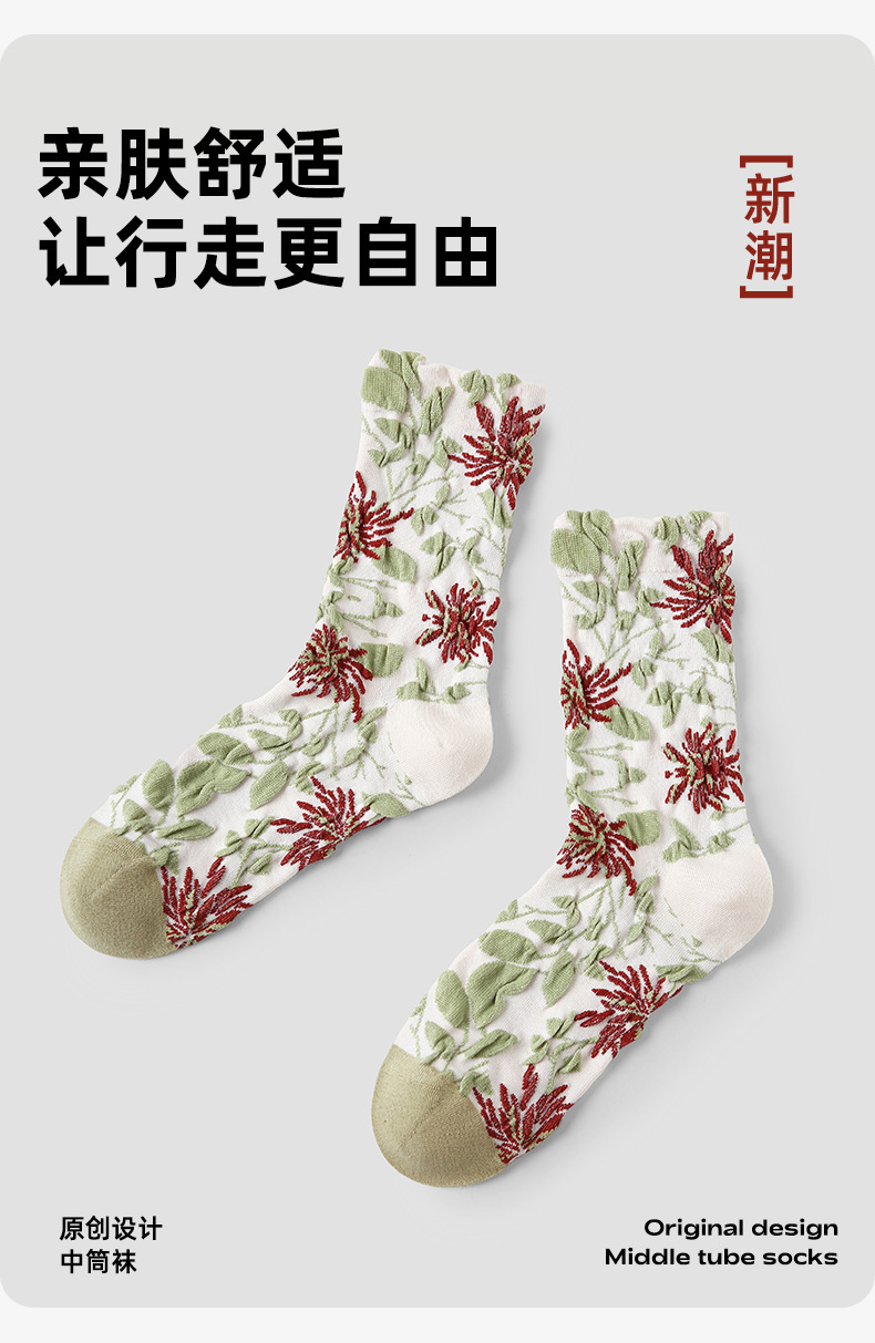 르네상스 여성 양말 봄과 가을 새로운 스타일 중간 튜브 양말 중국 스타일 맞춤형 복고풍 양각 기능 트렌디 양말 긴 양말면 양말스토어 가기