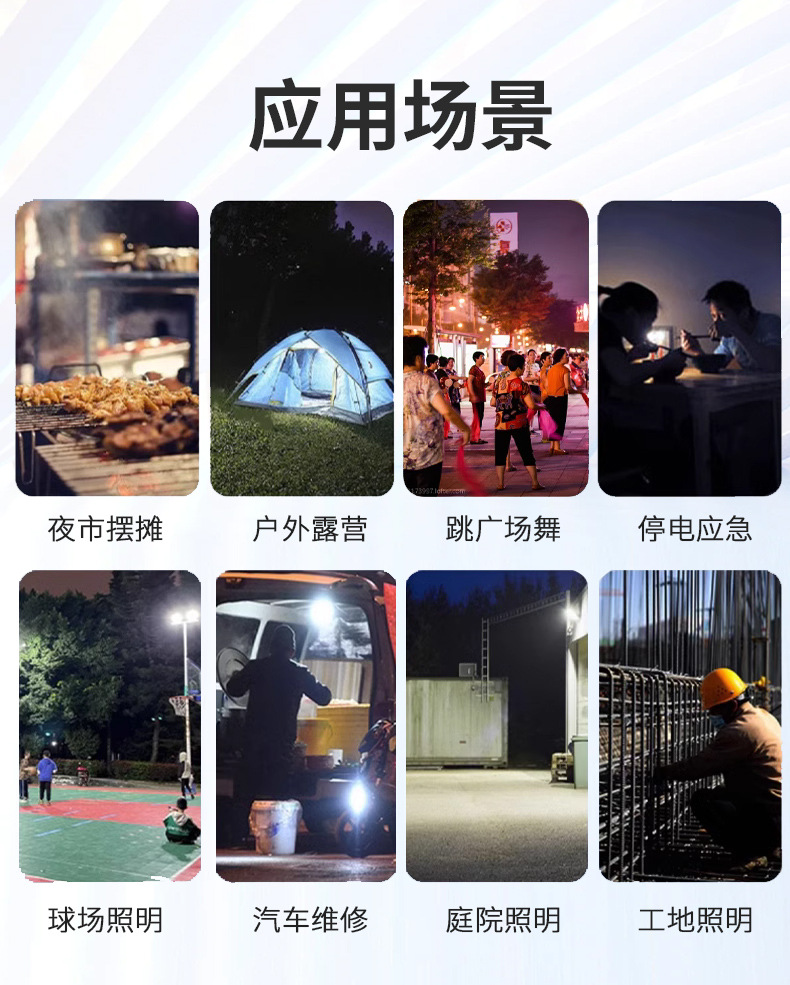 • 보조 배터리로 사용할 수 있는 이중 조명 캠핑 조명