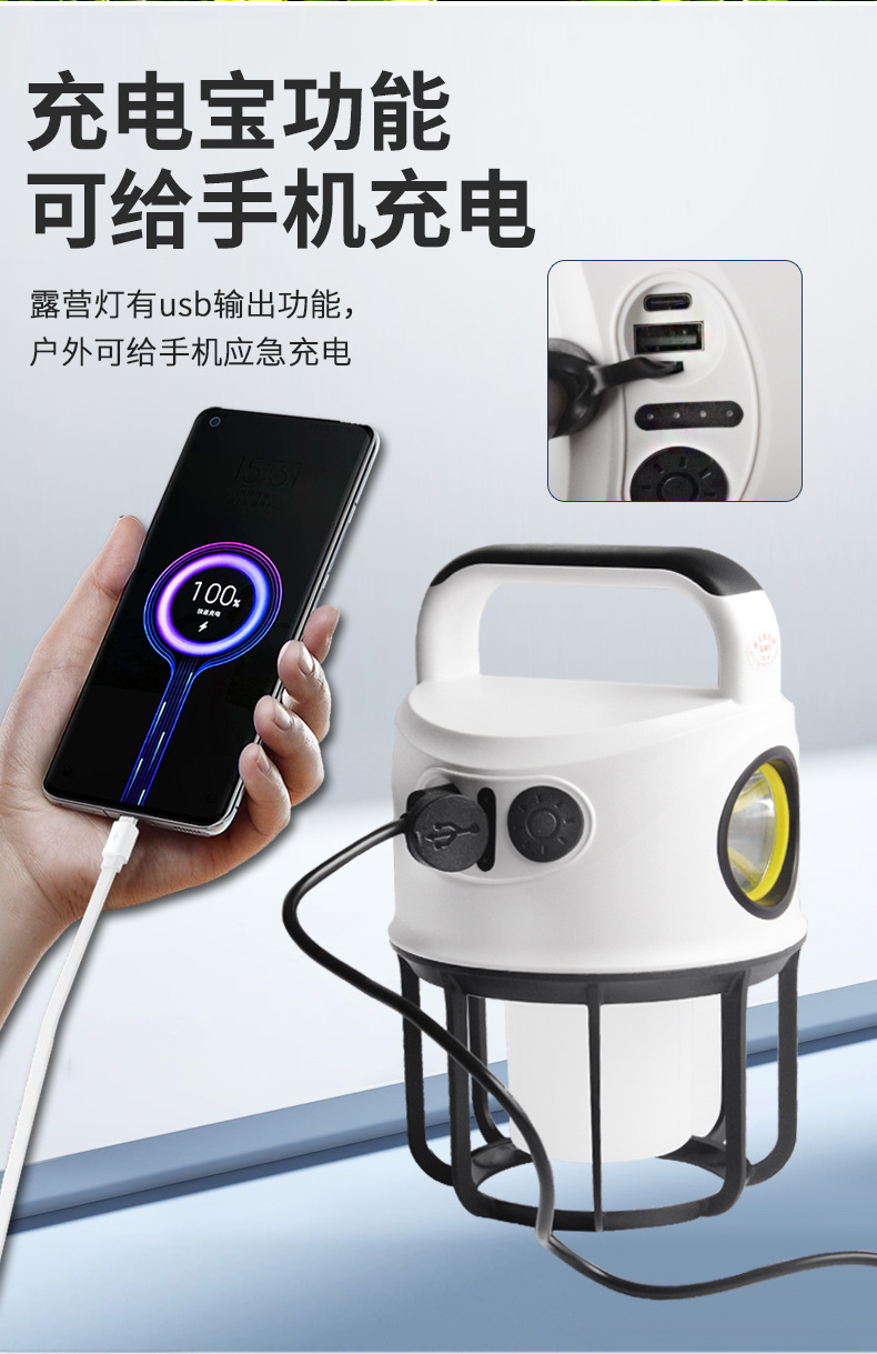 LED 충전식 초장거리 캠핑 야시장 배터리 수명 스톨 휴대용 야외 조명 텐트 분위기 조명 캠핑 캠프스토어 가기