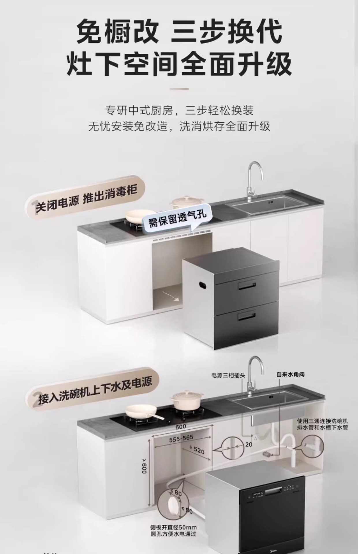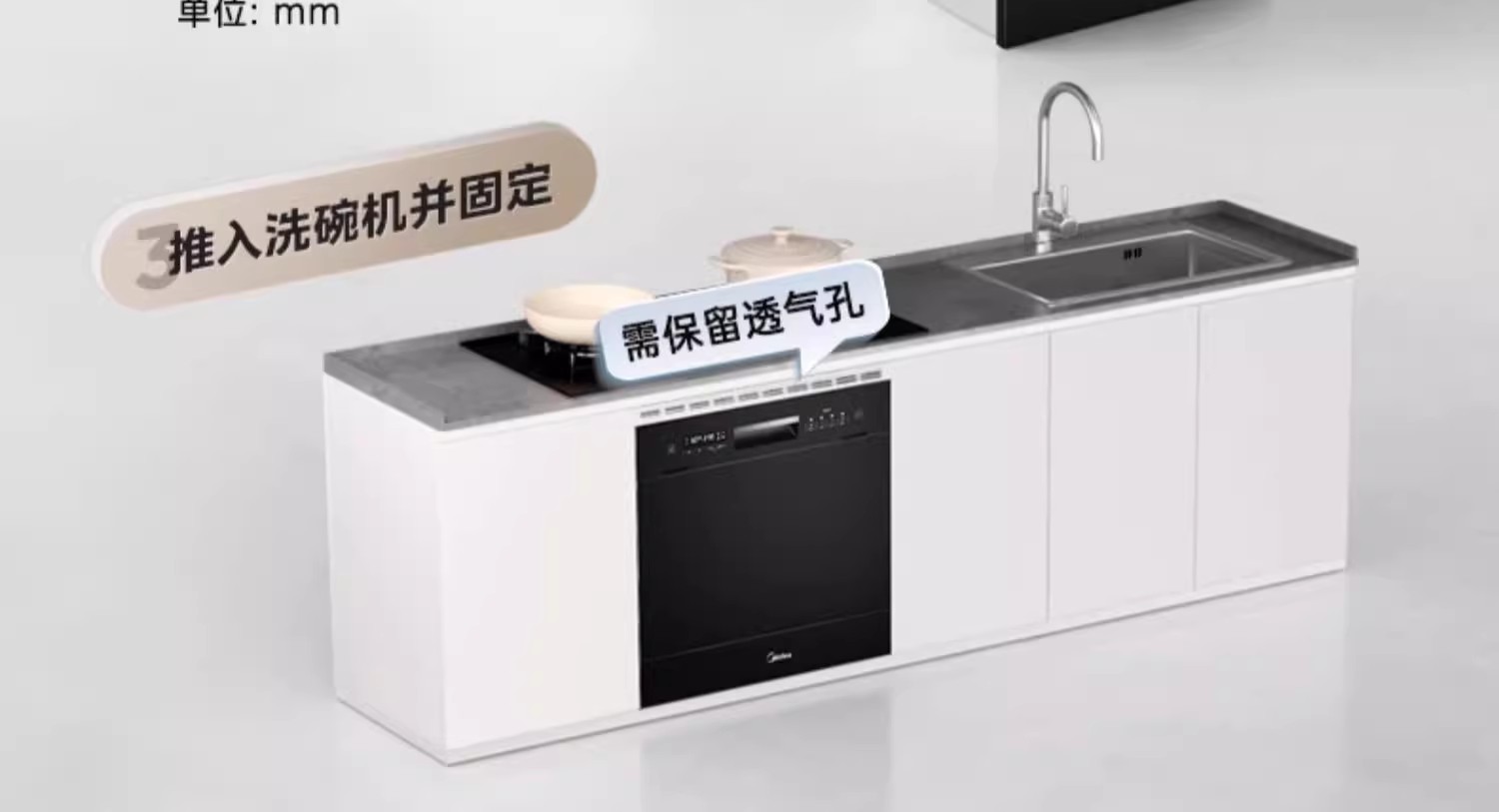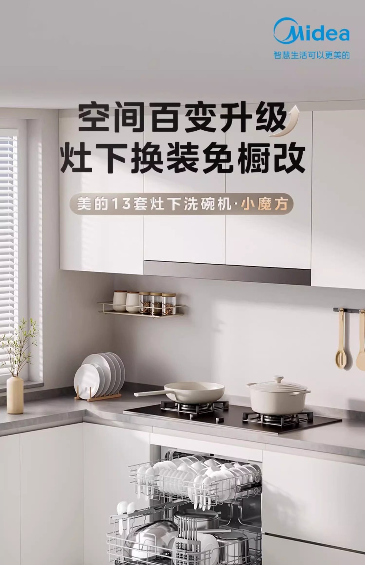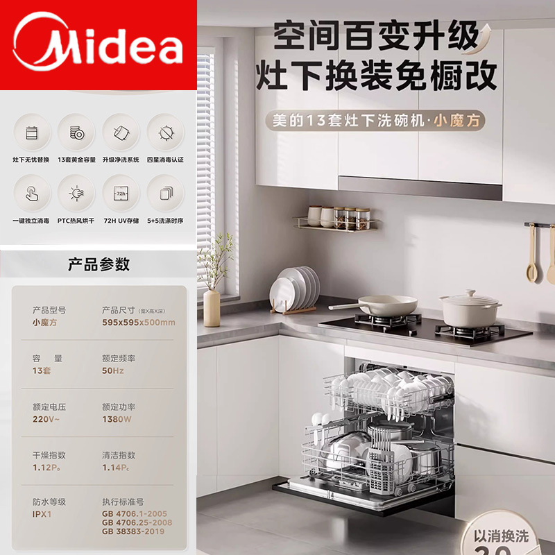 Midea 13세트 소형 루빅스 큐브 V9 식기세척기 내장, 스토브 아래 장착, 완전 자동 가정용 소독 열 UXMagic