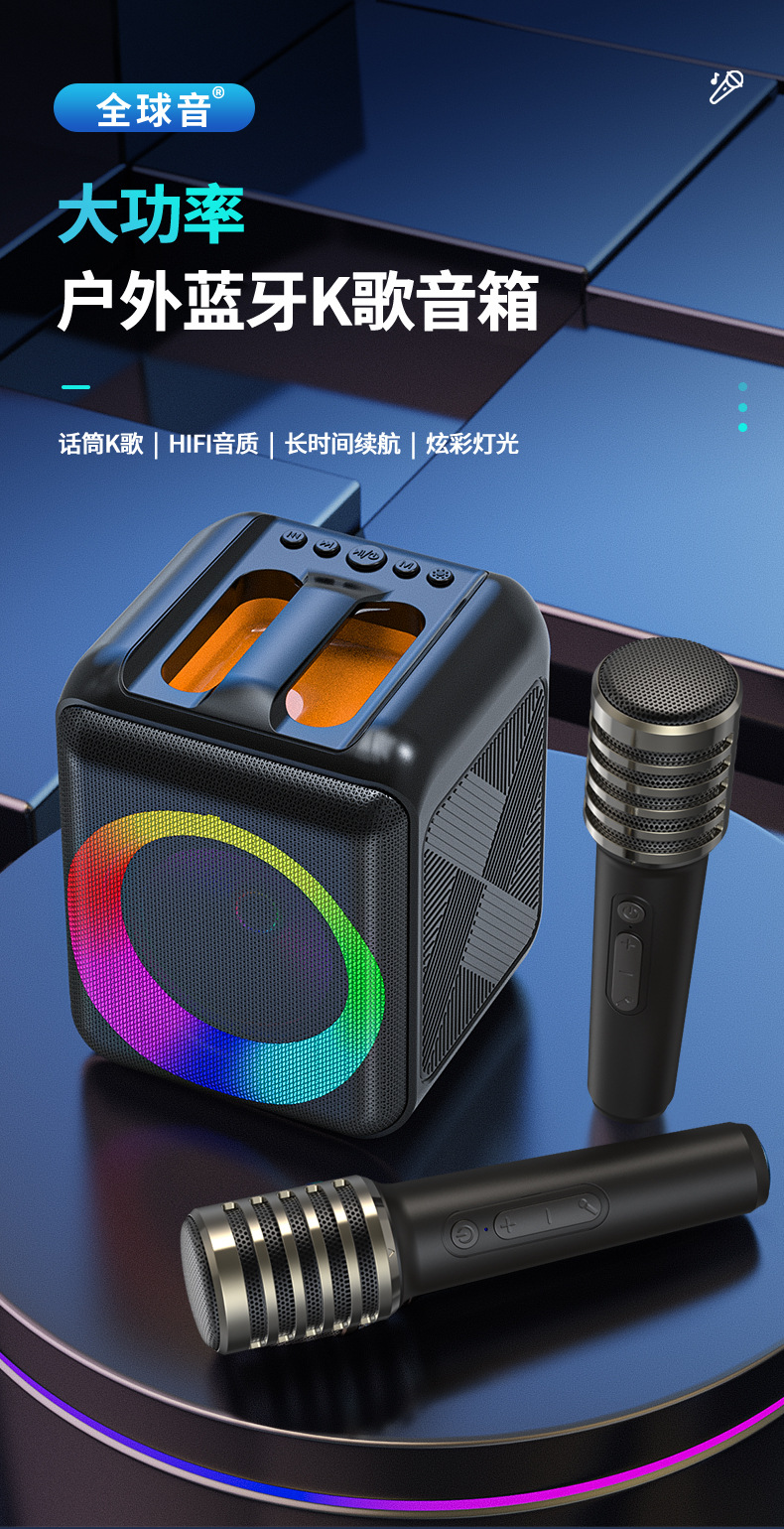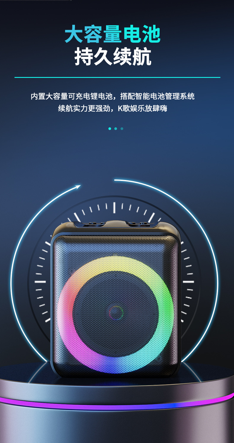 야외용 휴대용 무선 블루투스 스피커 마이크 일체형 가라오케 홈 서브우퍼 오디오 시스템, 라이브 방송에 적합하며 큰 사운드 출력 제공