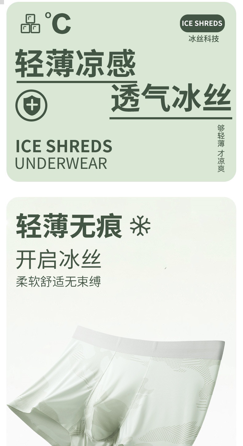 Douyin 같은 스타일의 남성용 얼음 실크 속옷, 초박형, 시원하고 통기성이 뛰어난 7A 항균 대형 남성용 속옷 사각형 복서 팬티스토어 가기