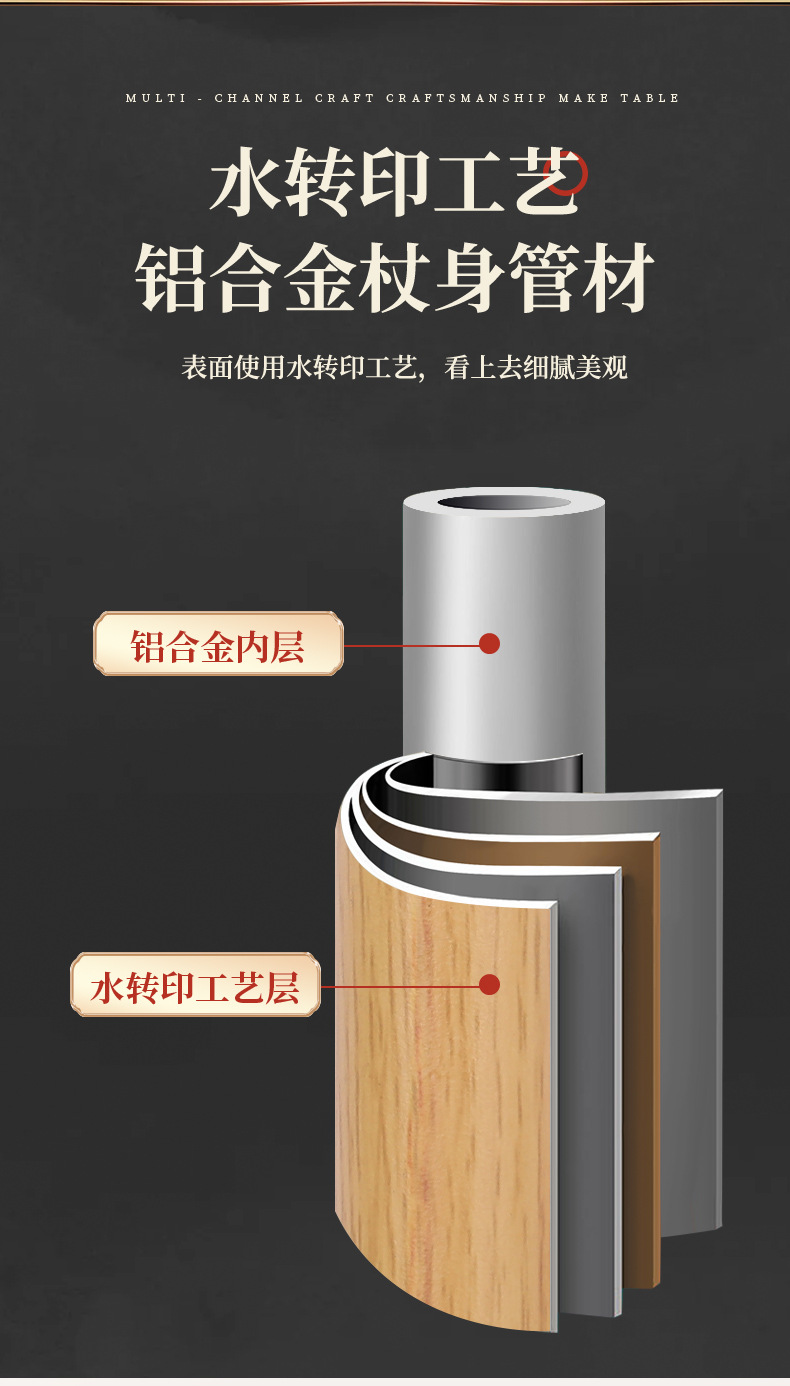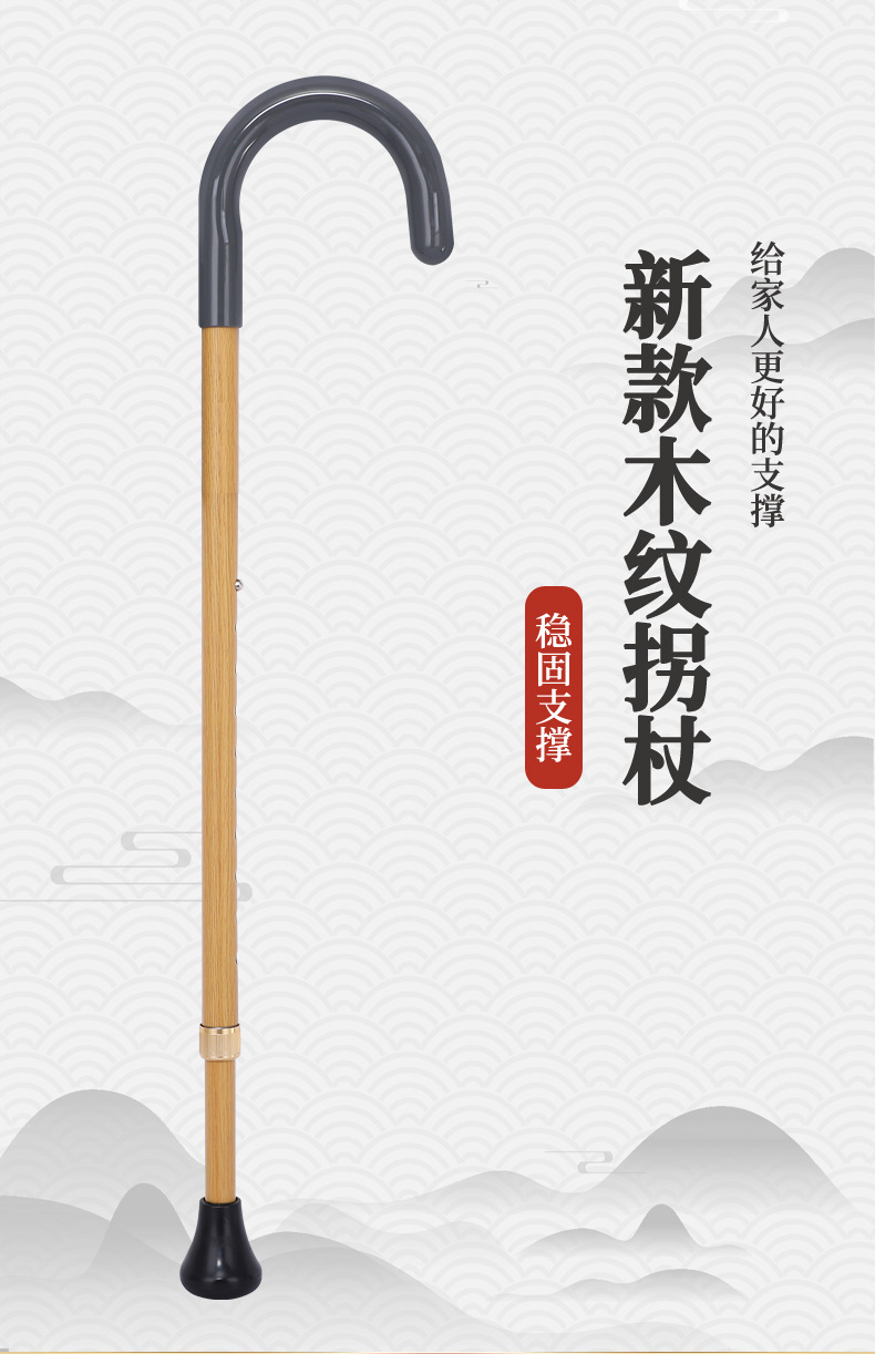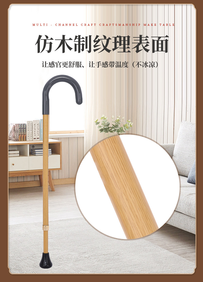 노인용 알루미늄 합금 나무무늬 곡선형 손잡이 미끄럼 방지 지팡이, 경량 접이식 지팡이, 대행 배송 가능스토어 가기