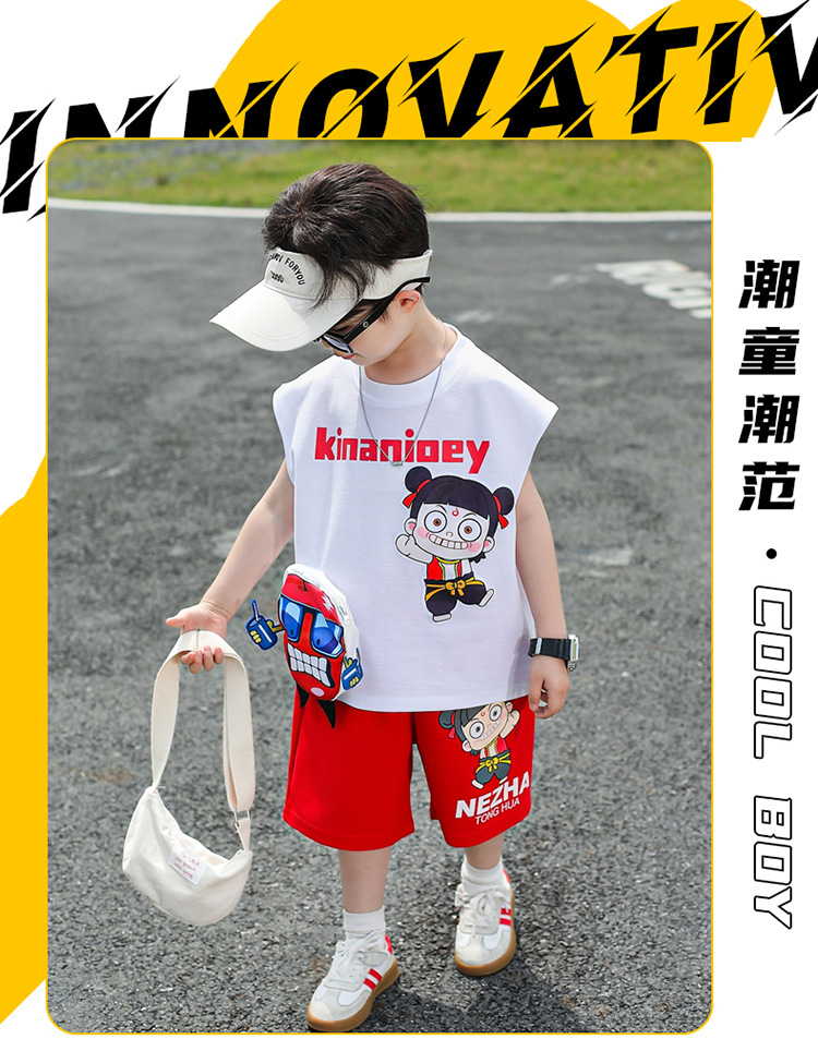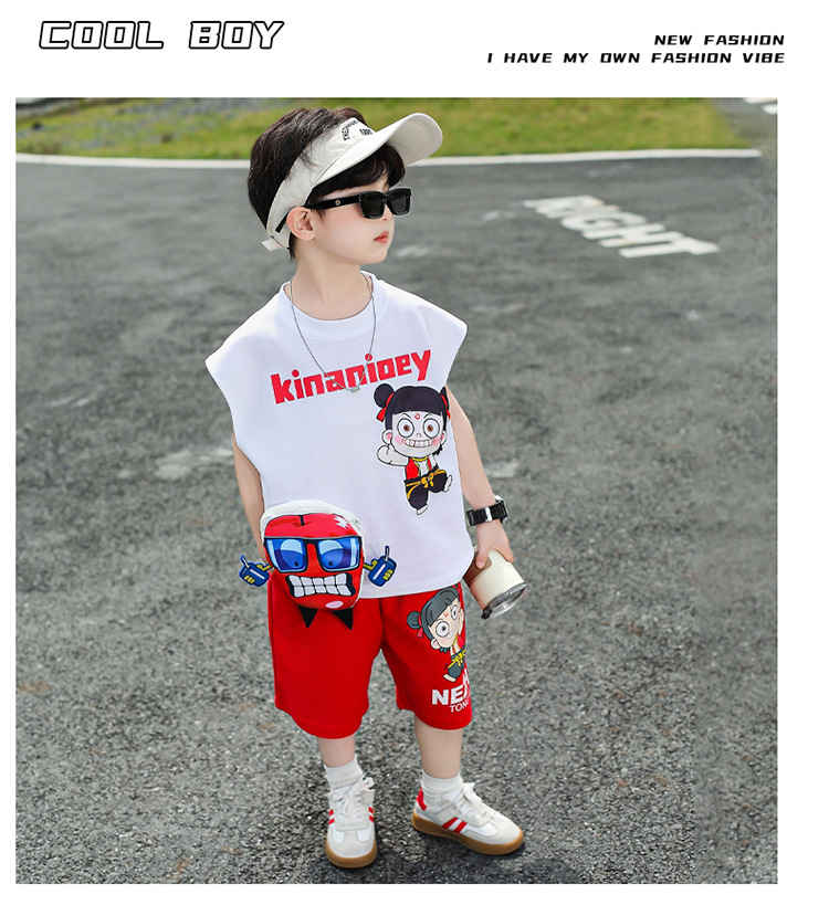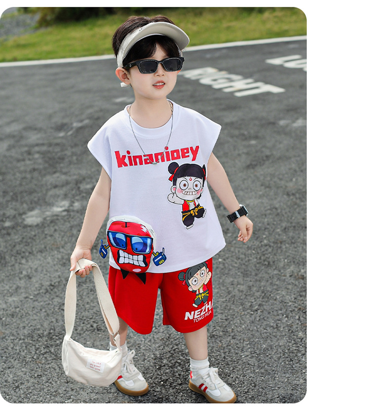 소년 조끼 정장 Nezha 옷 잘 생긴 아기 여름 민소매 양복 조끼 유행 어린이 얇은 여름 투피스 양복스토어 가기