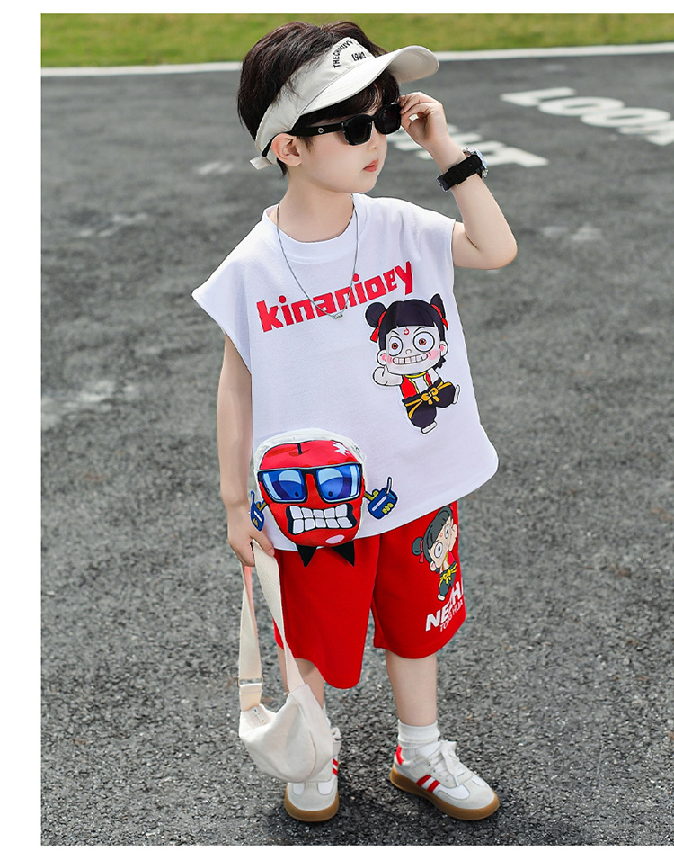 소년 조끼 정장 Nezha 옷 잘 생긴 아기 여름 민소매 양복 조끼 유행 어린이 얇은 여름 투피스 양복