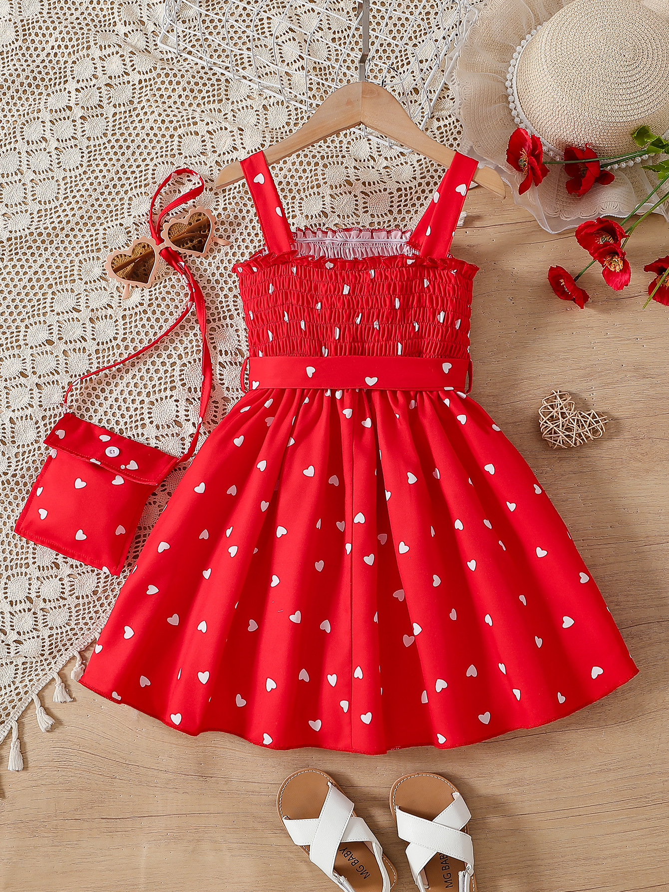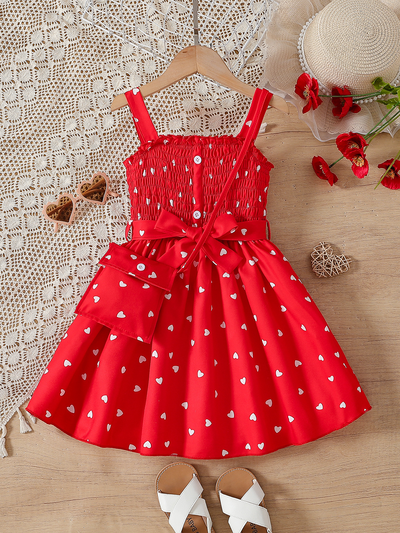 대외 무역 여름 소녀 슬립 스커트 레드 벨트 사랑 인쇄 활 소녀의 주름 치마 공주 스커트