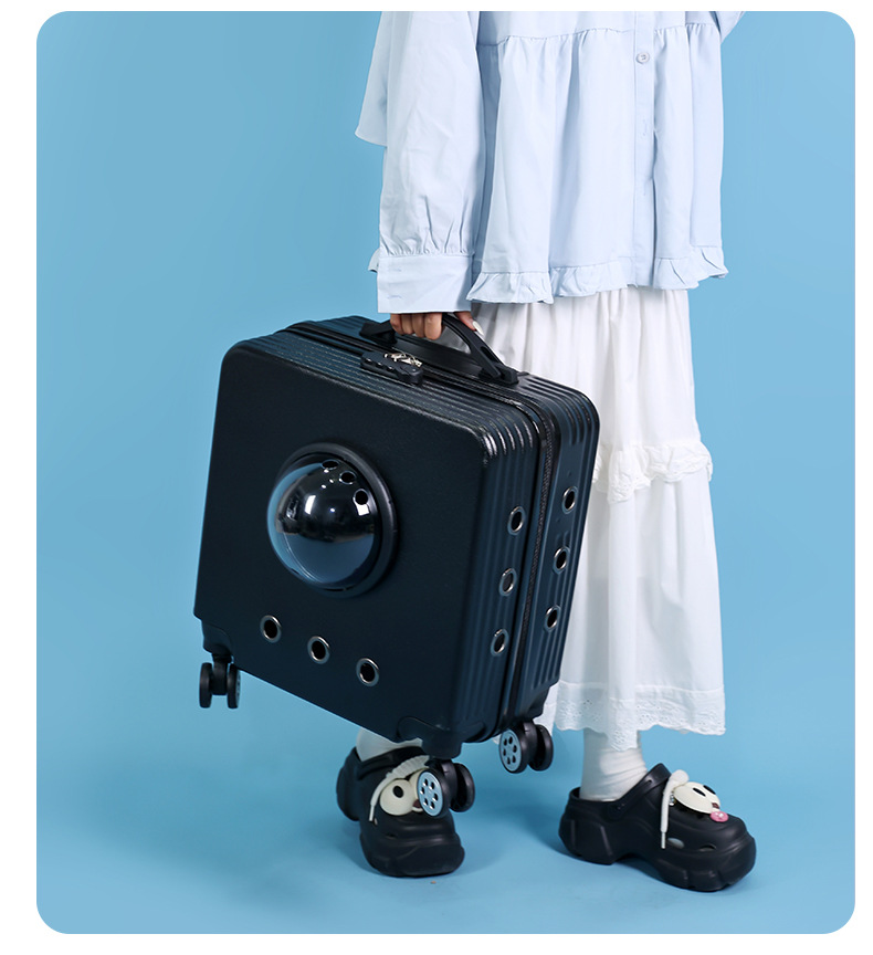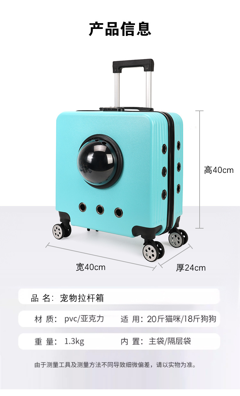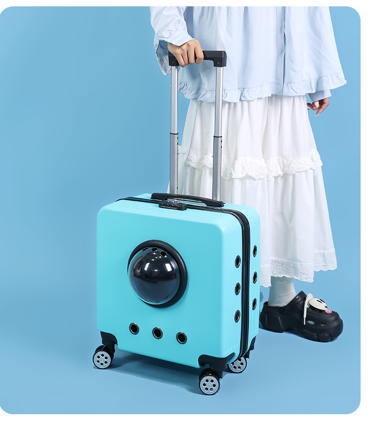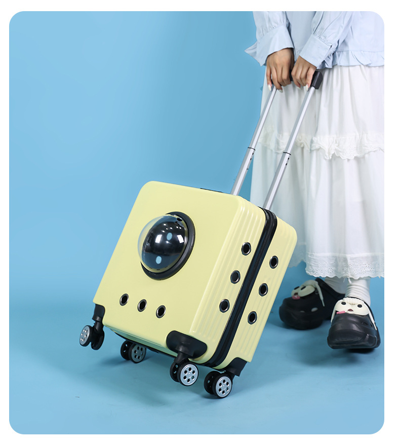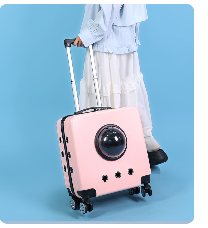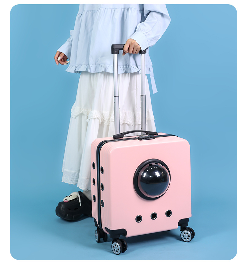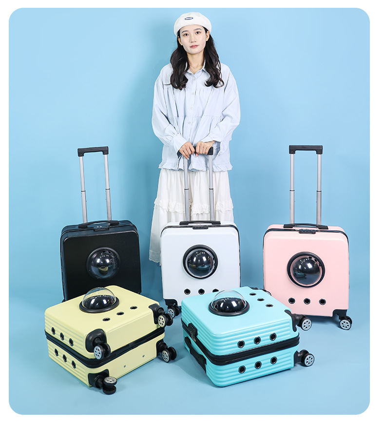 애완 동물 트롤리 케이스 외출 가방 통기성 대용량 에어 케이스 분리 가능한 유니버설 휠 고양이 케이스 솔리드 컬러 고양이 케이지