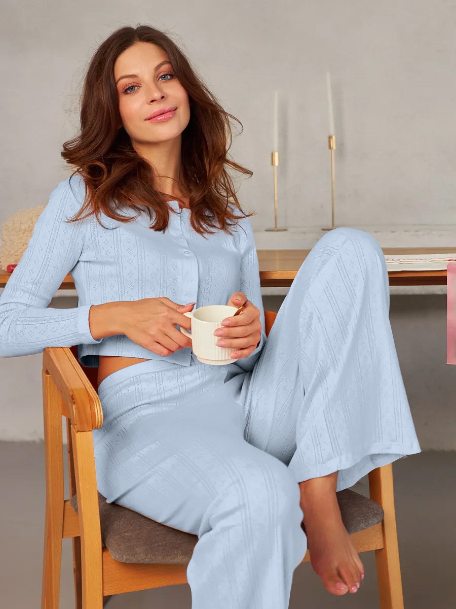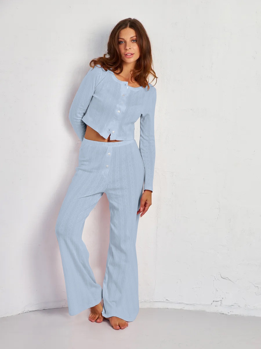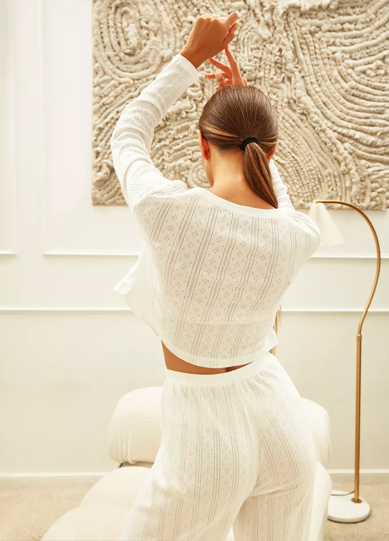 국경 간 Xiyin 유럽과 미국의 패션 긴팔 바지 홈웨어 아마존 대외 무역 잠옷 세트 섹시한 중공 자카드스토어 가기