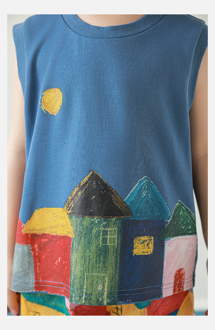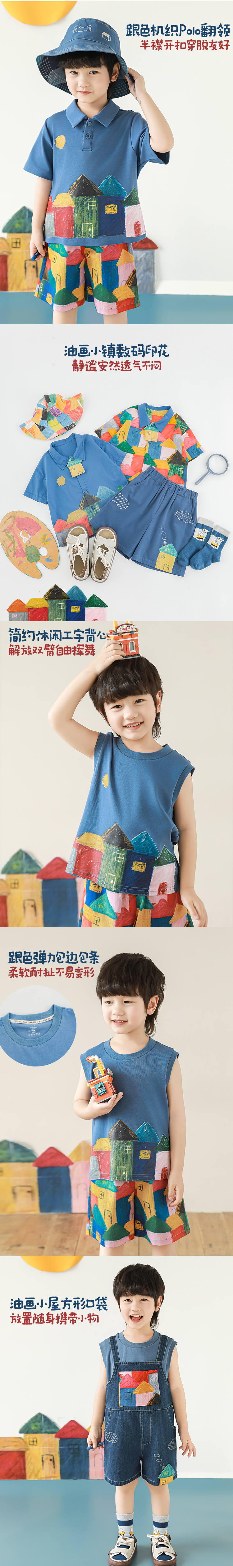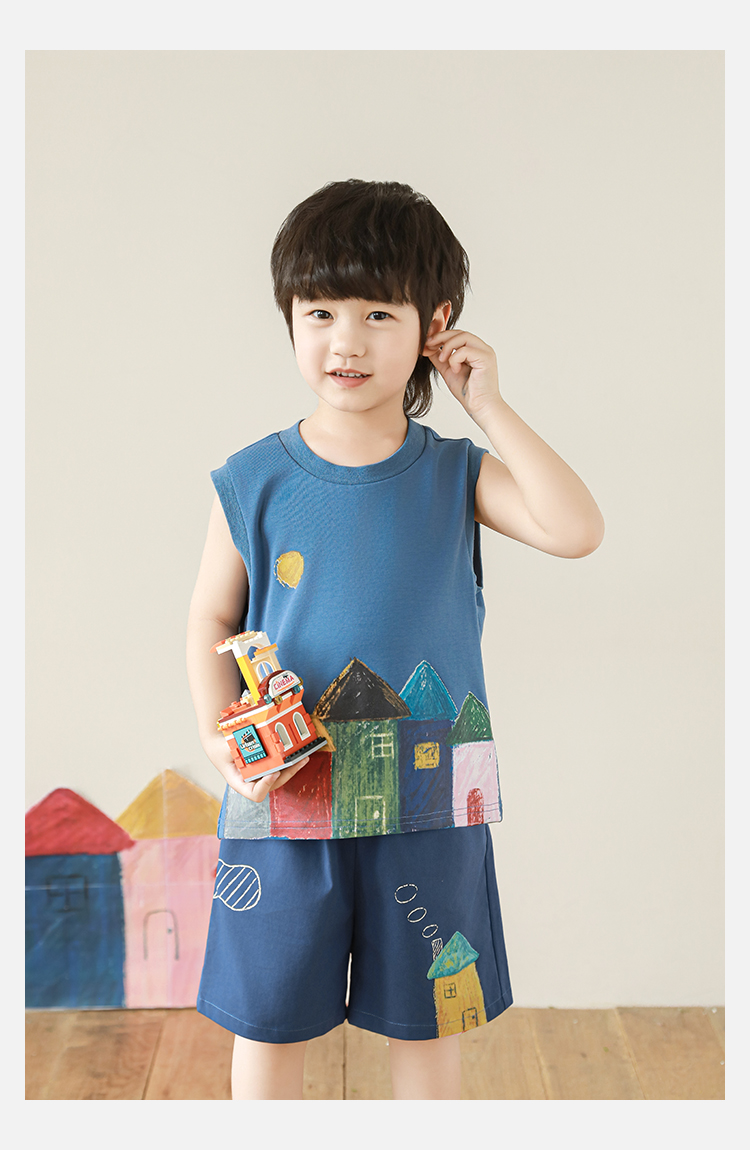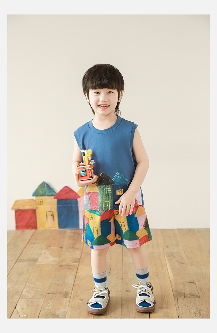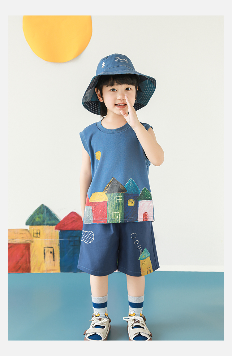 Wurib a 소년 여름 새로운 캐주얼 민소매 조끼 느슨한 반바지 밀물 세트 유화 마을스토어 가기