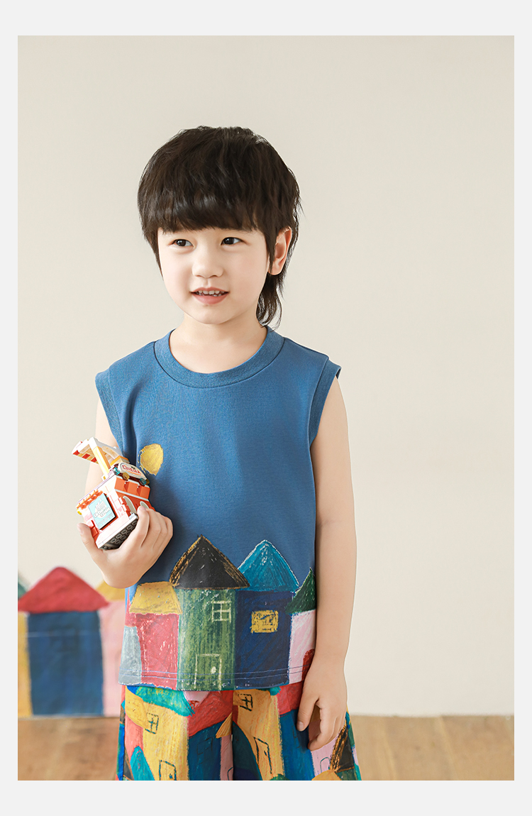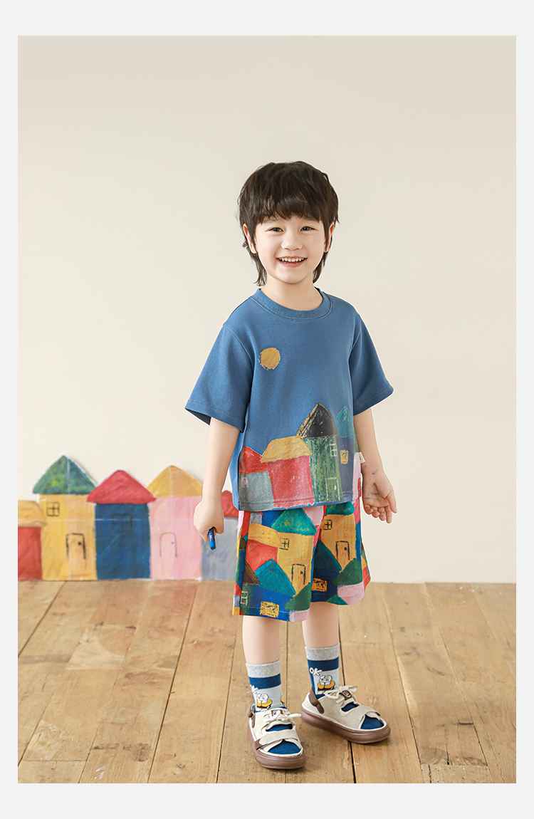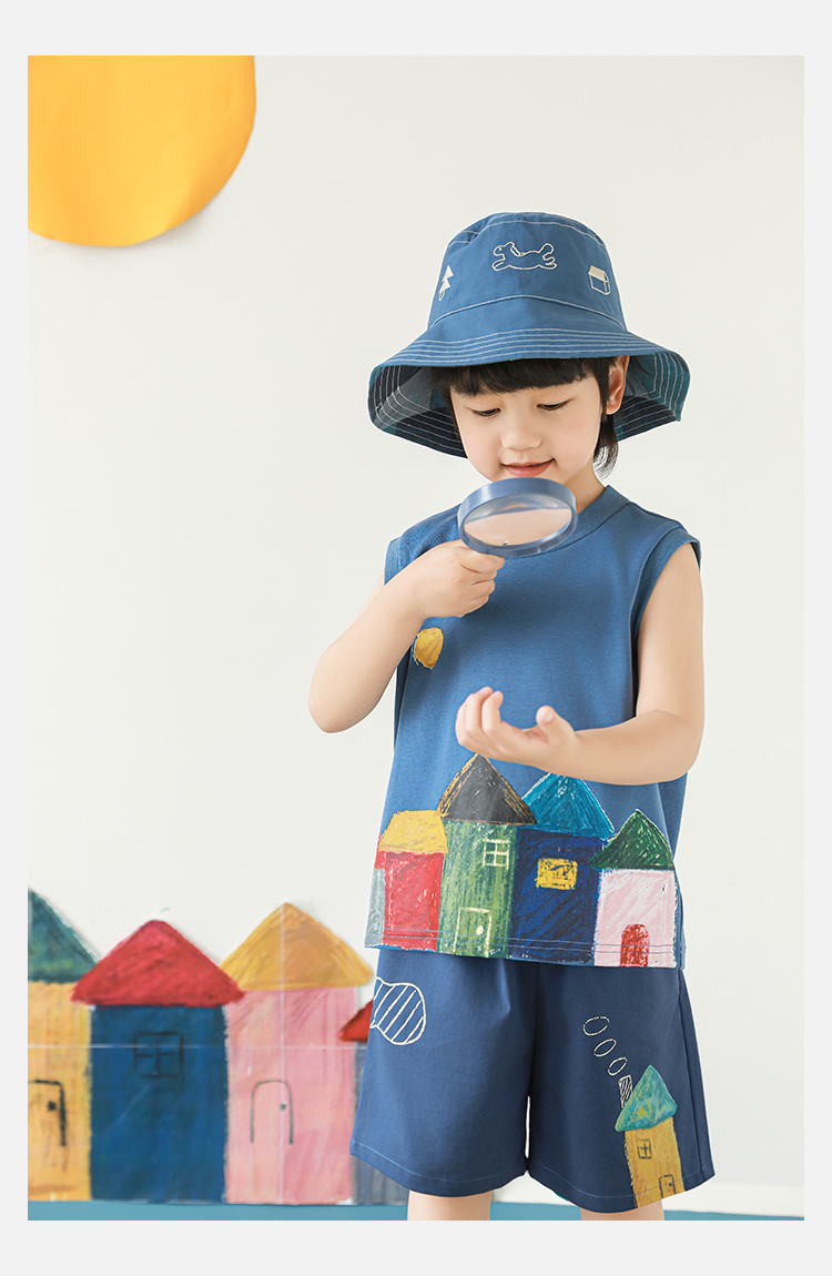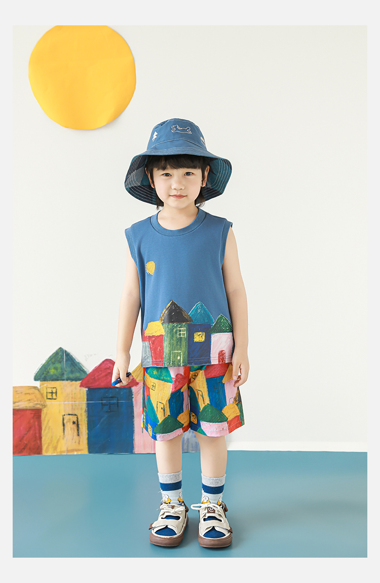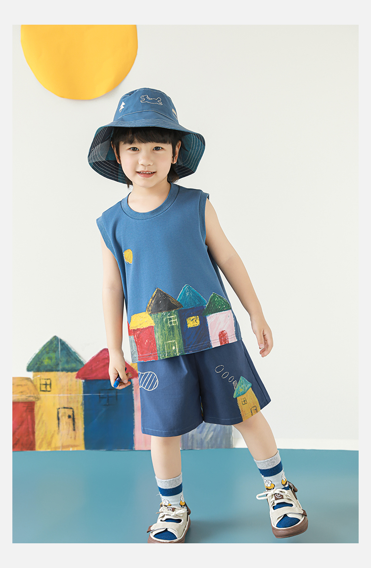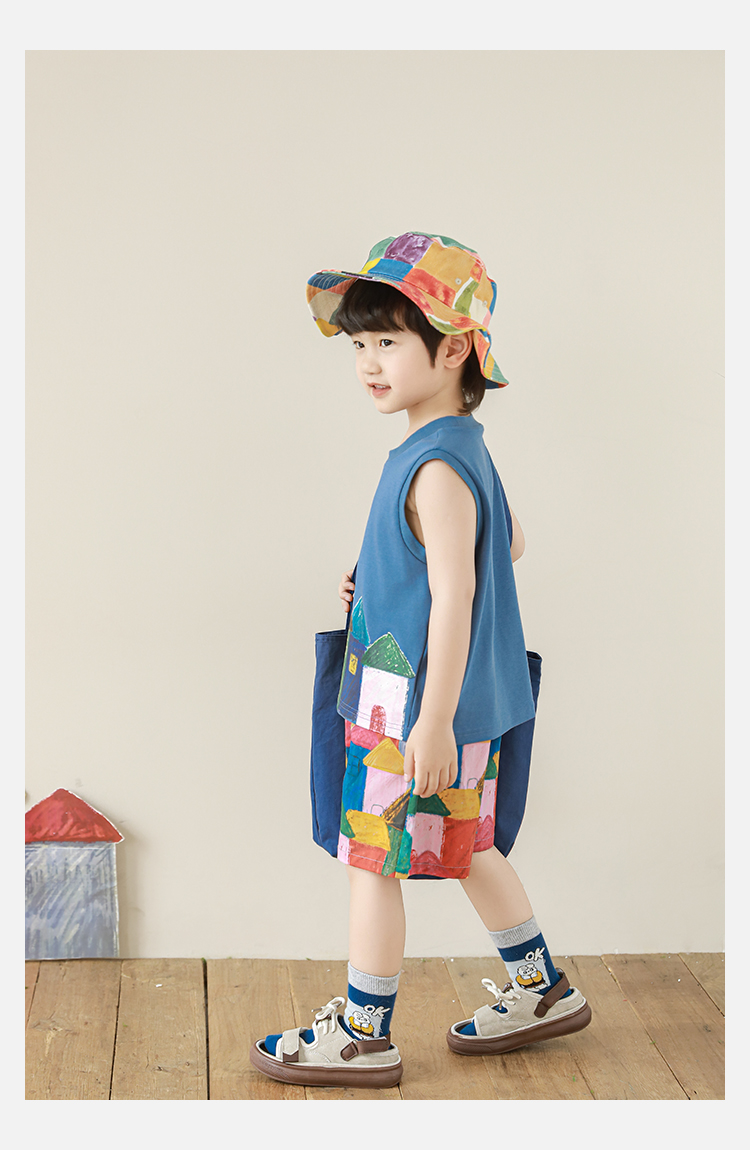 Wurib a 소년 여름 새로운 캐주얼 민소매 조끼 느슨한 반바지 밀물 세트 유화 마을스토어 가기