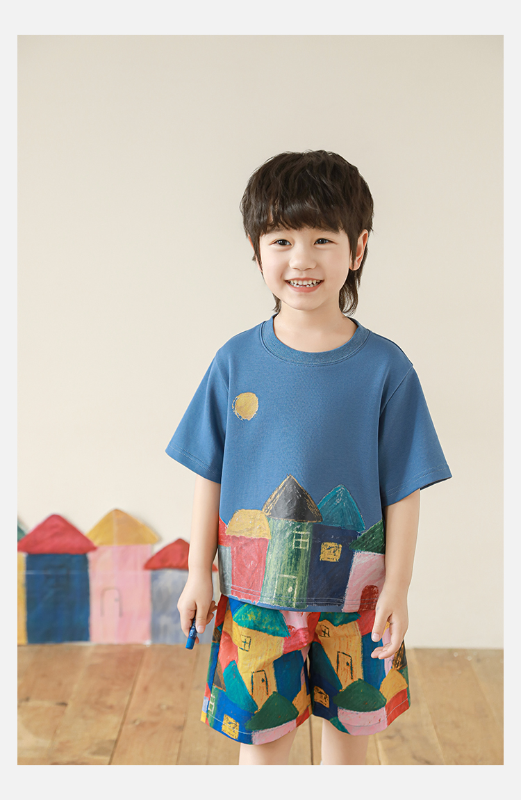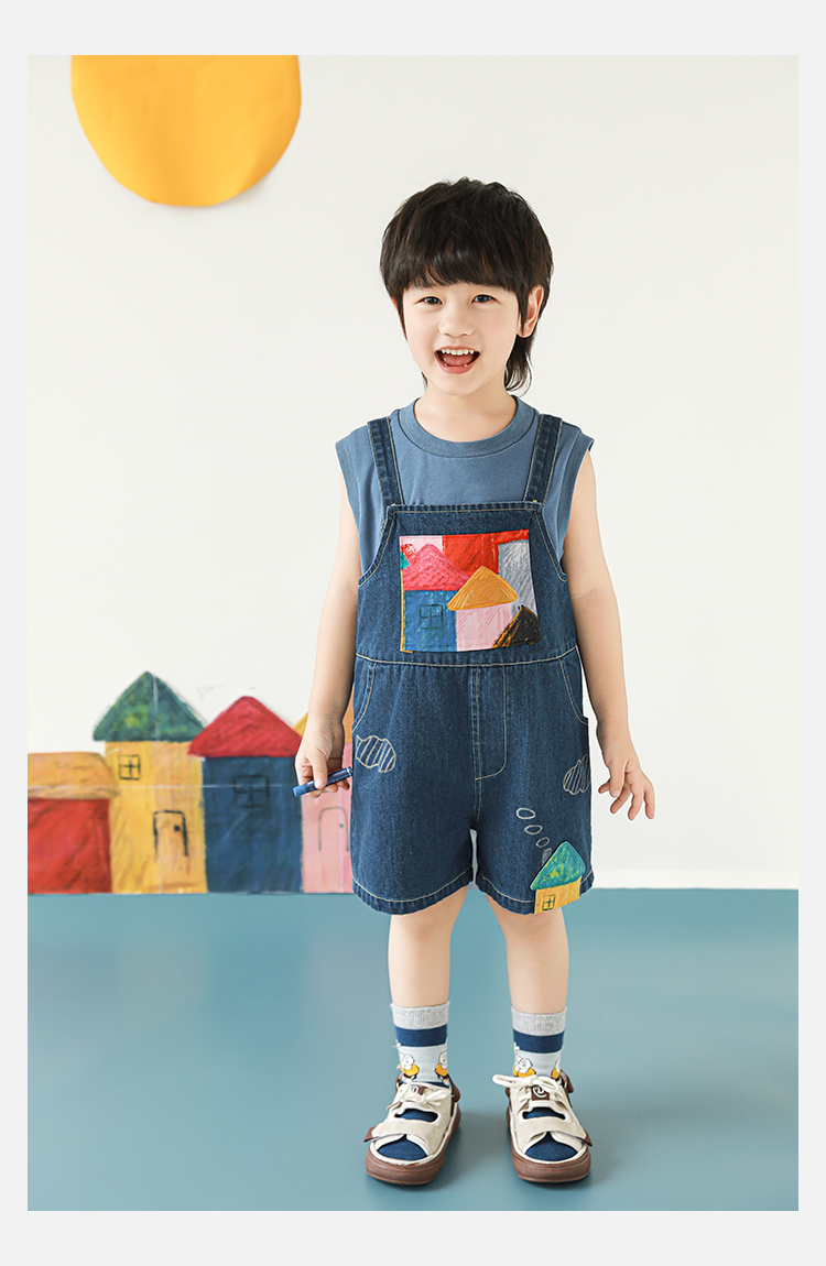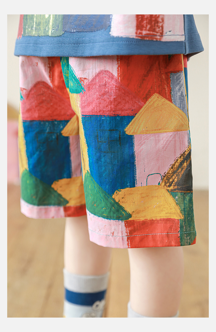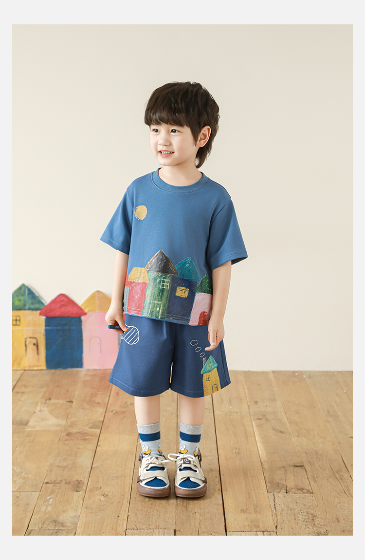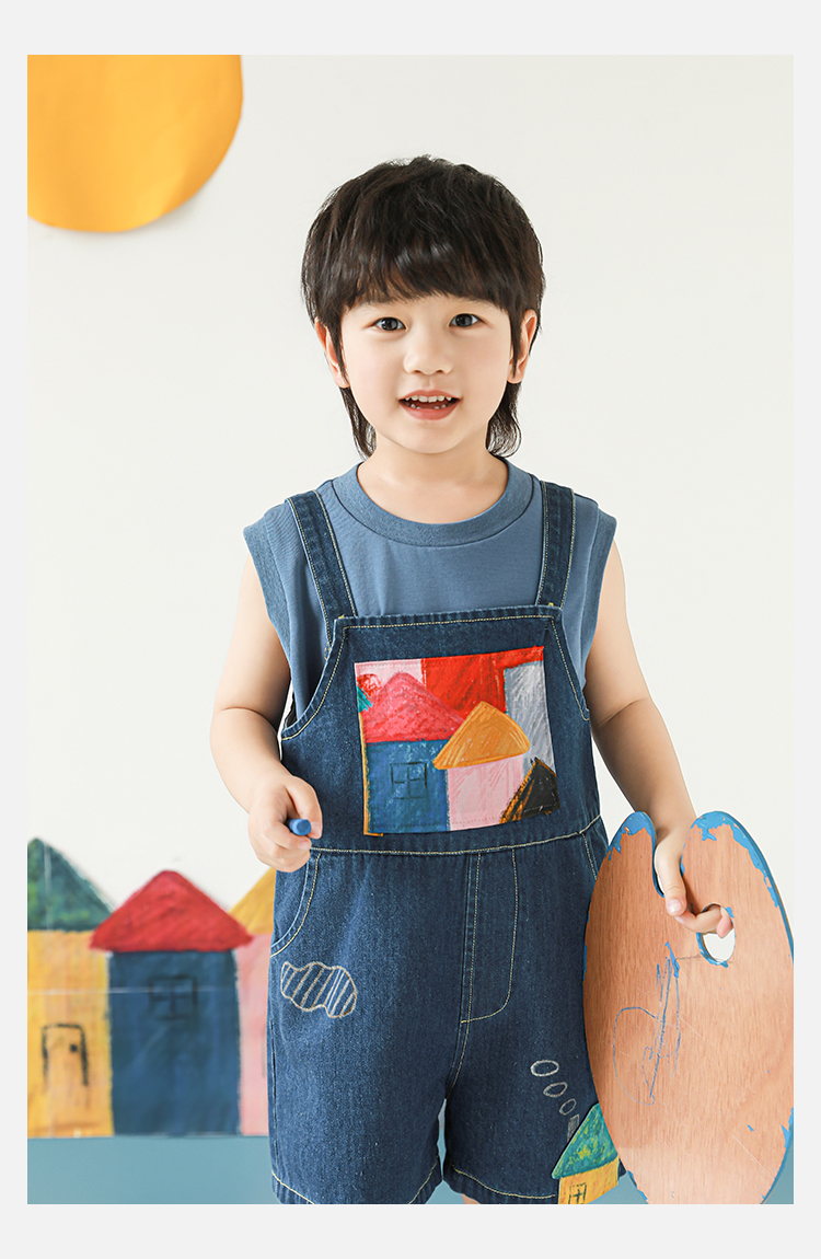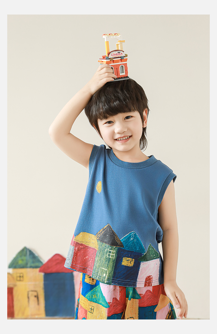 Wurib a 소년 여름 새로운 캐주얼 민소매 조끼 느슨한 반바지 밀물 세트 유화 마을스토어 가기