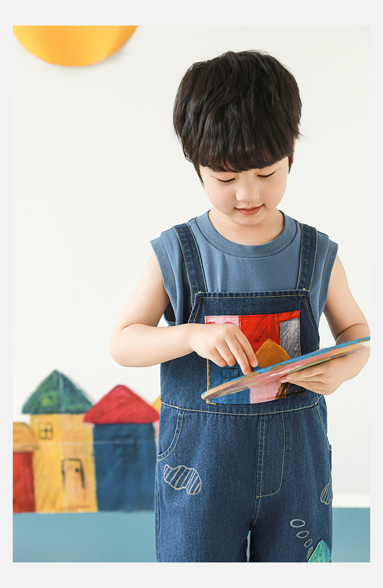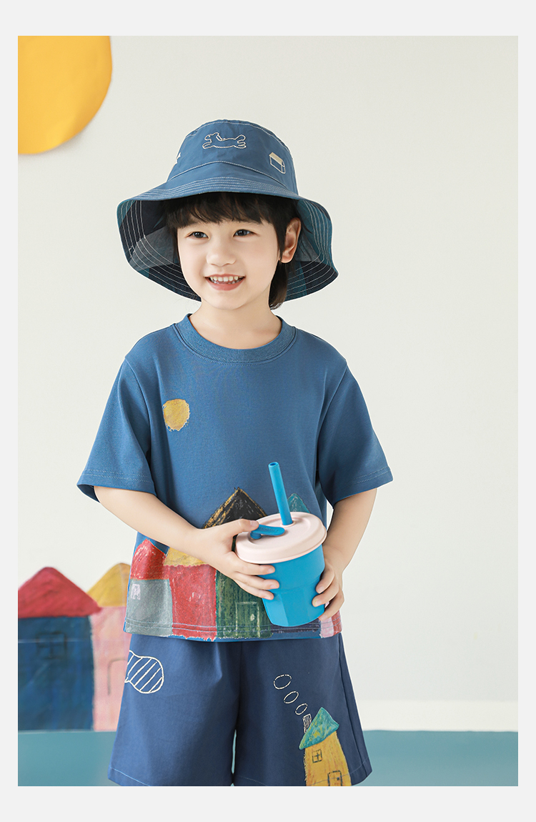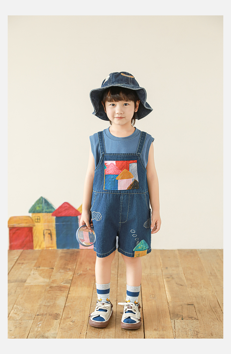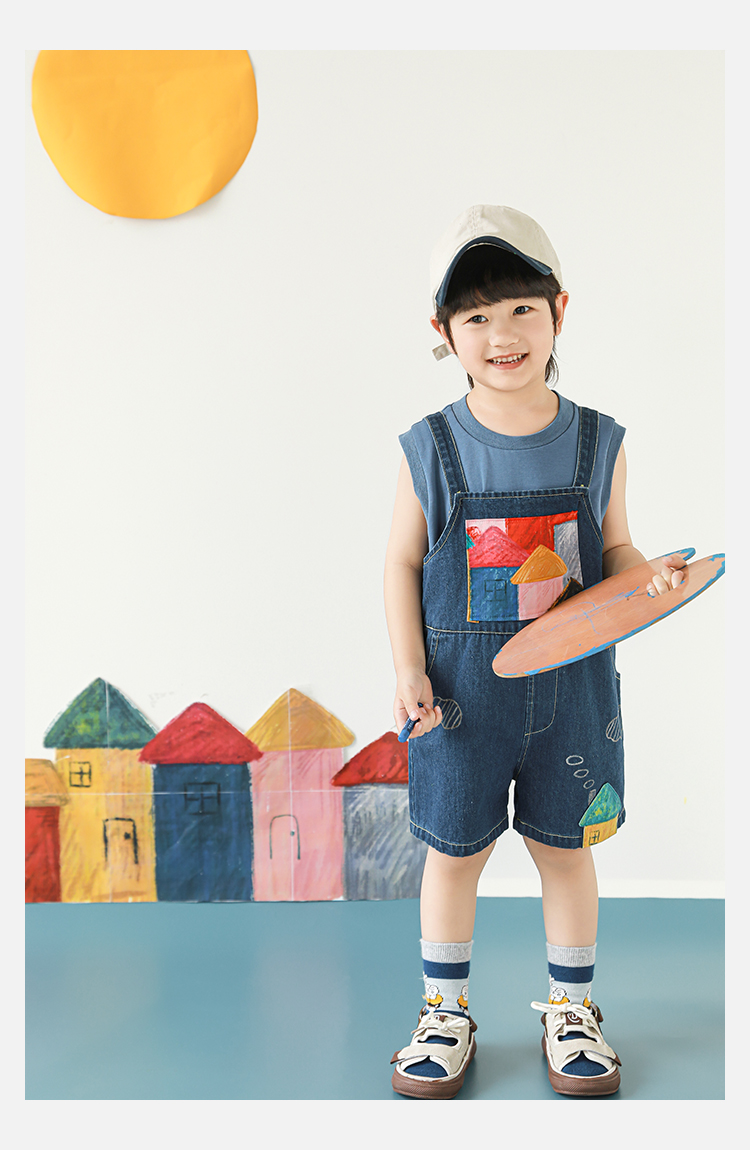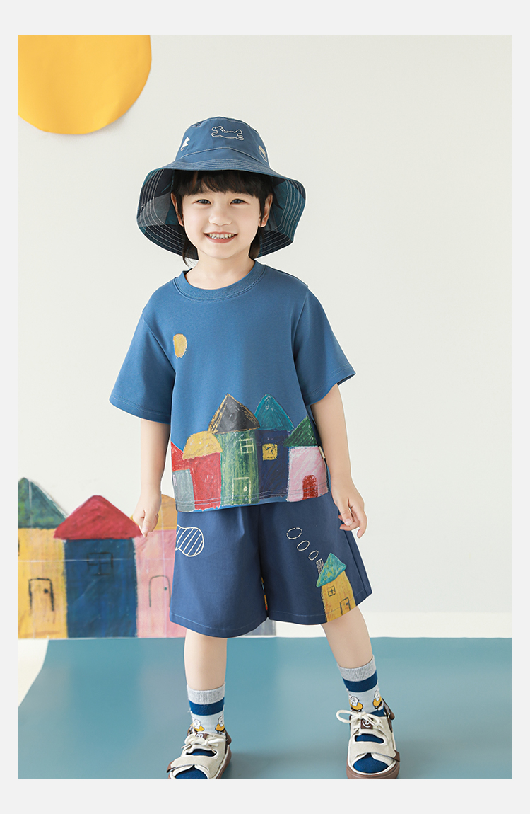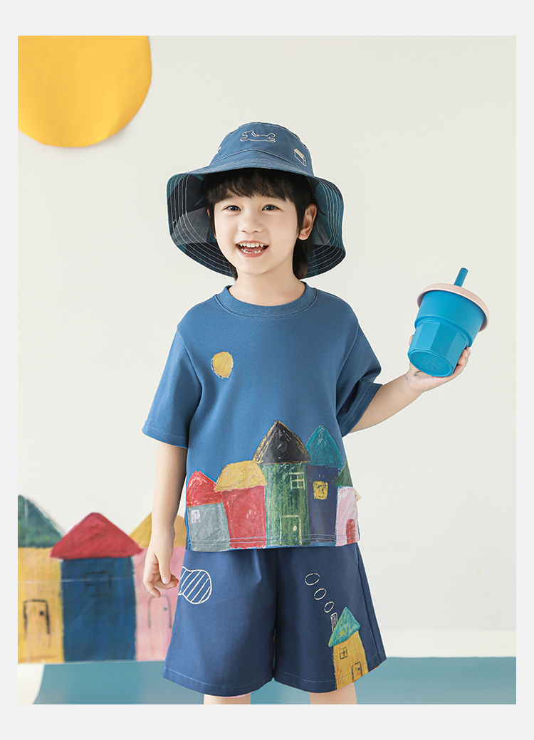 Wurib a 소년 여름 새로운 캐주얼 민소매 조끼 느슨한 반바지 밀물 세트 유화 마을스토어 가기