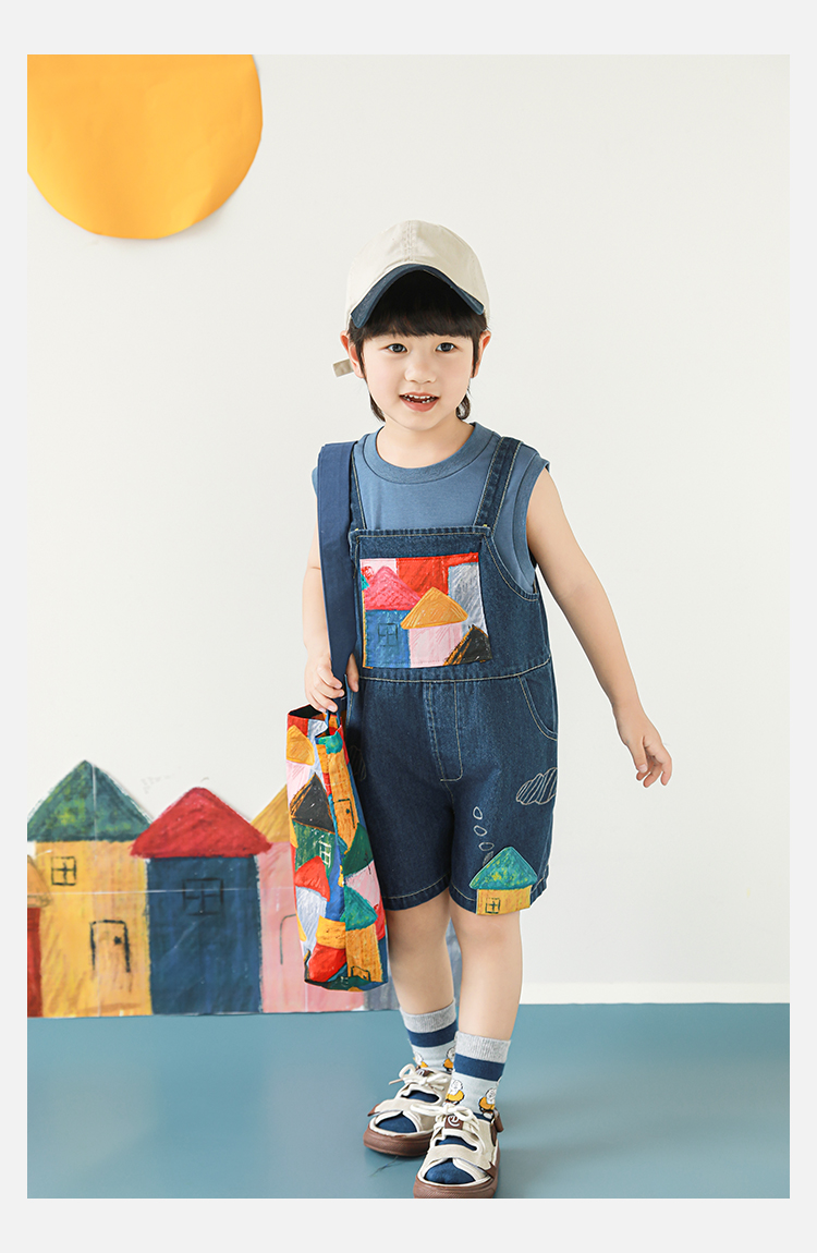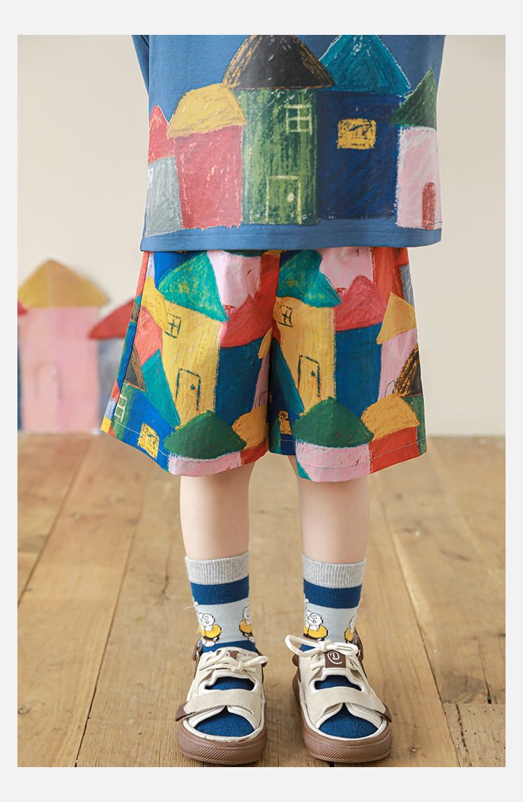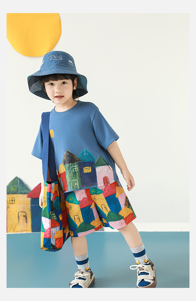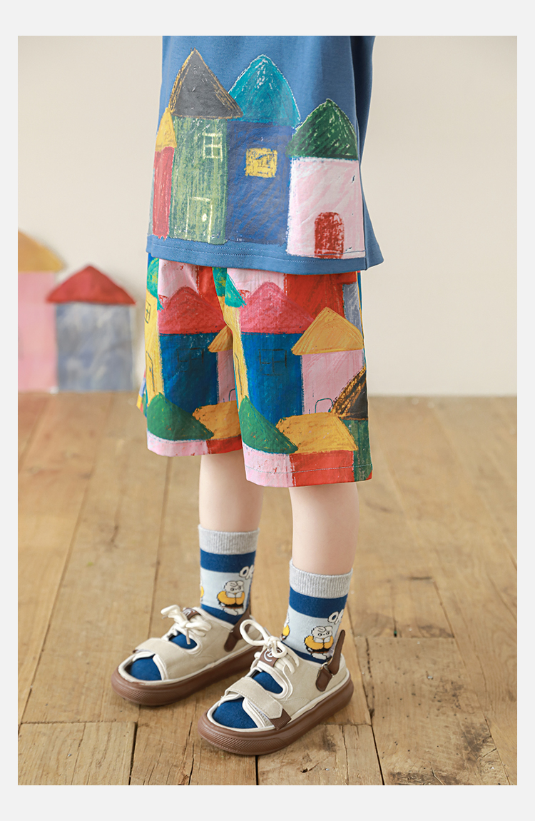 Wurib a 소년 여름 새로운 캐주얼 민소매 조끼 느슨한 반바지 밀물 세트 유화 마을