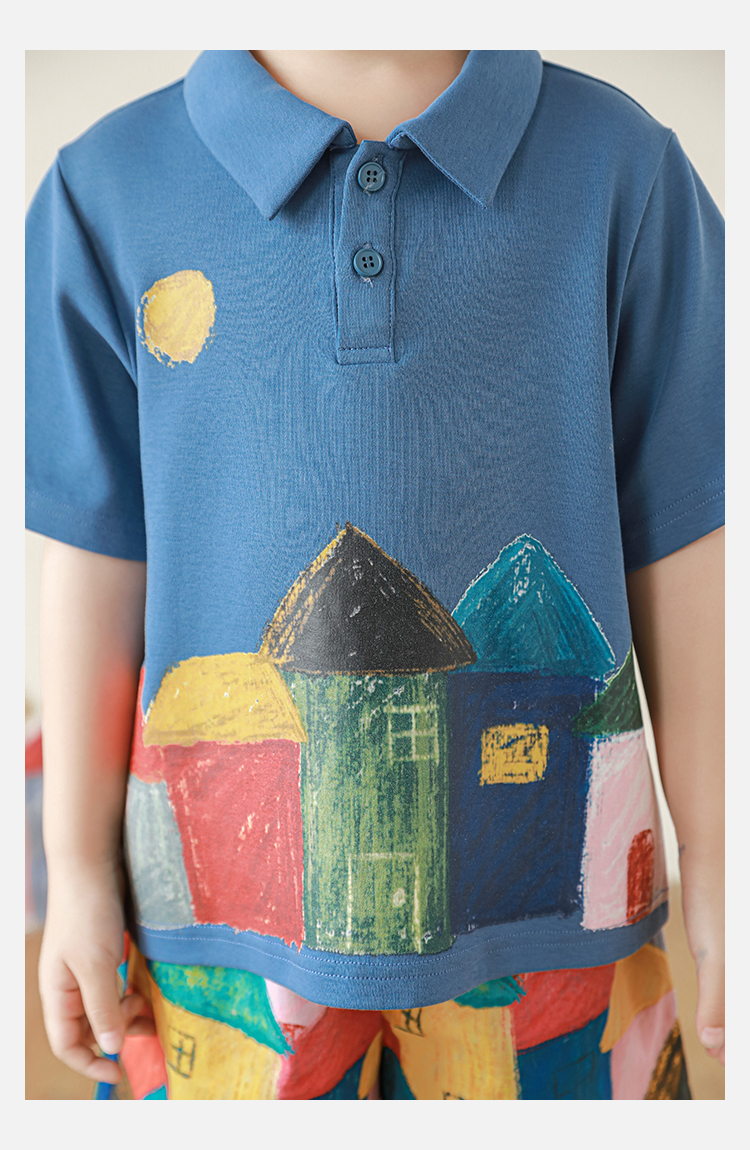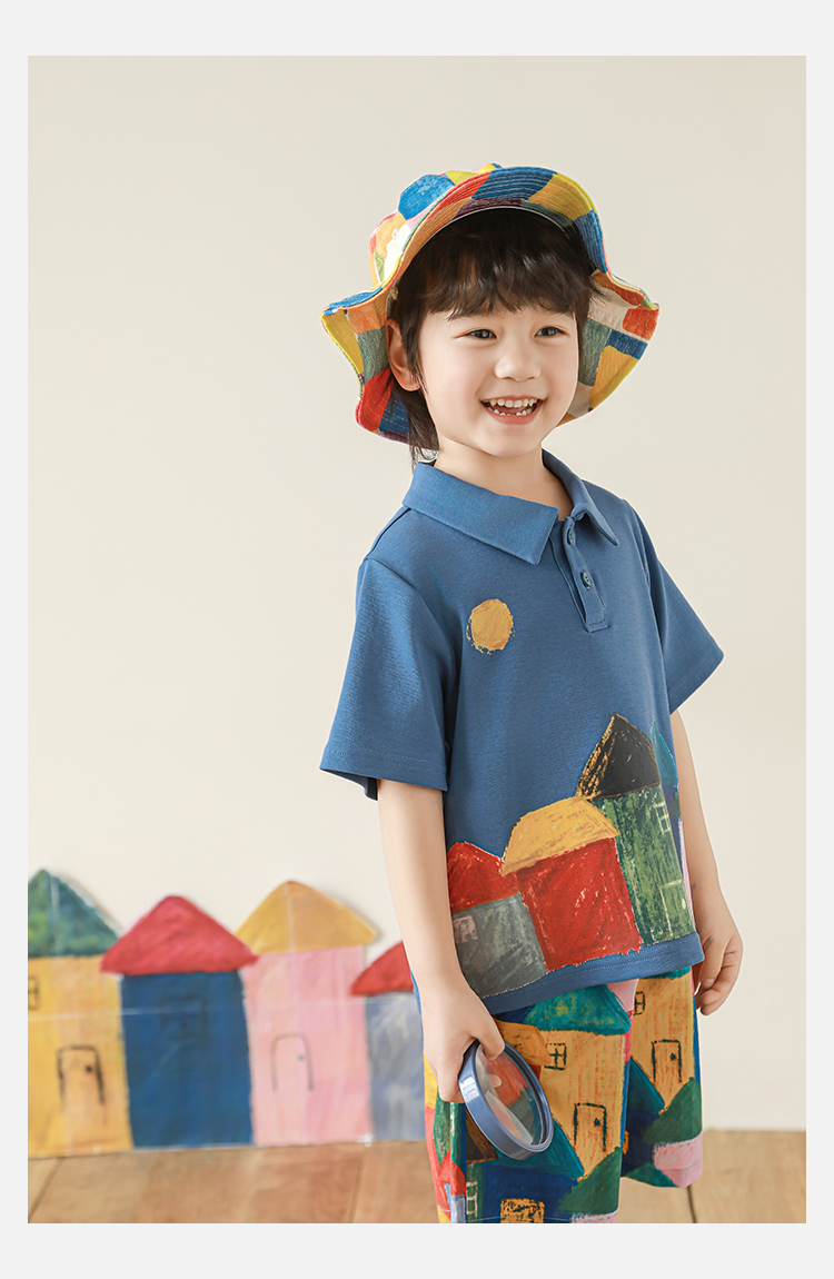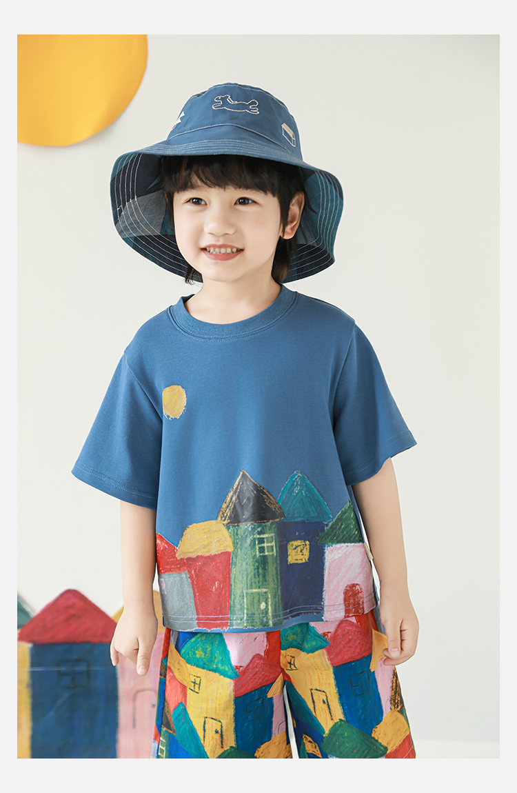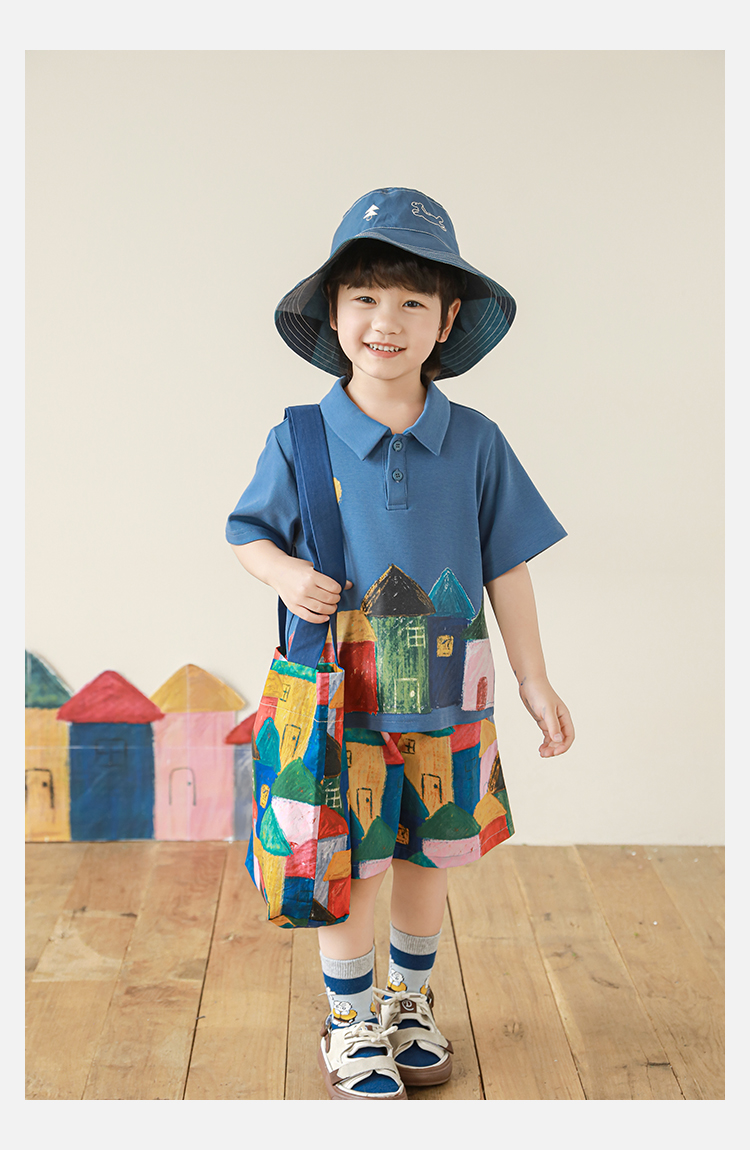 Wurib a 소년 여름 새로운 캐주얼 민소매 조끼 느슨한 반바지 밀물 세트 유화 마을