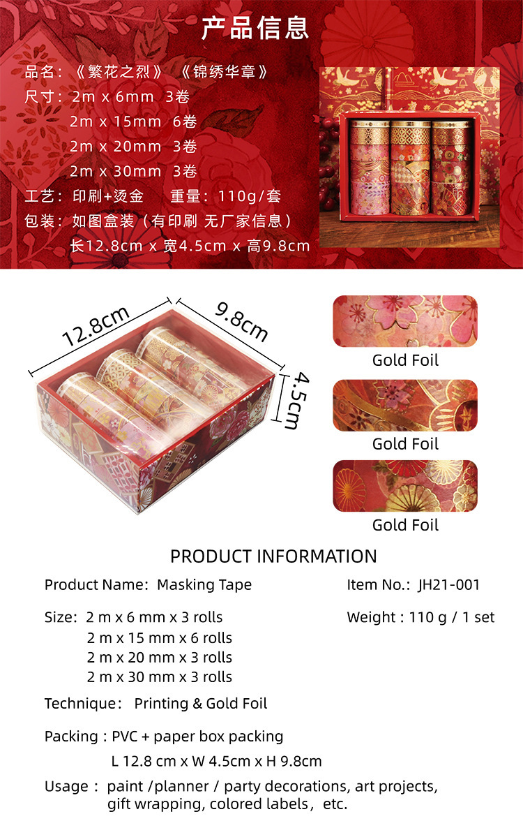 꽃과 화려한 핫 스탬핑 Washi 테이프 2M 골동품 꽃 계정 스티커 테이프 DIY 장식 도매