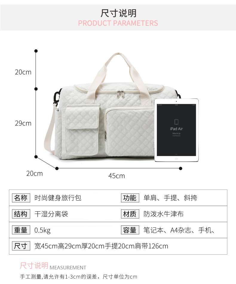 경량 피트니스 가방, 대용량 건식 및 습식 분리 수납 가방, 신발 수납 공간, 출산용 숄더백, 국경 간 여행 가방