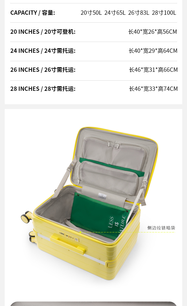 새로운 28inch 와이드 트롤리 가방 일체형 전면 오픈 커버 방폭형 지퍼 가방 알루미늄 프레임 케이스 세관 잠금 장치