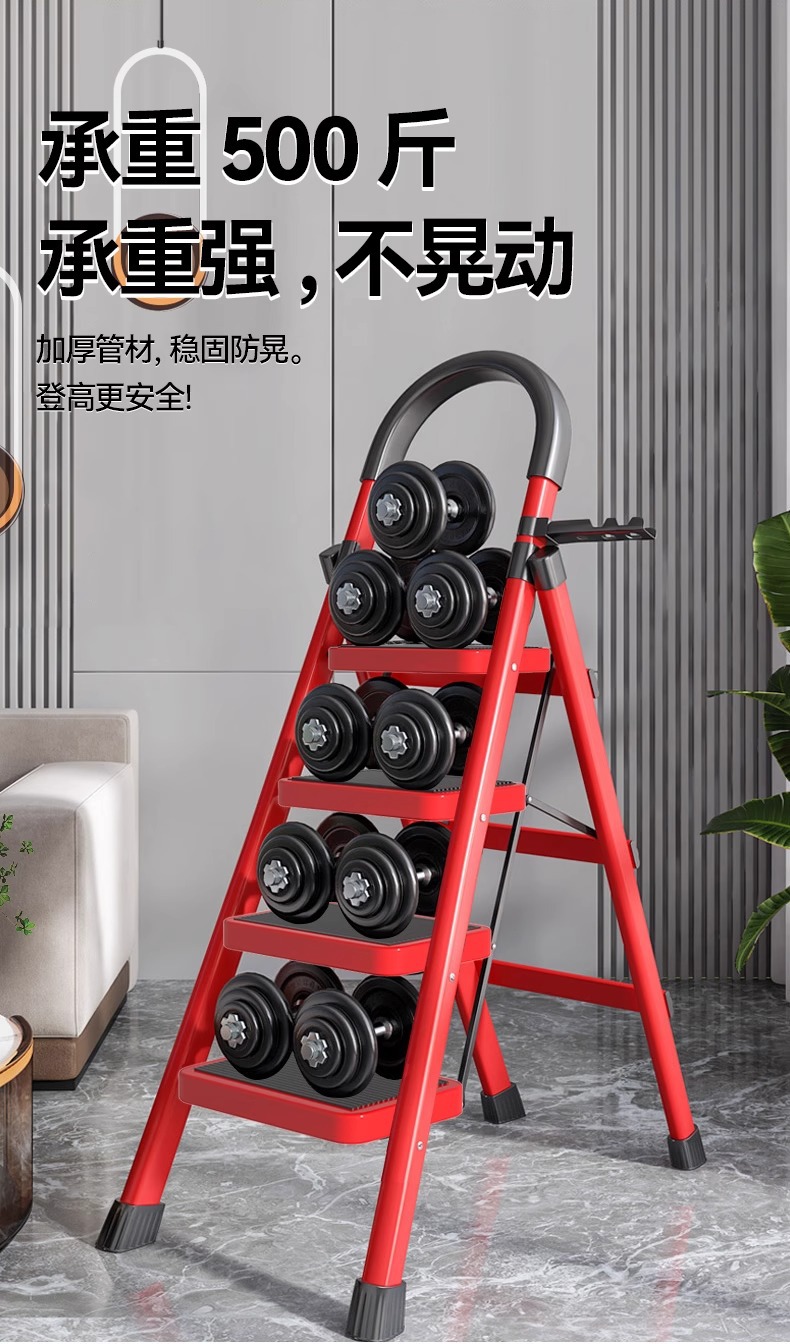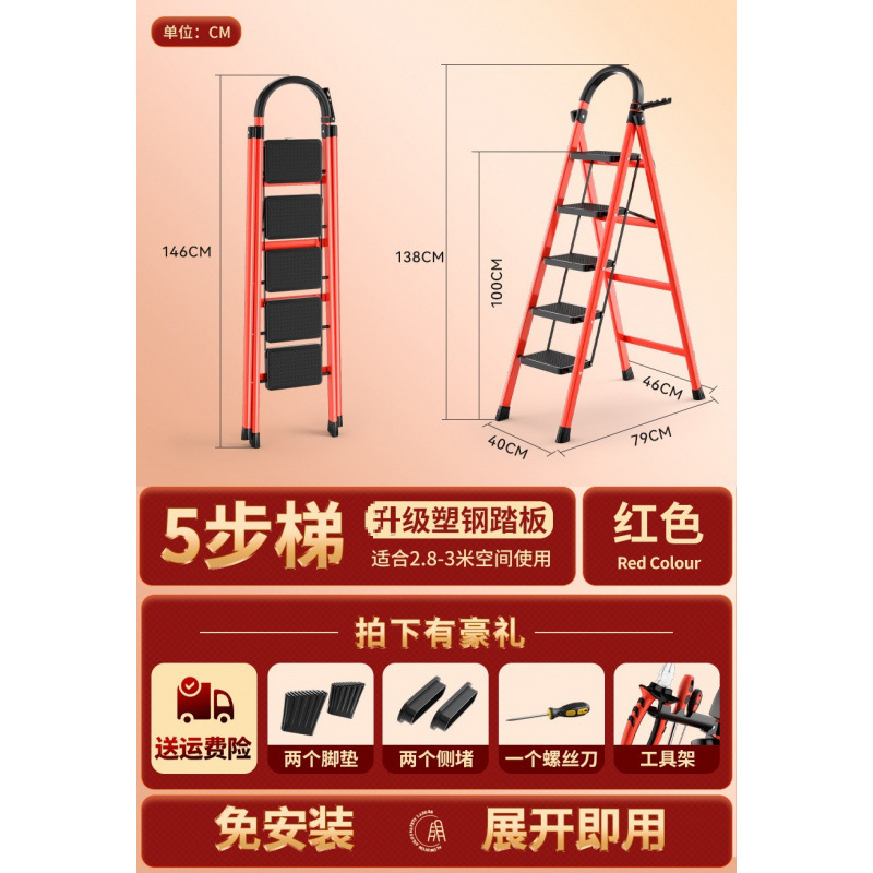 • 두꺼운 탄소강 [5단 사다리] 중국 빨간색 (안전 버클 포함) 플랫 헤드