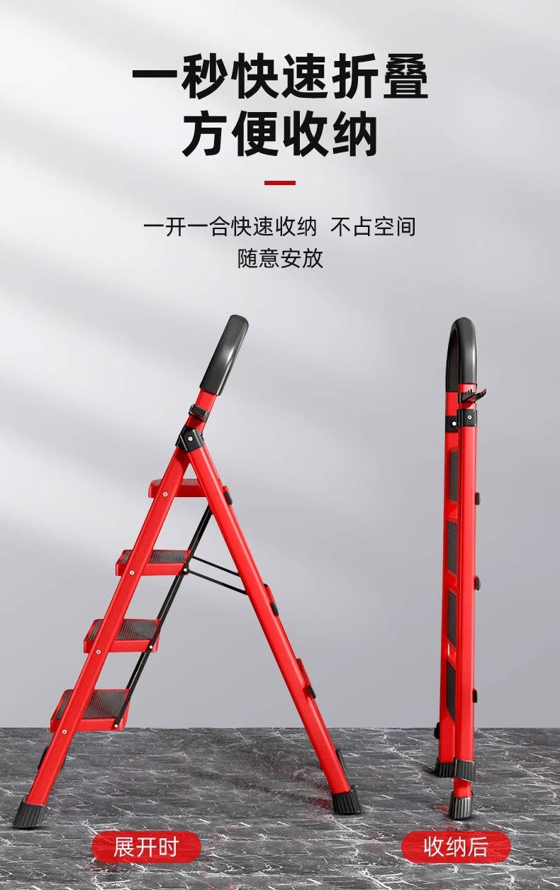 • 두꺼운 탄소강 [4단 사다리] 중국 빨간색 (안전 버클 포함) 플랫 헤드