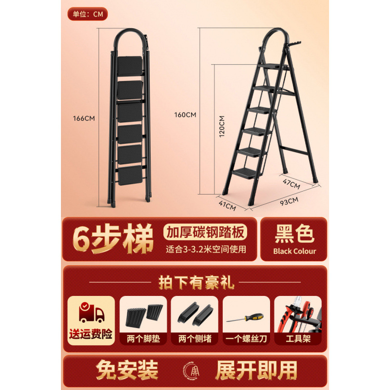 • [야오얀 블랙] 두꺼운 탄소강 [5단 사다리] (안전 버클 포함) 플랫 헤드