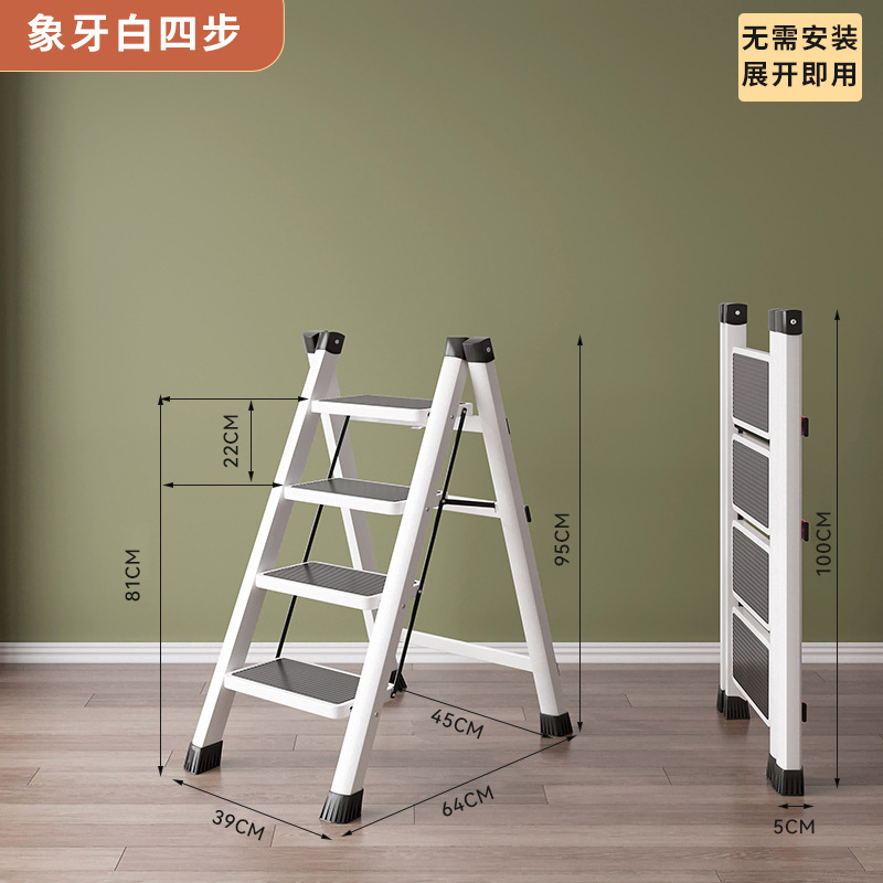 • [아이보리 화이트] 두꺼운 탄소강 [4단 사다리] (안전 버클 포함) 플랫 헤드