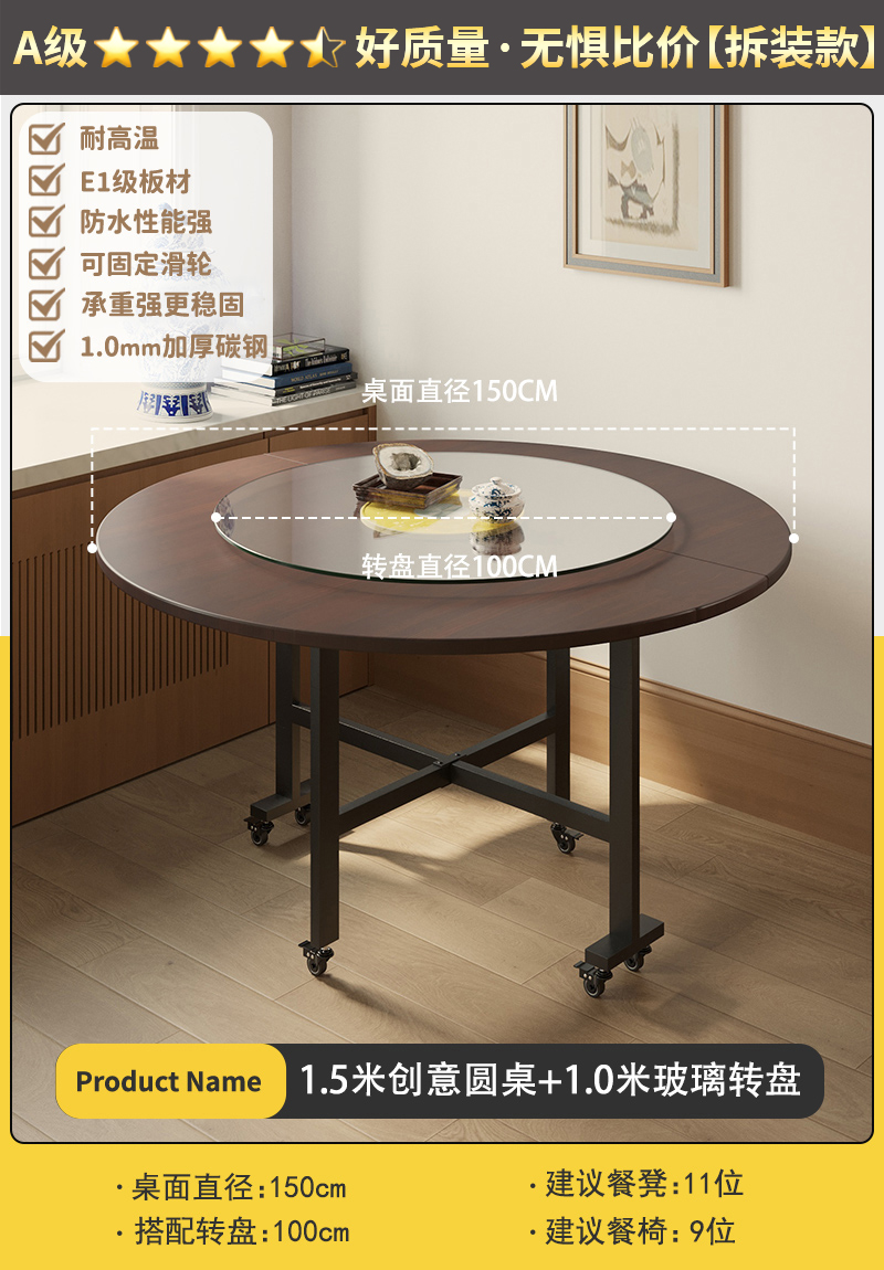 • ♀ ♀ ♀ "κκκ ""분해 모델"" 1.5m [검은 호두나무 접이식 대형 원형 테이블] 〃클래식하고 다재다능하며 앉을 수 있음" ♀ ♀ ♀ κκκ