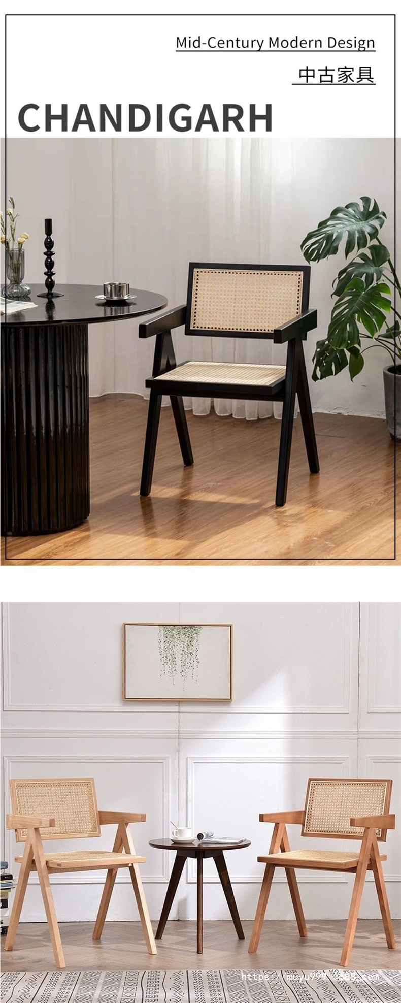 찬디가르 의자 북유럽 단단한 나무 등나무 의자 홈 인터넷 연예인 와비사비 스타일 등받이 의자 홈 다이닝 의자 티 의자스토어 가기