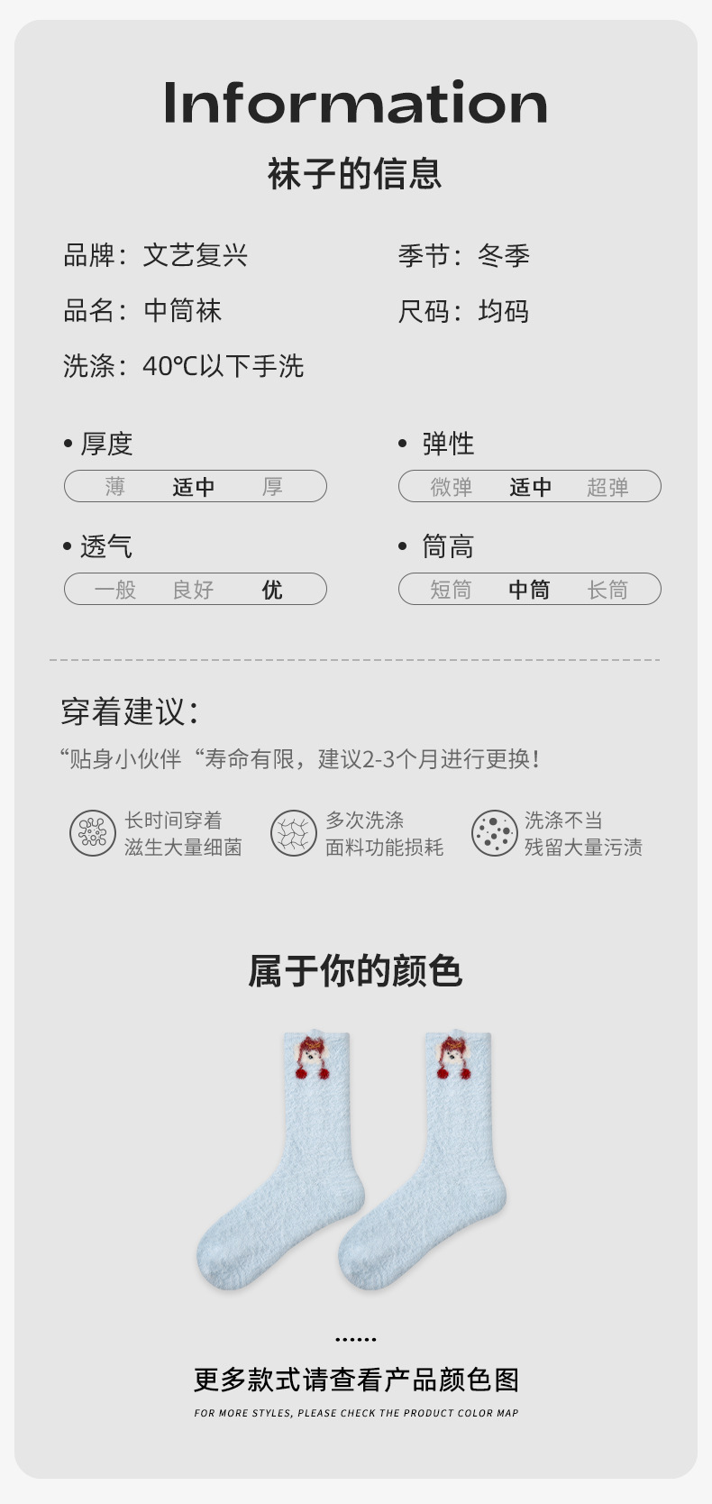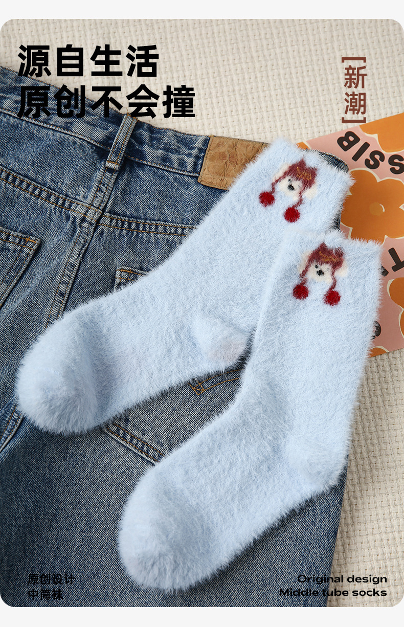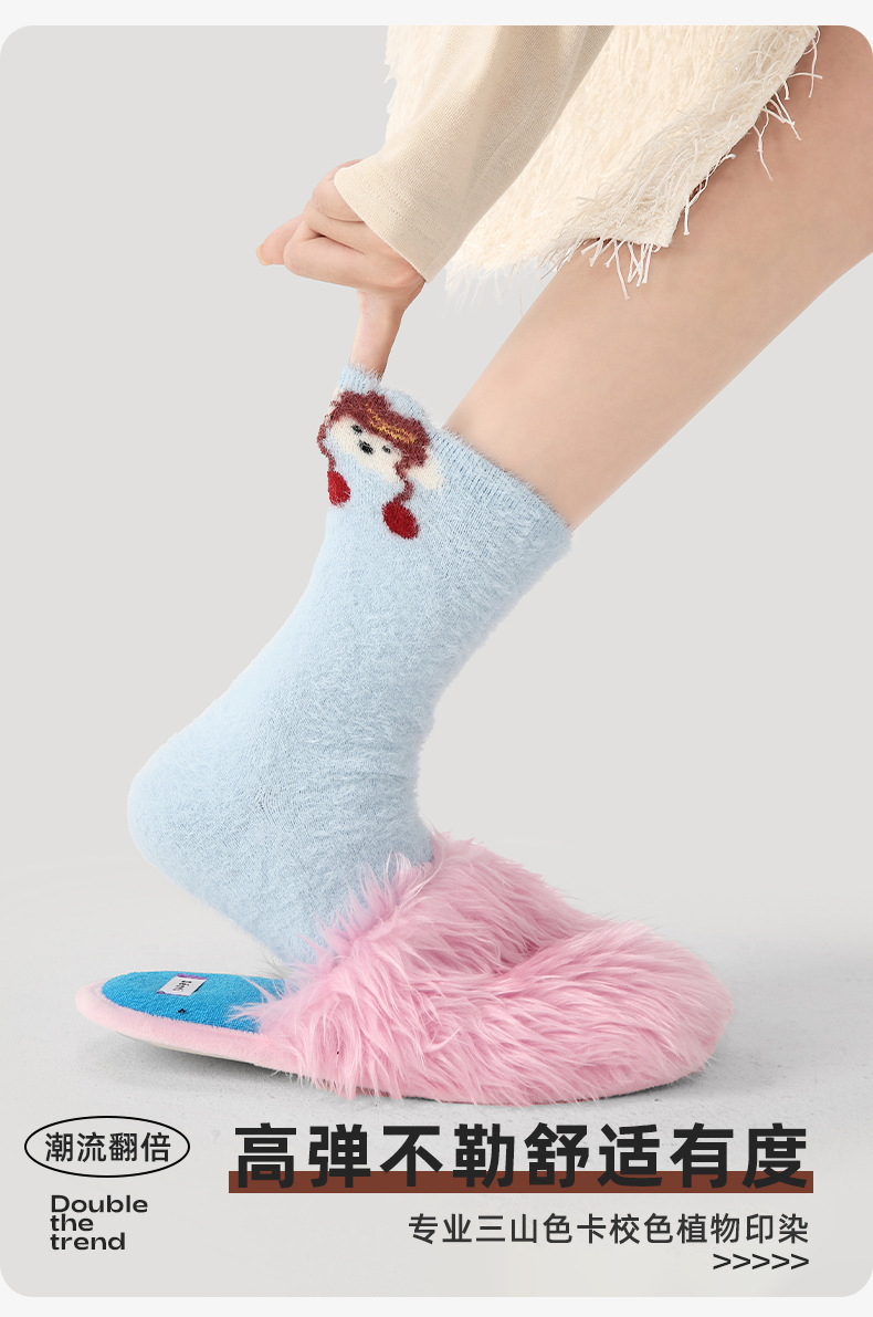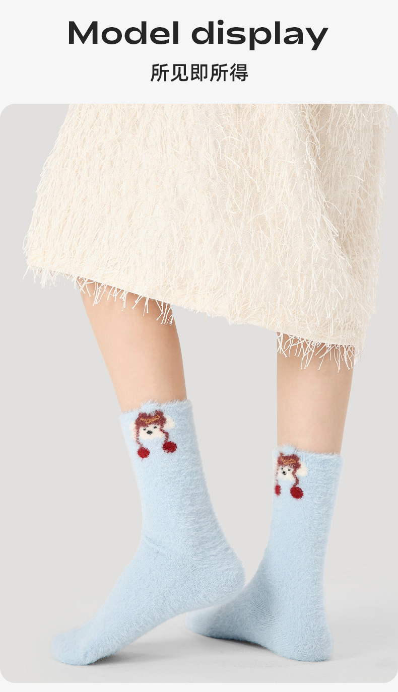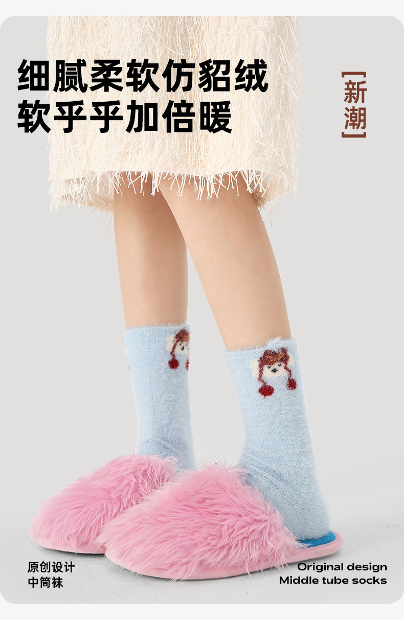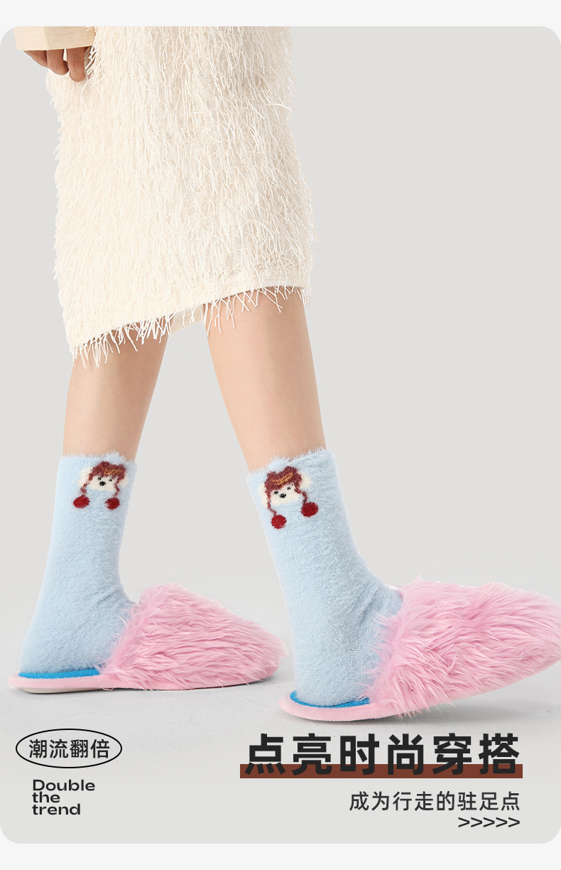 르네상스 오리지널 벨벳 두꺼운 가을, 겨울 달콤한 기능 트렌디한 강아지 모조 밍크 벨벳 여성용 종아리 양말스토어 가기