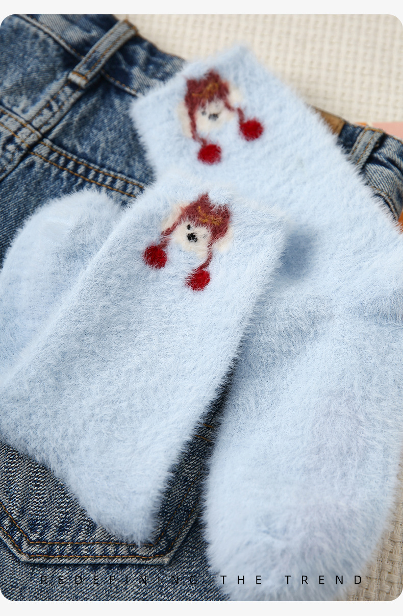 르네상스 오리지널 벨벳 두꺼운 가을, 겨울 달콤한 기능 트렌디한 강아지 모조 밍크 벨벳 여성용 종아리 양말
