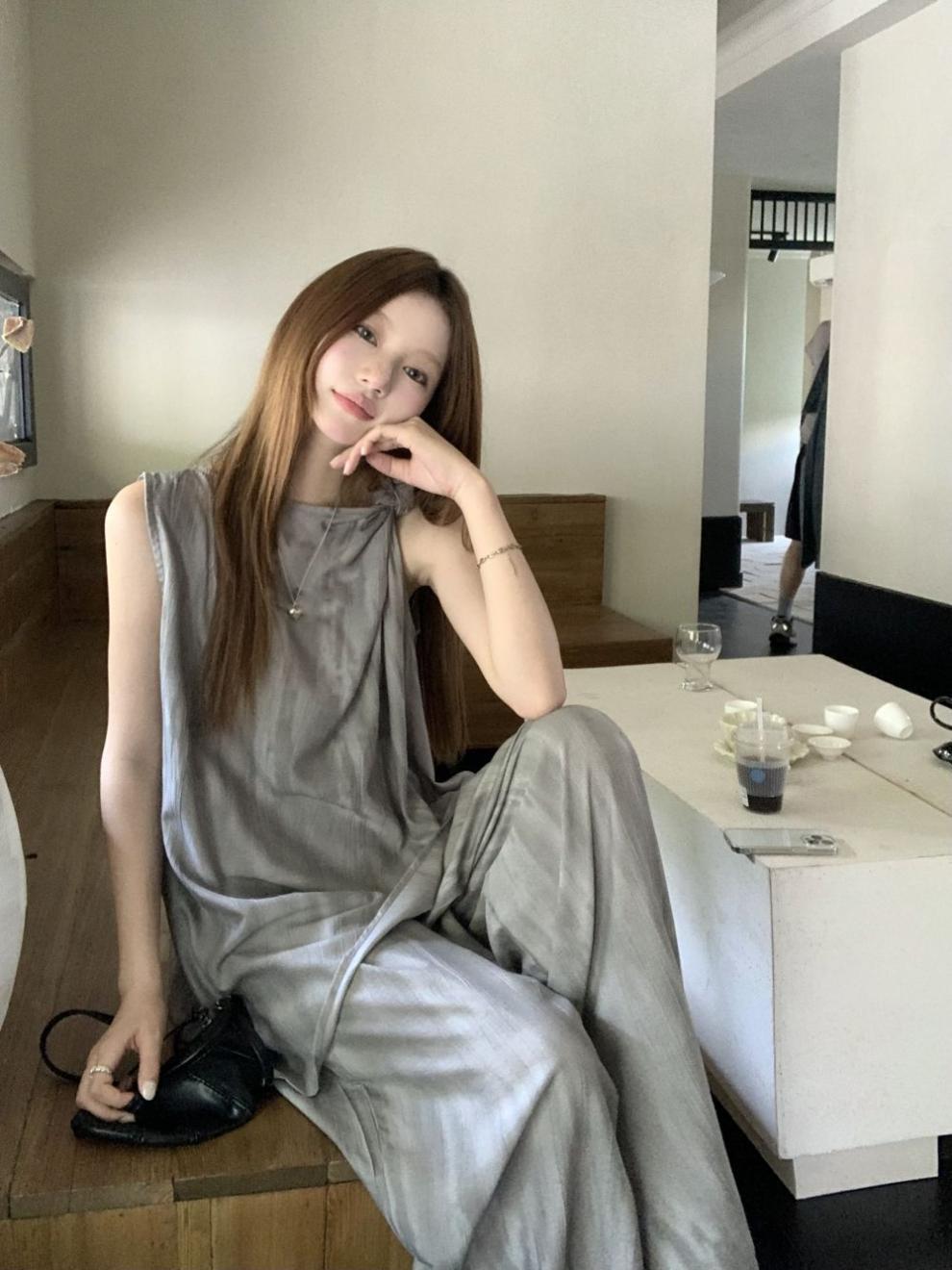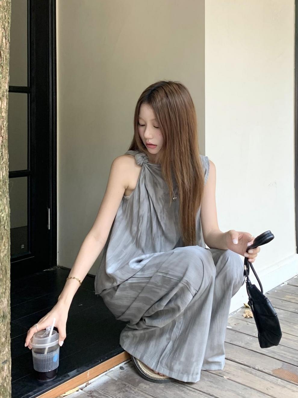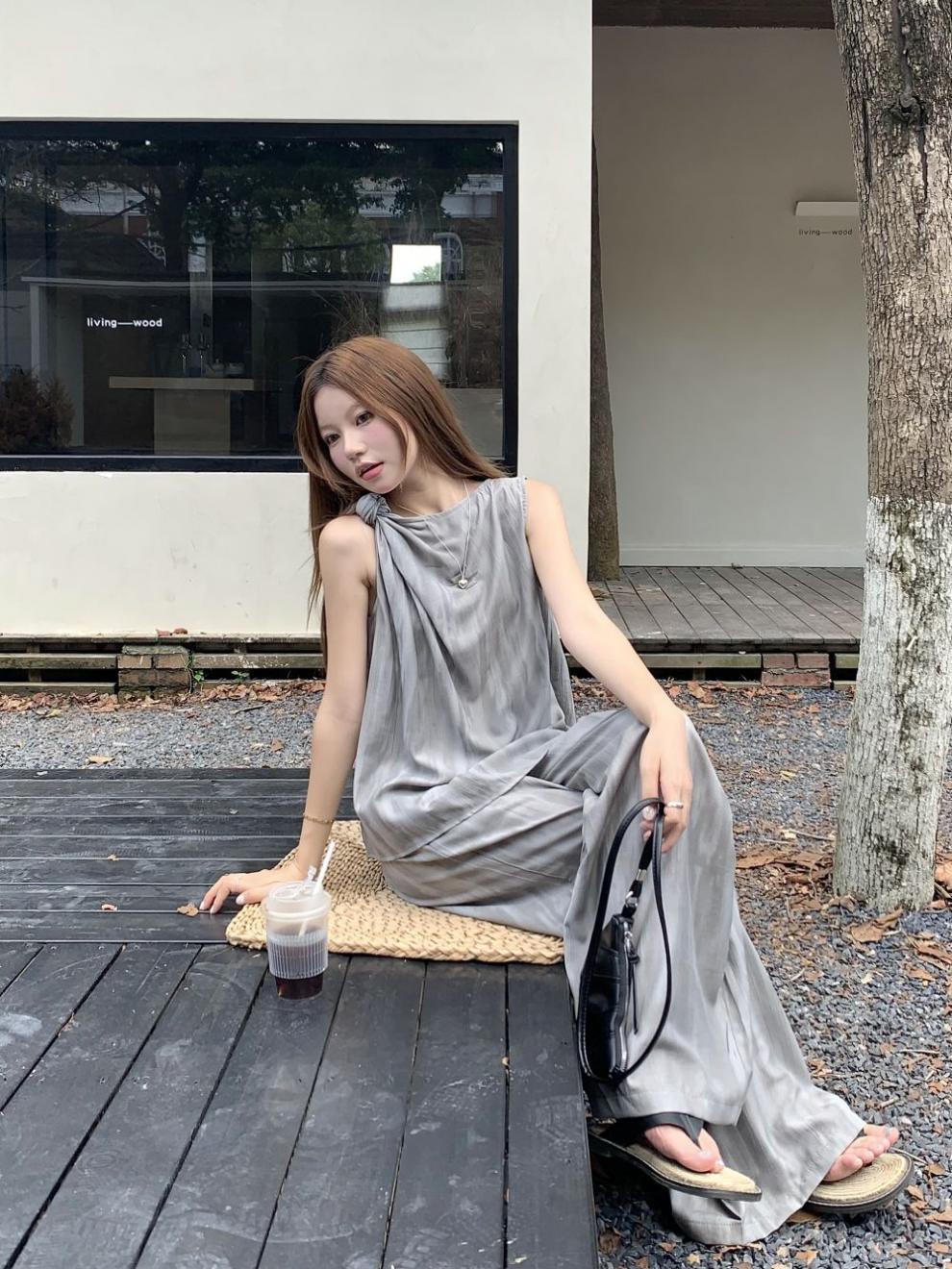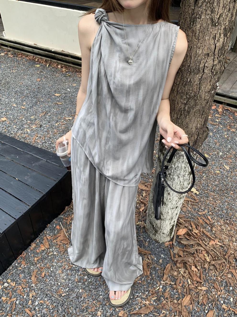 2025년 신상 여름 루즈웨어, 부드러운 새로운 불규칙 민소매 탑과 와이드 팬츠 투피스 세트 여성용스토어 가기