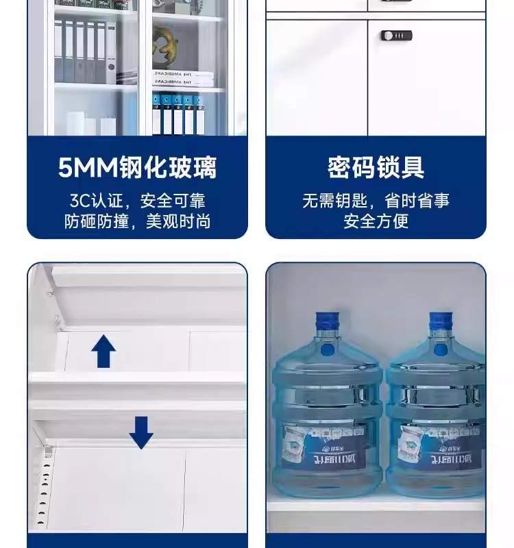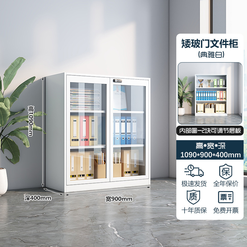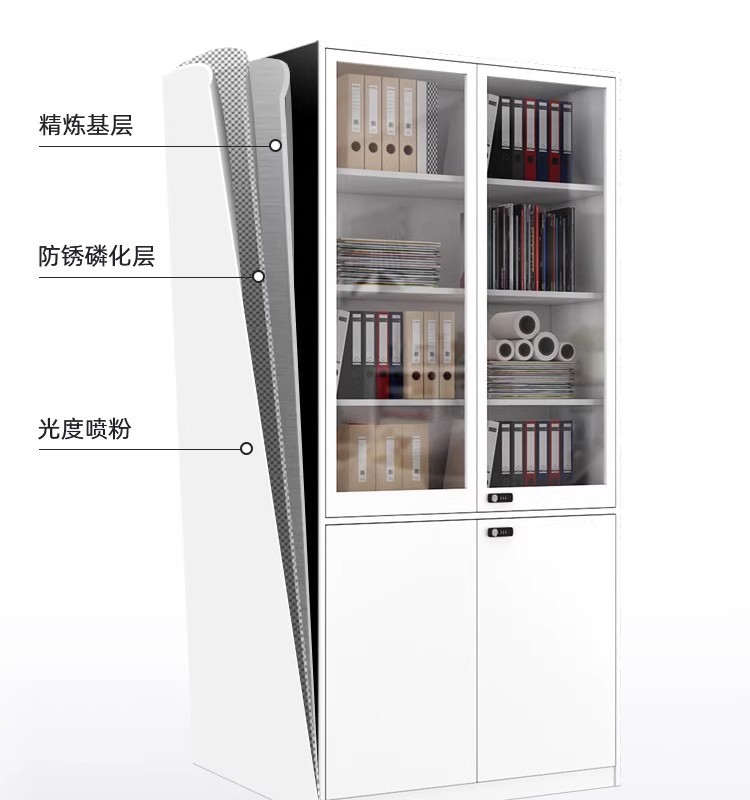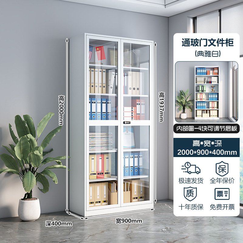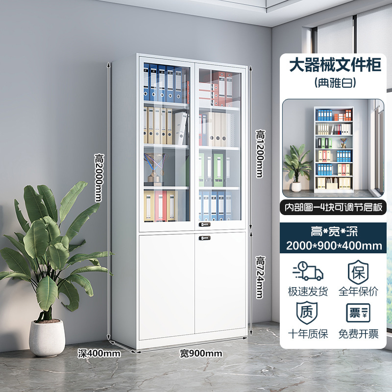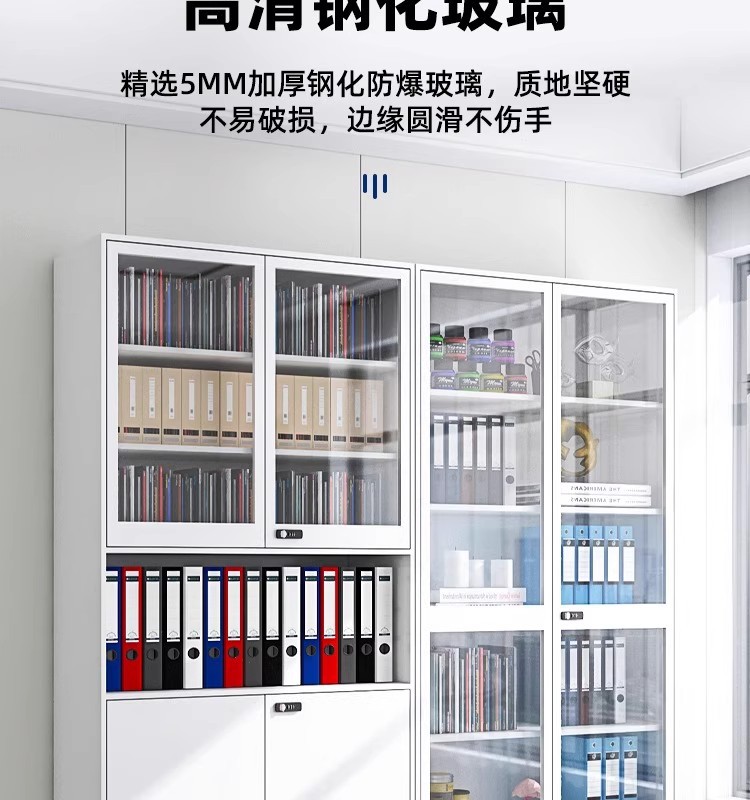 • 2m 하이 화이트 상부 유리 하부 철 파일 캐비닛