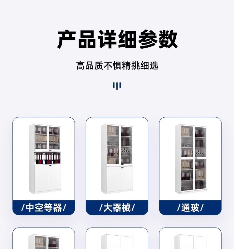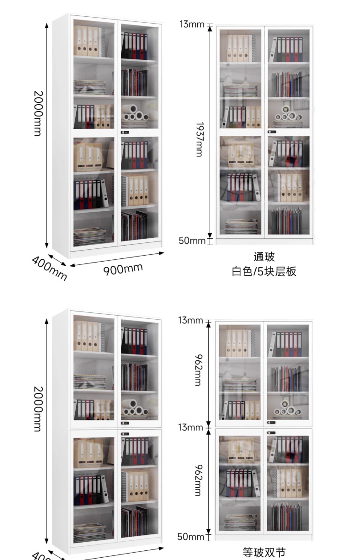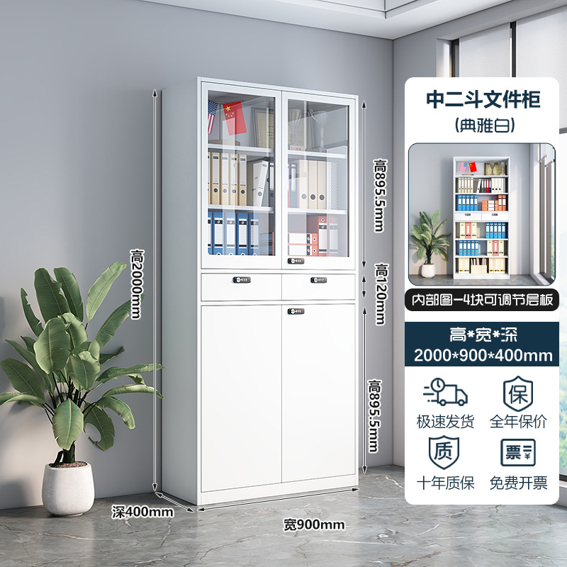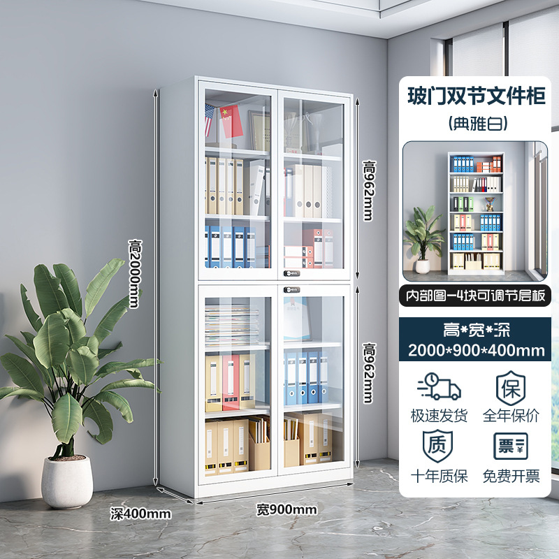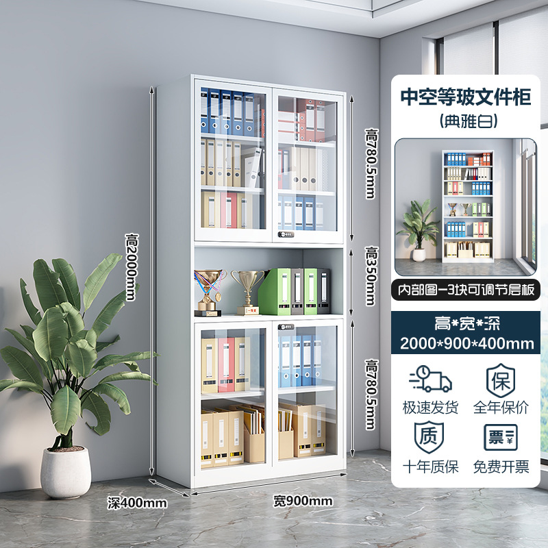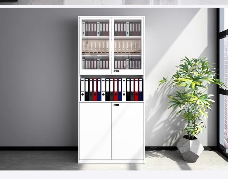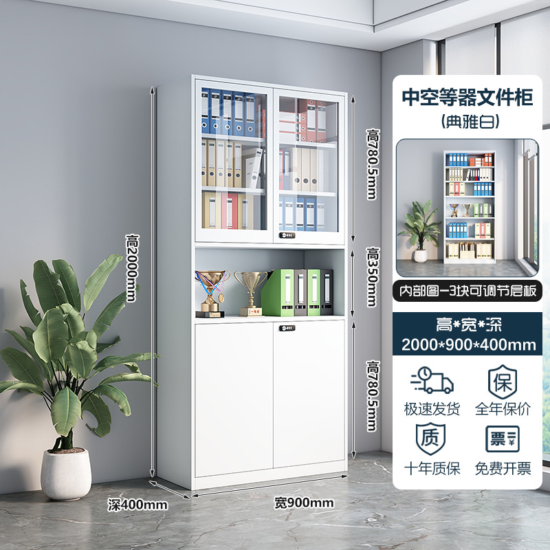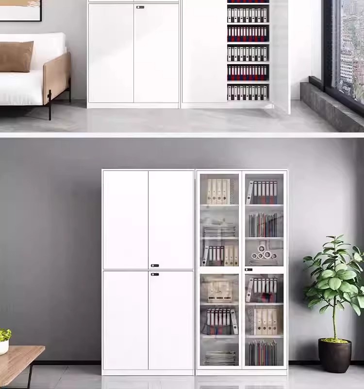 • 2m 높은 흰색 중공 상단 및 하단 이중 섹션 유리 도어 파일 캐비닛
