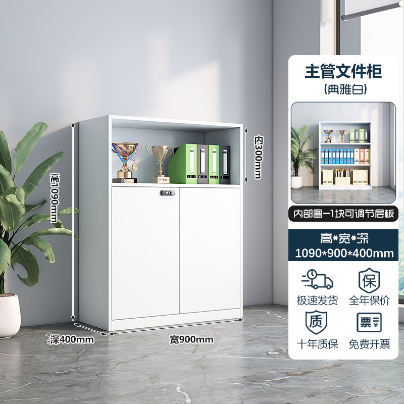 • 1.09m 하이 화이트 폴리오 철제 도어 로우 캐비닛
