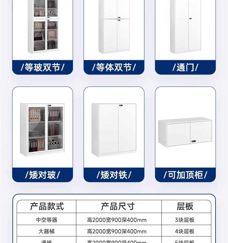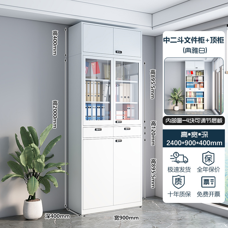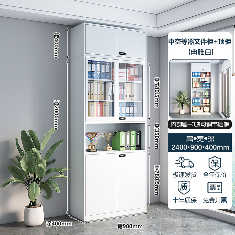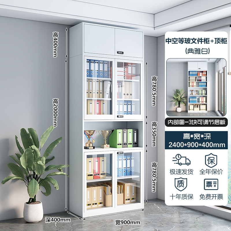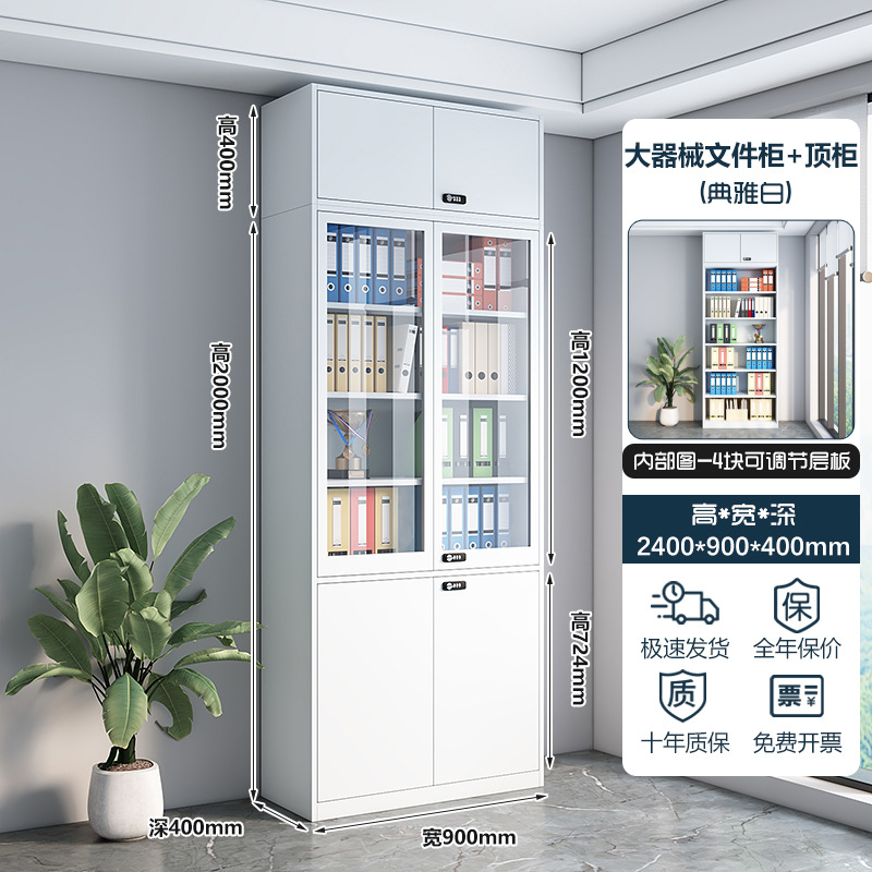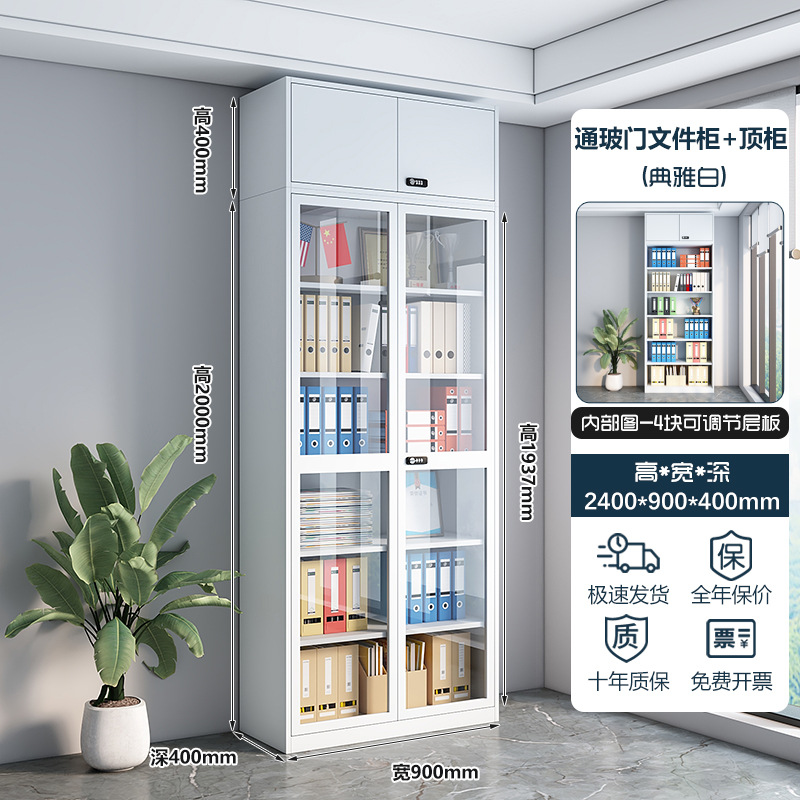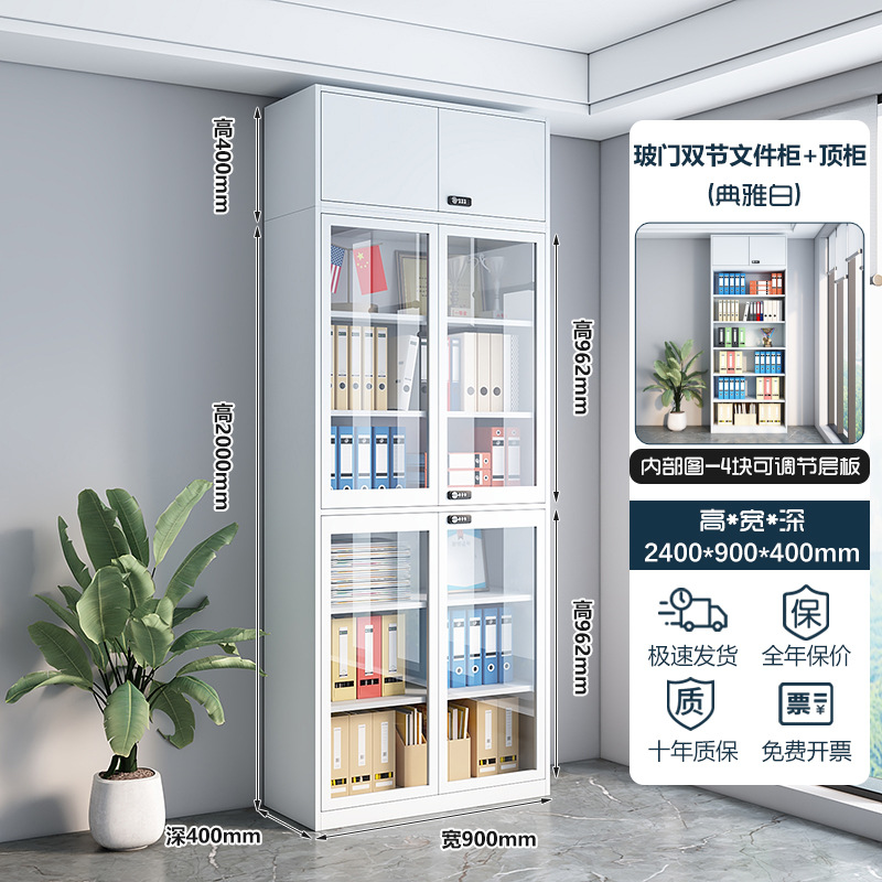 • 2.4m 하이 화이트 상하 분할 유리 파일 캐비닛 + 상단 캐비닛