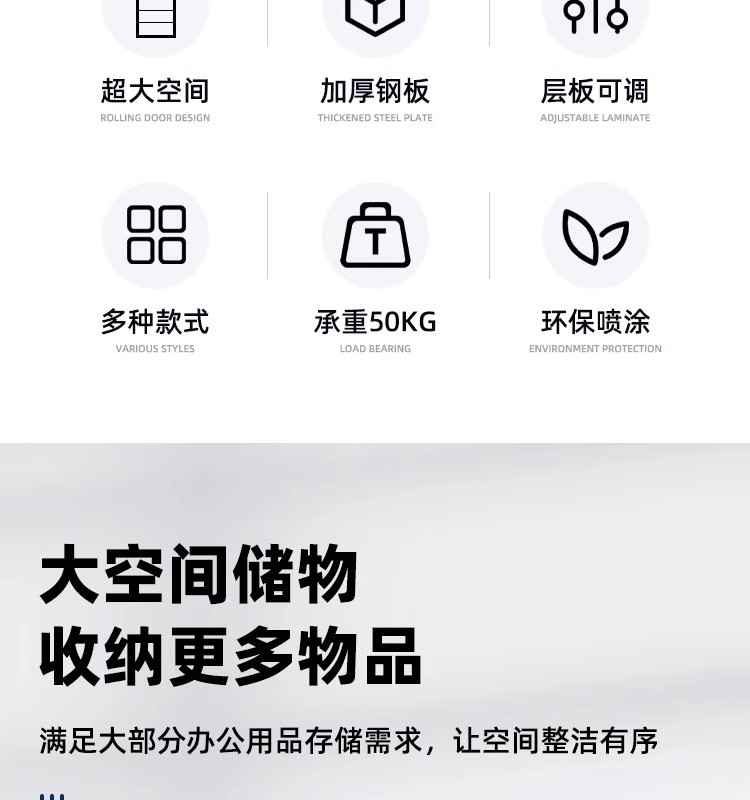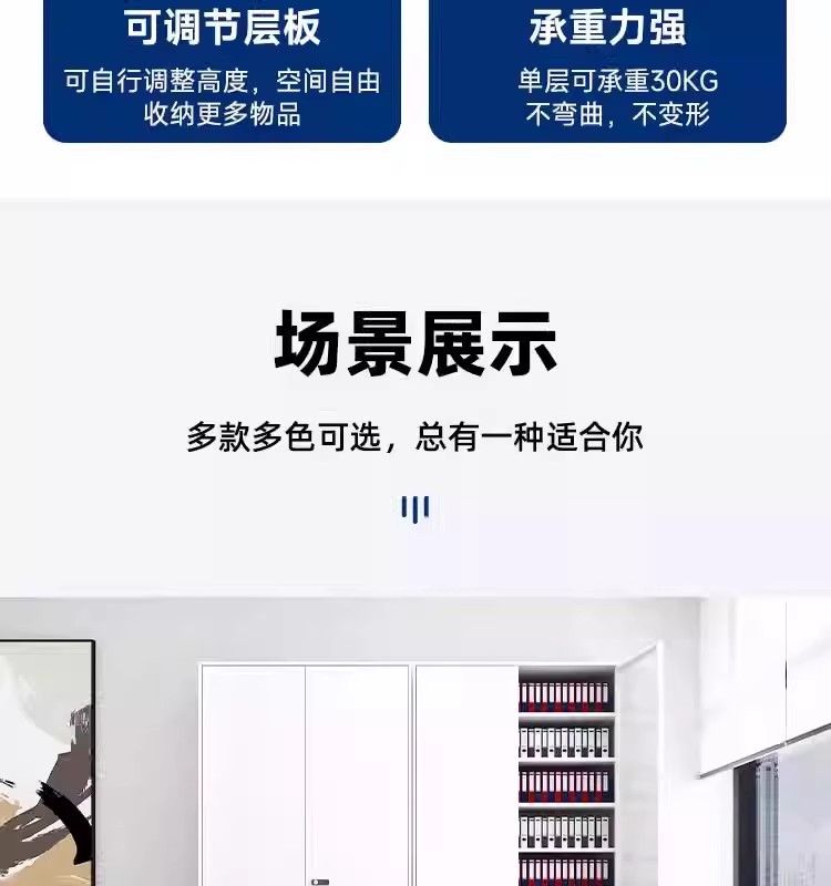 • 2.4m 하이 화이트 더블 섹션 철문 파일 캐비닛 + 상단 캐비닛