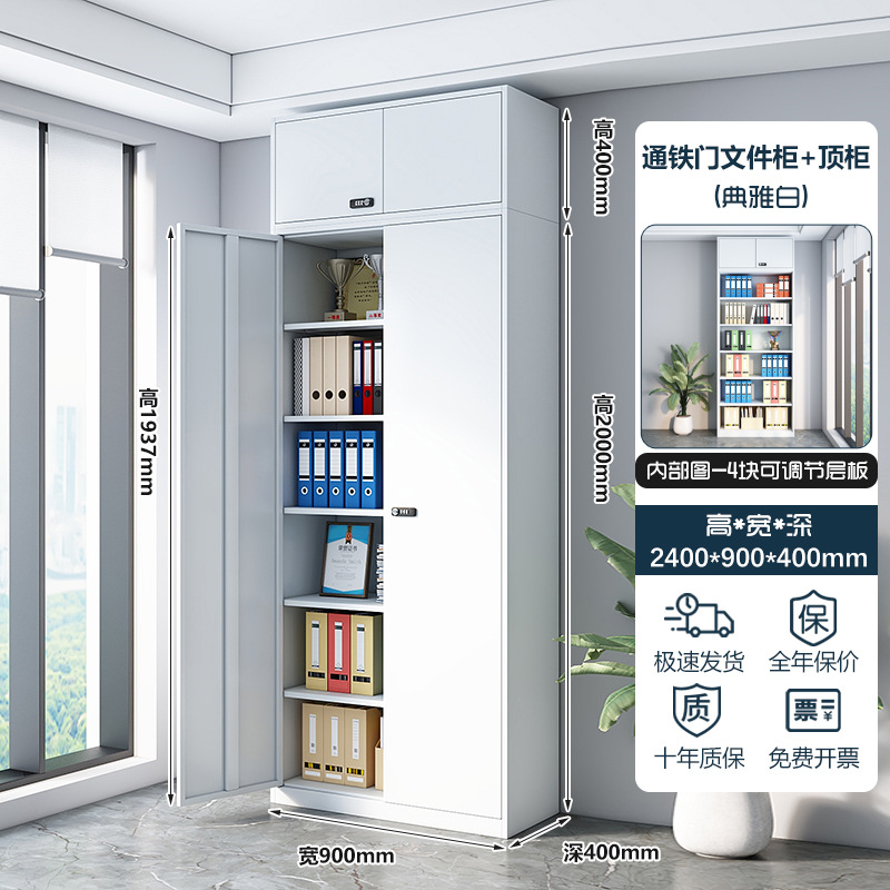 • 2.4m 하이 화이트 철제 도어 폴리오 파일 캐비닛 + 상단 캐비닛