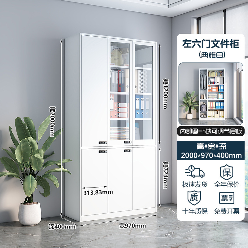 • 2m 하이 화이트 왼쪽 6도어 파일 캐비닛