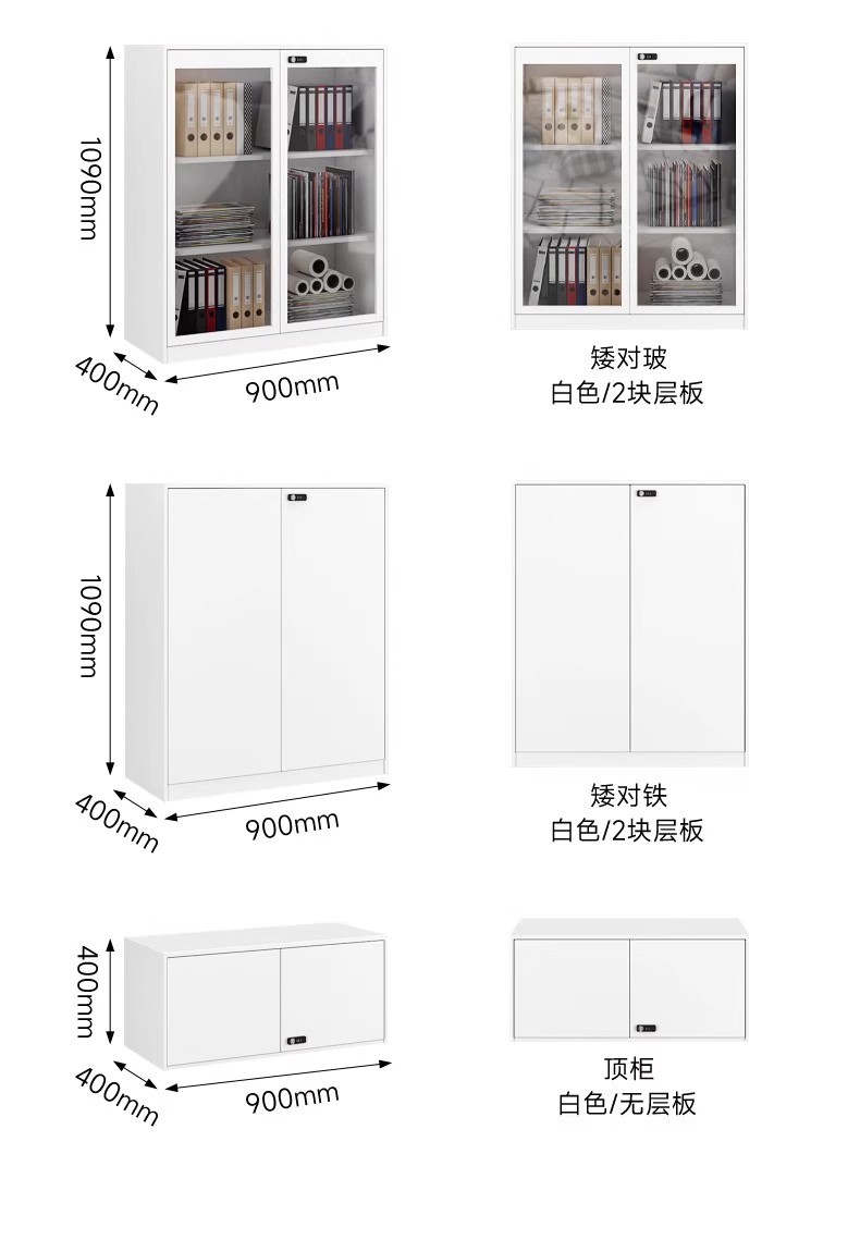 • 2m 높은 흰색 중공 유리 문과 철 문 파일 캐비닛