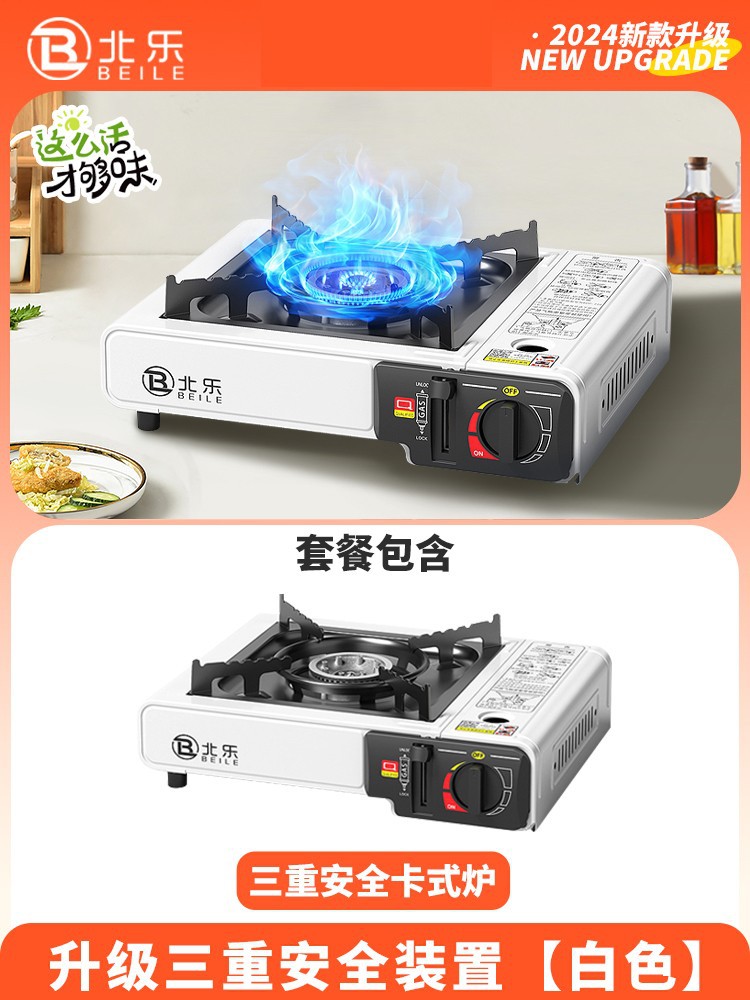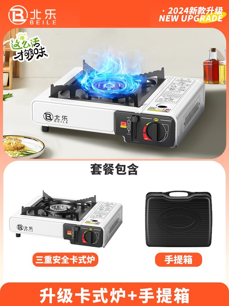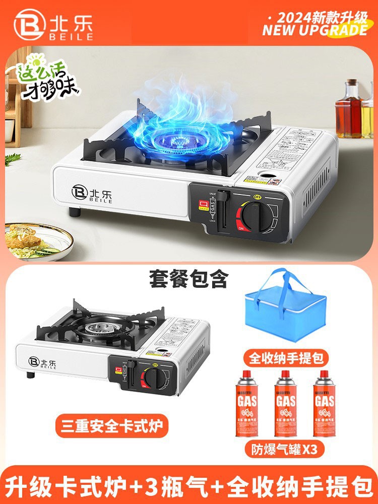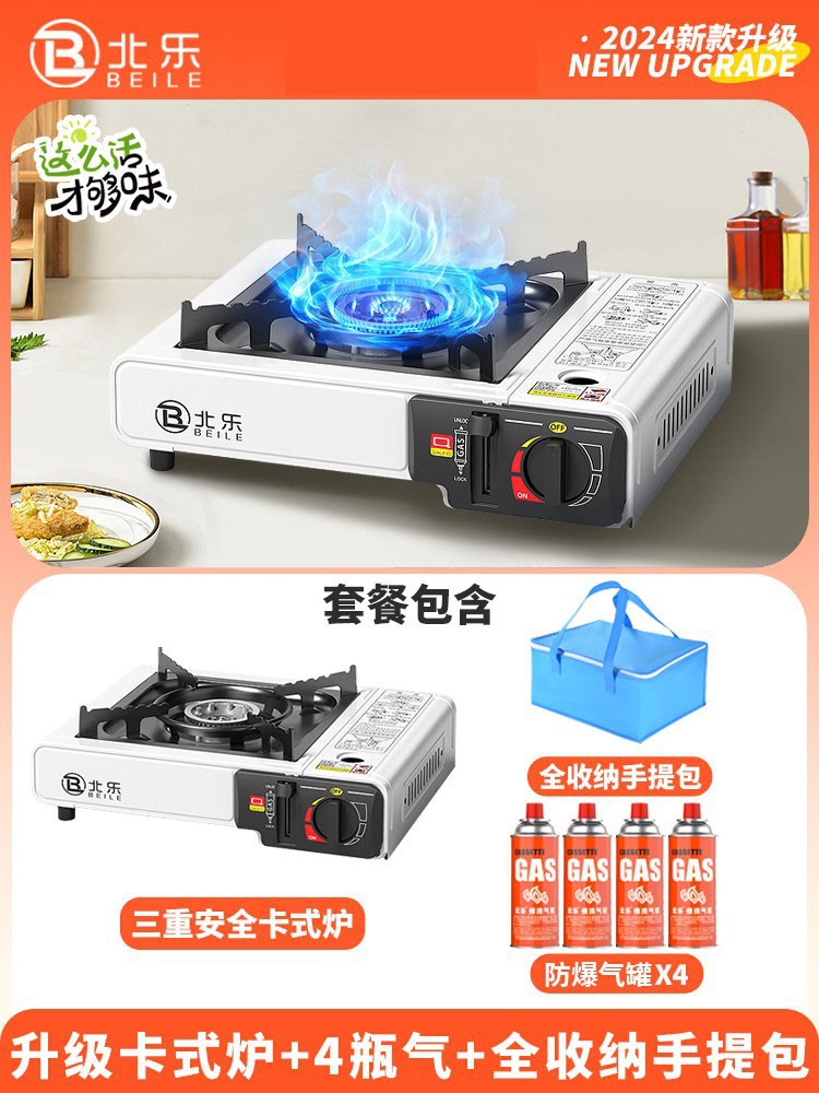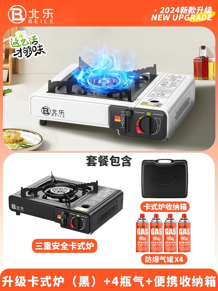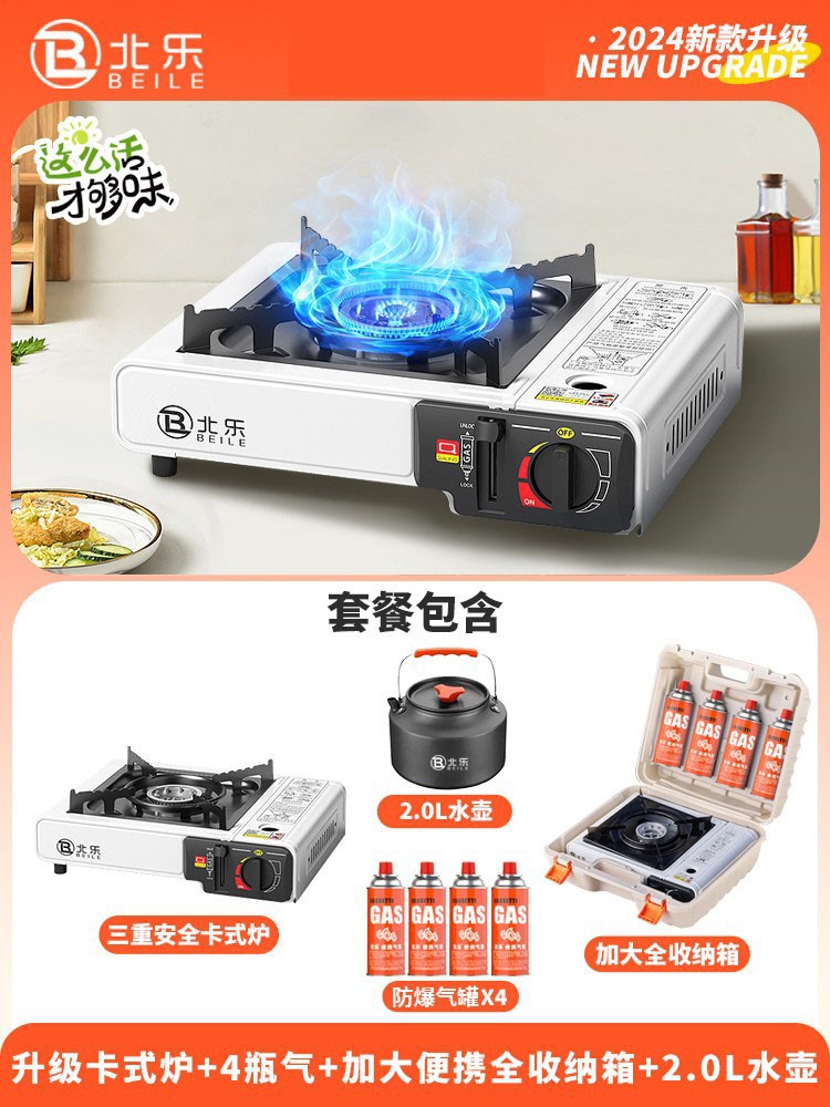 • 업그레이드된 카세트 스토브 + 가스 4병 + 대형 휴대용 풀 수납함 + 인터넷 연예인 나무 손잡이 베이킹 팬(무료 가위 + 클립)