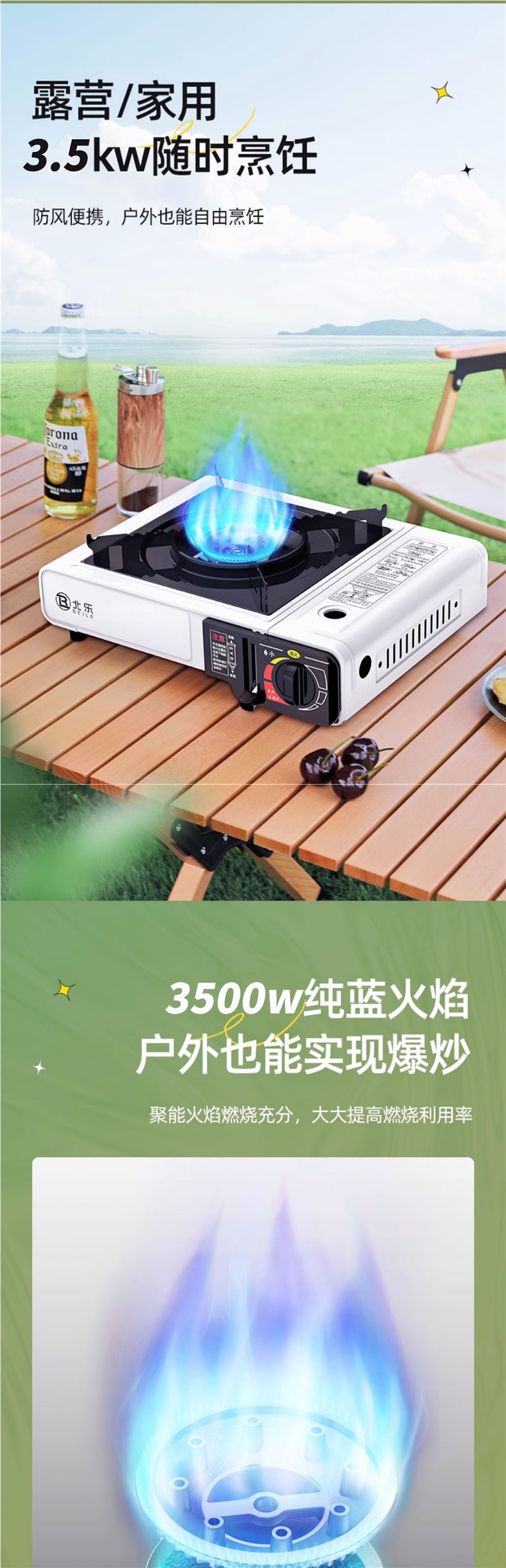 • 업그레이드된 카세트 스토브 + 가스 4병 + 대형 휴대용 풀 수납함 + 인터넷 연예인 나무 손잡이 베이킹 팬 + 앞유리(무료 가위 + 클립)