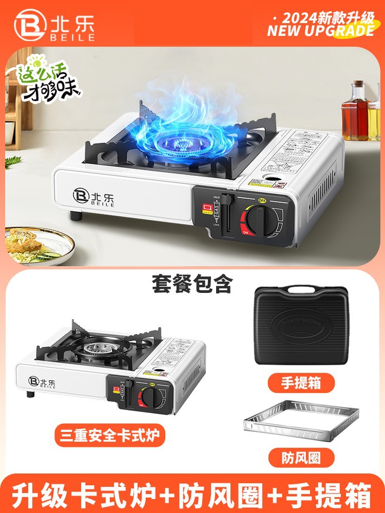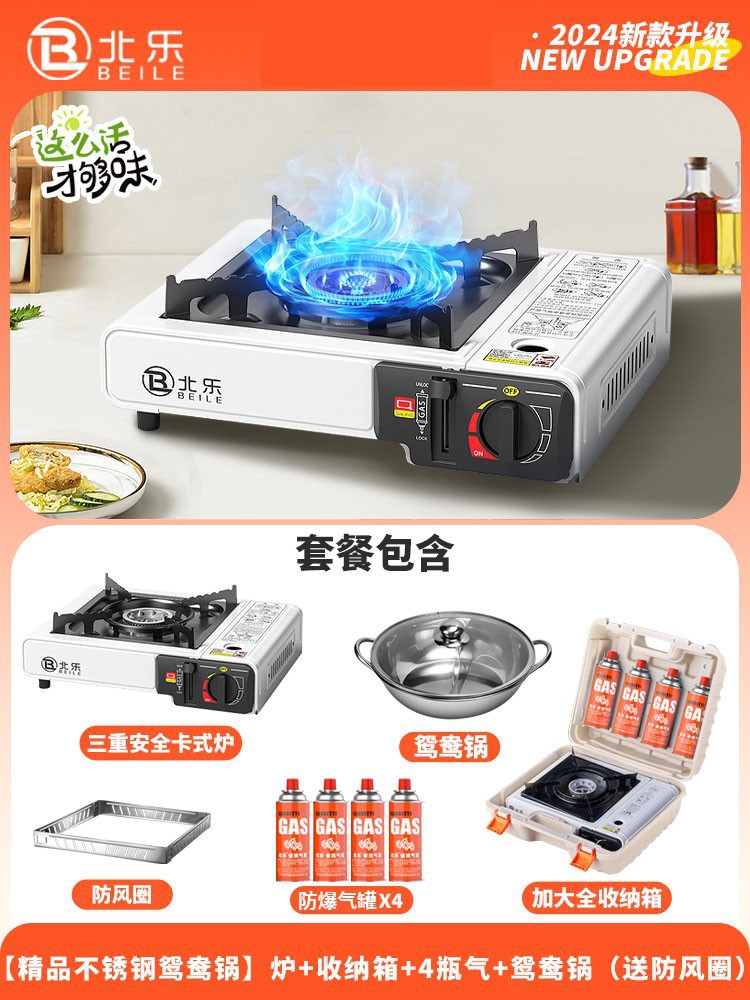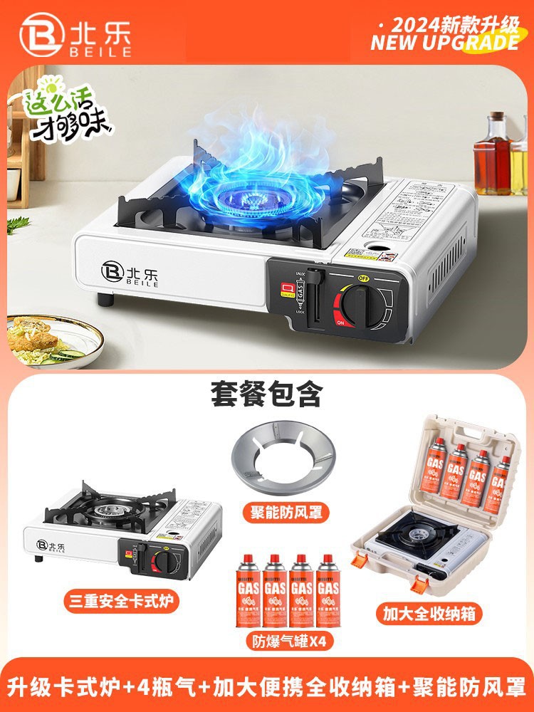 • 업그레이드된 카세트 스토브 + 가스 4병 + 대형 휴대용 풀 수납함 + 에너지 수집 방풍 커버
