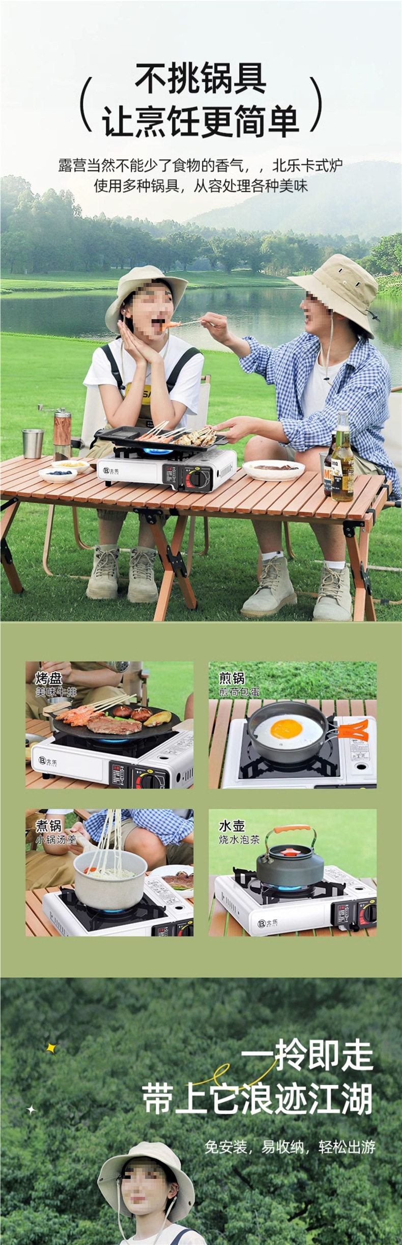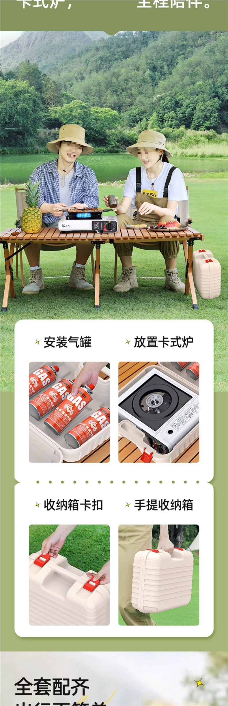 • 업그레이드된 카세트 스토브 + 가스 4병 + 대형 휴대용 풀 수납함 + 1.6L 주전자