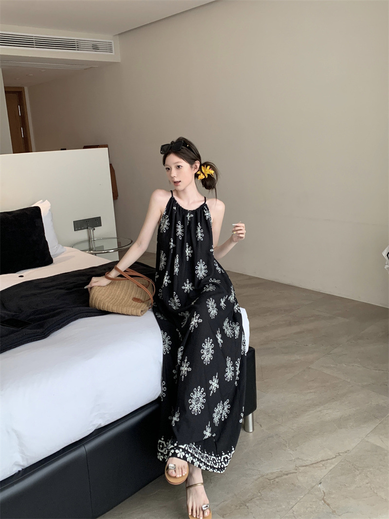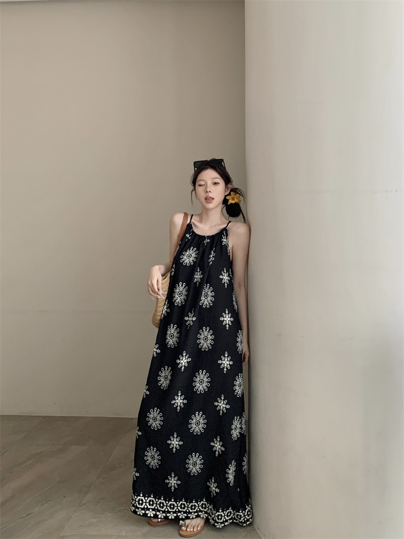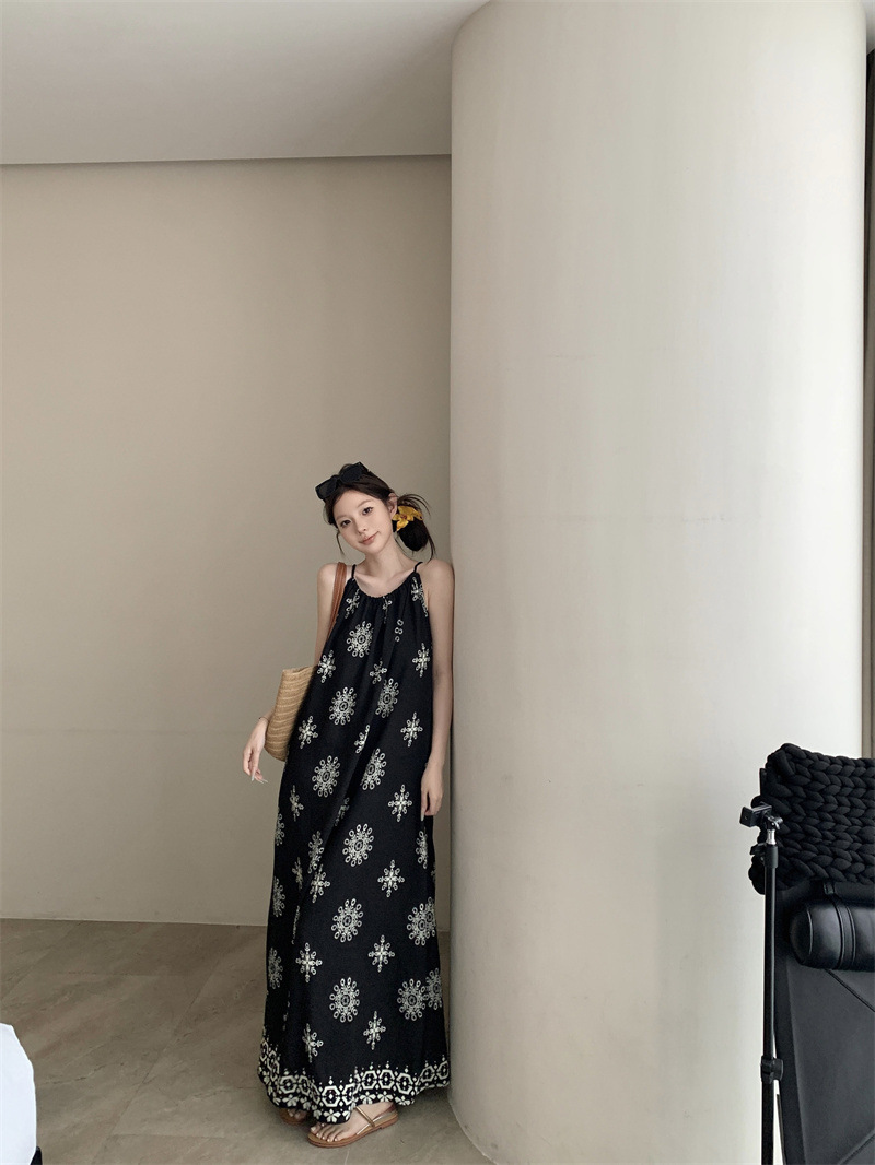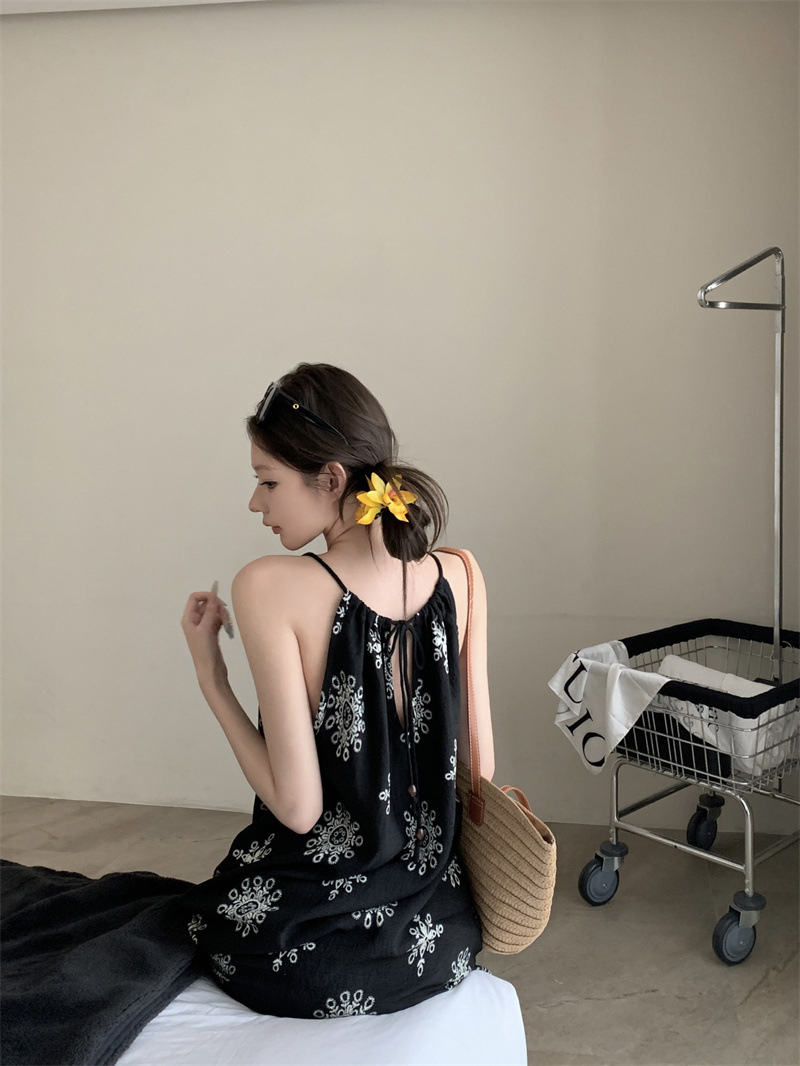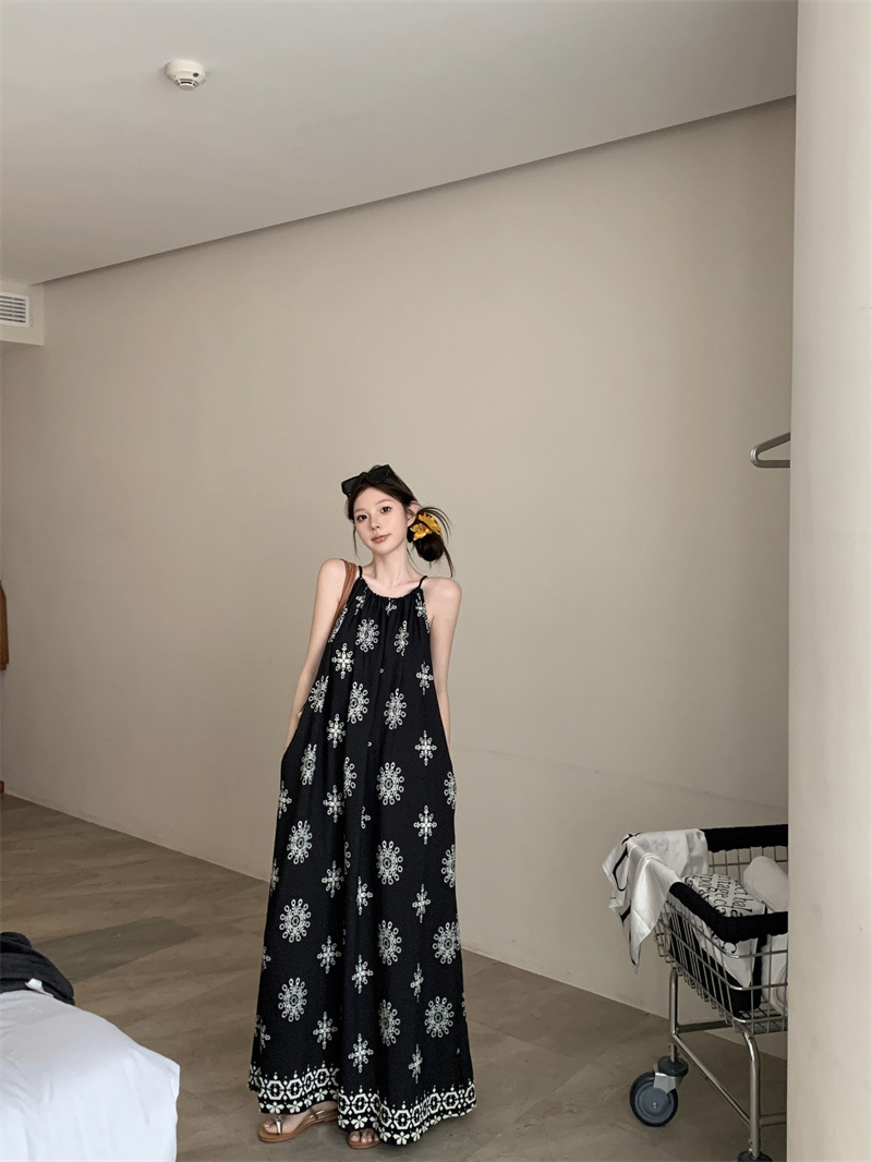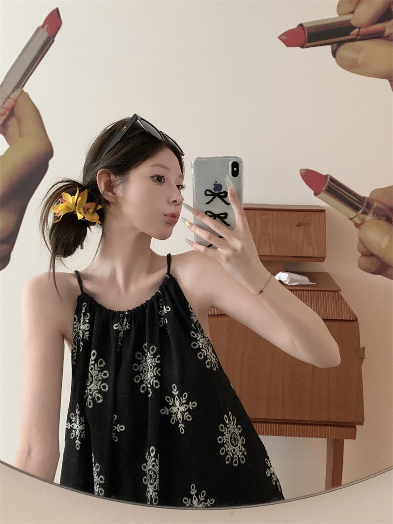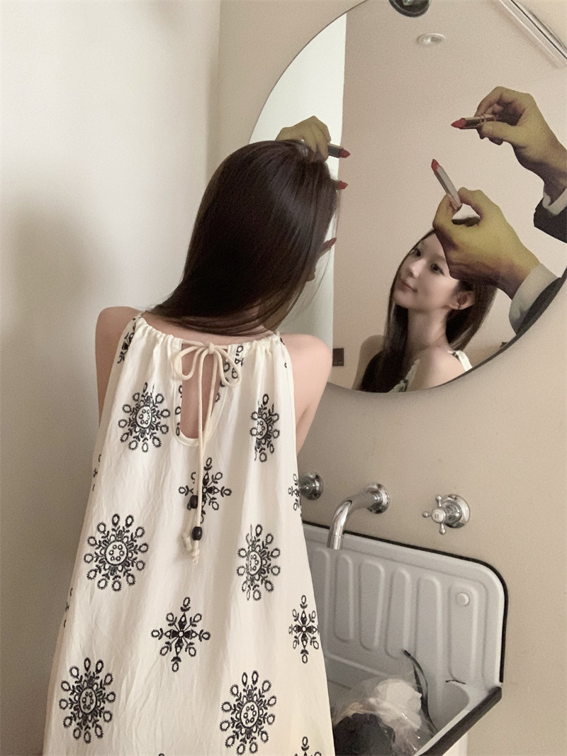 2025 새로운 여름 스타일 로맨틱하고 부드럽고 달콤하고 게으른 틈새 디자인 공예 자카드 서스펜더 여성용 무릎 길이 스커트스토어 가기