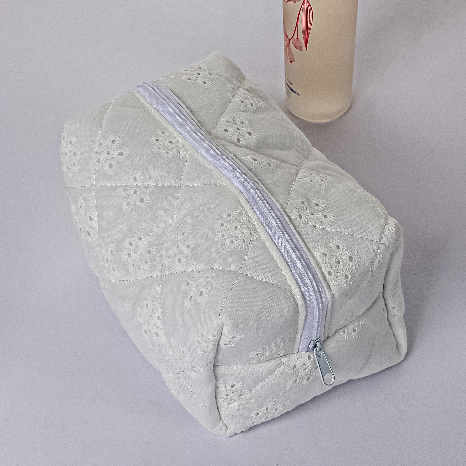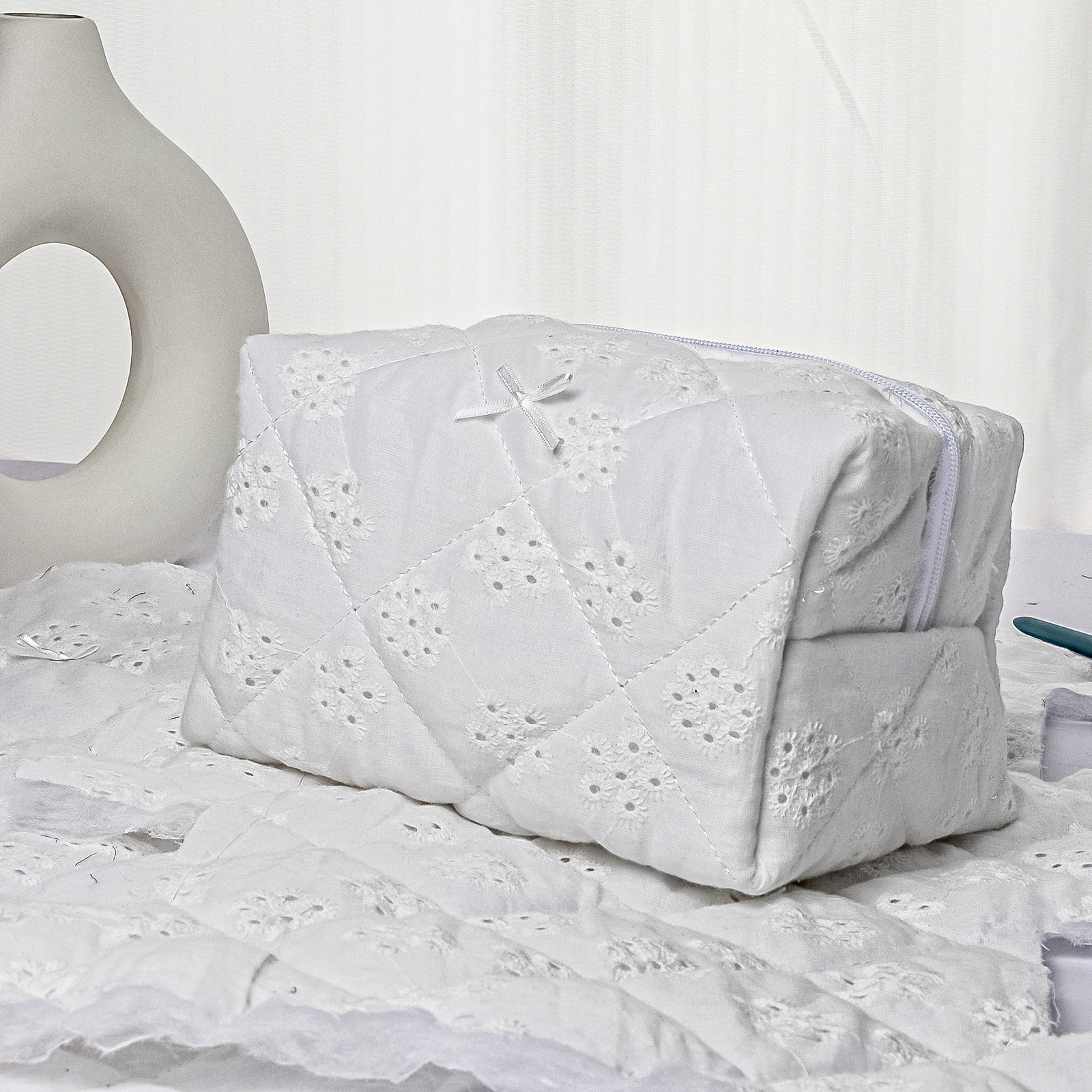 • 흰 나비 누비 누비 속이 빈 화장품 가방 자수