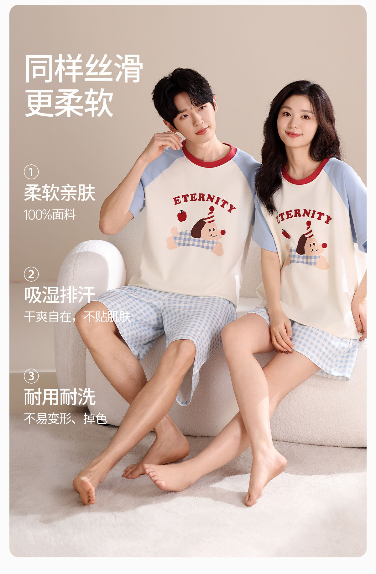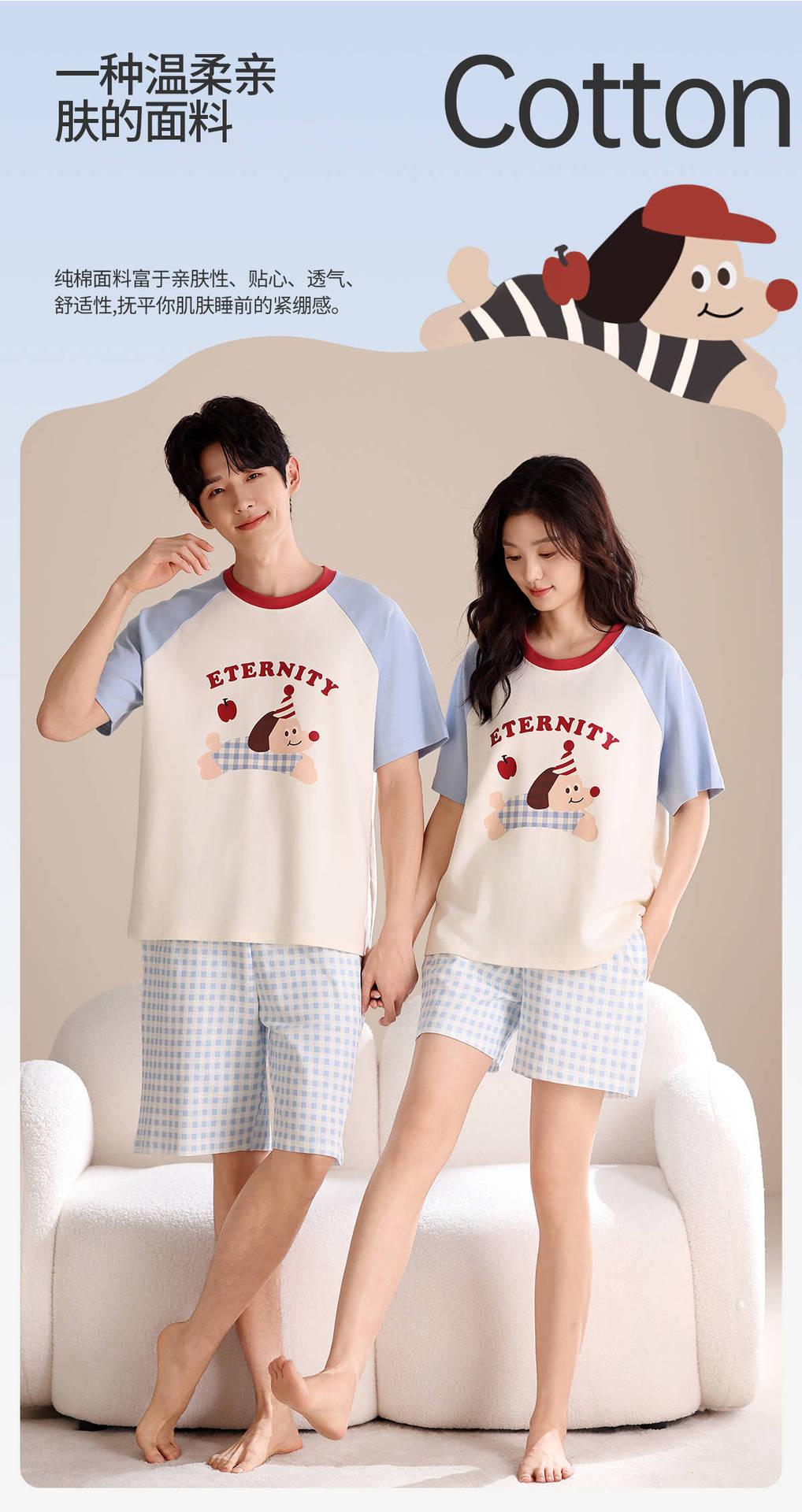 100% 면 커플 면 잠옷 여성 여름 2025 새로운 만화 닥스훈트 순수 면 남성용 느슨한 가정복스토어 가기