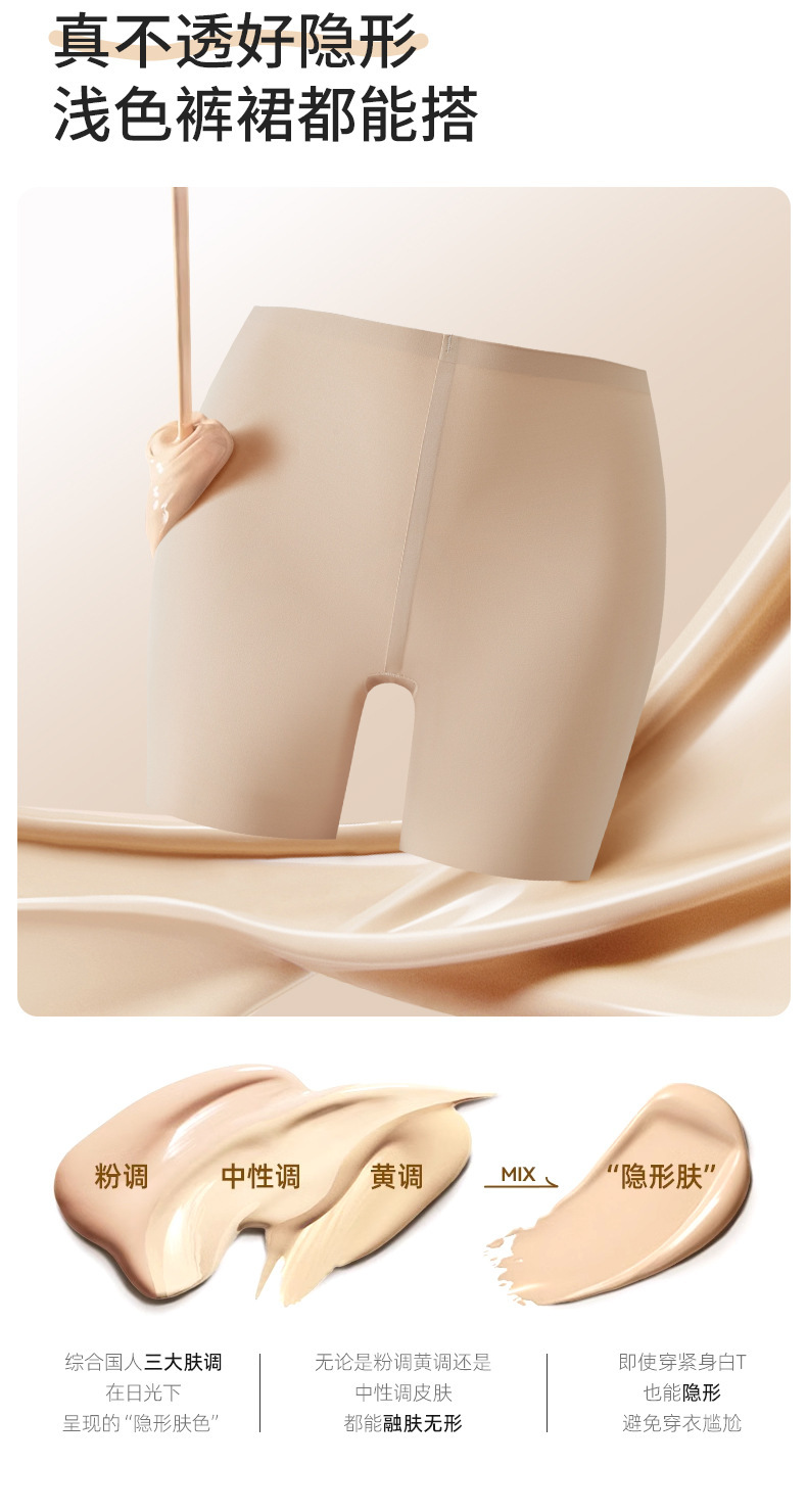 리퀴드 파운데이션, 흔적 없는 아이스 실크 안전팬츠, 눈에 띄지 않고 컬링되지 않으며 엉덩이를 조이지 않는 7A 항균 가랑이 배를 조여주는 노출 방지 안전팬츠